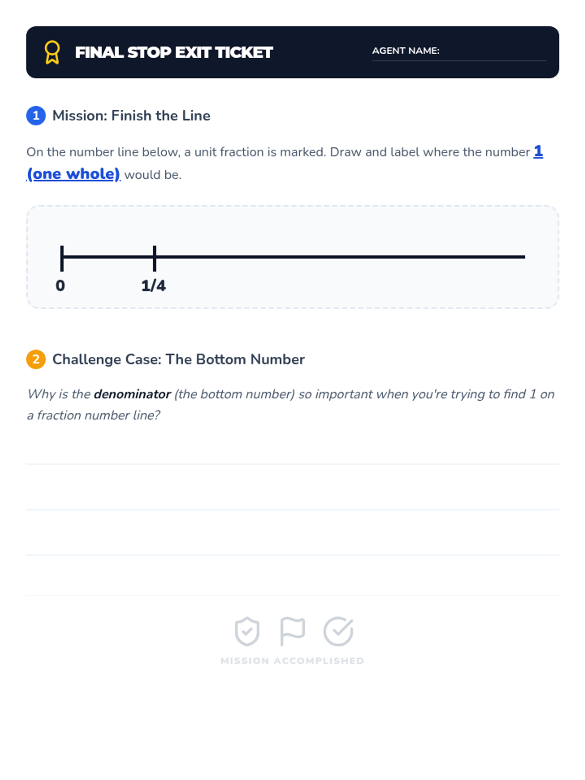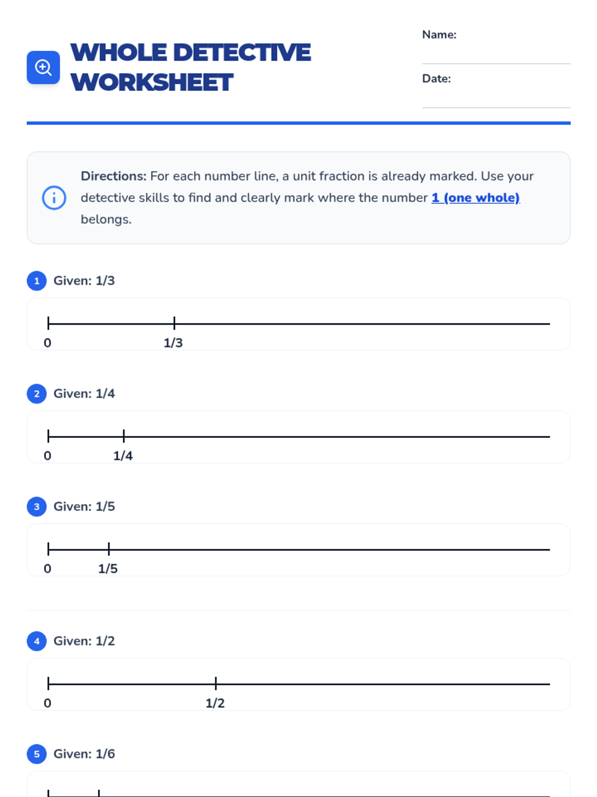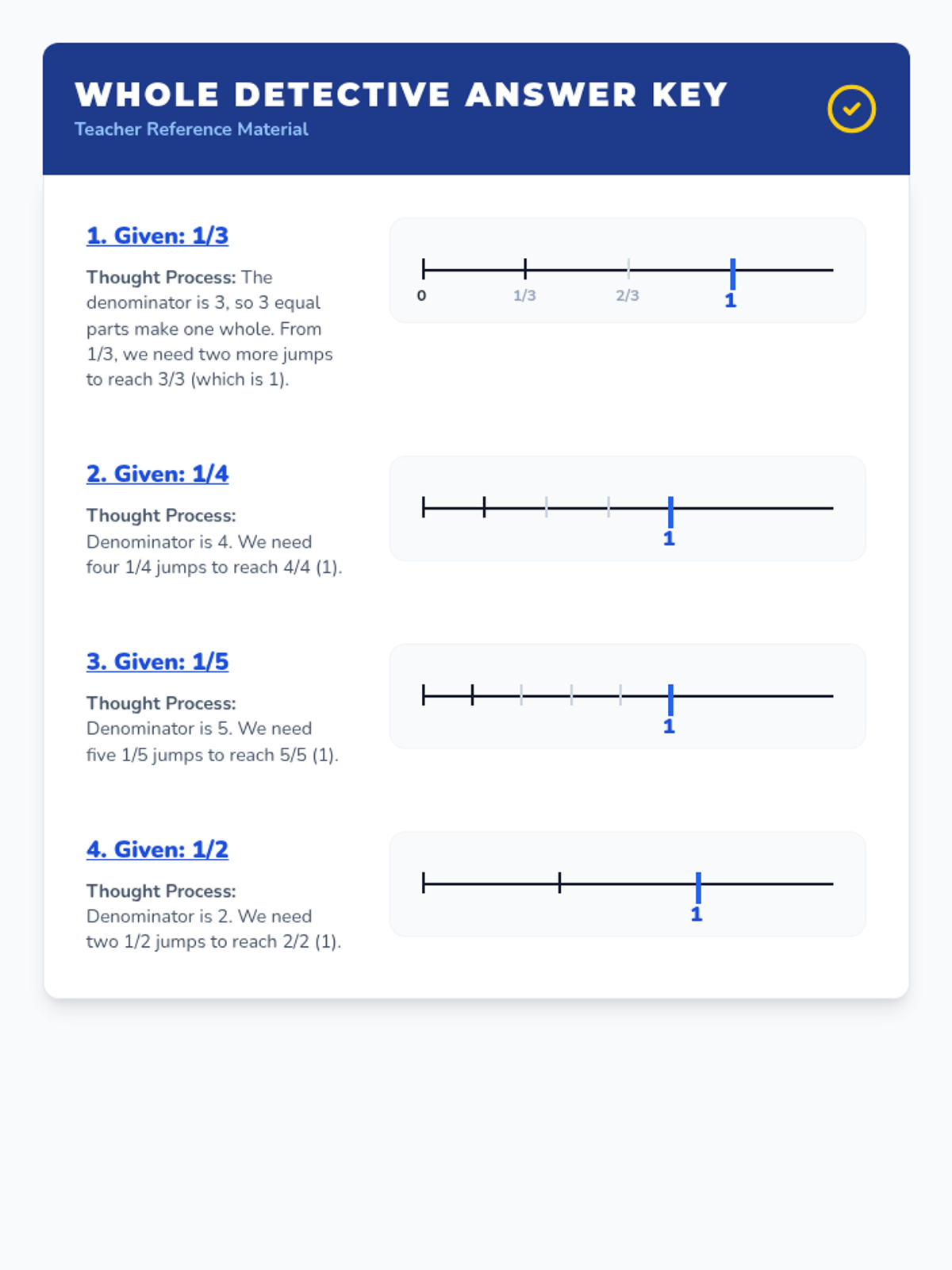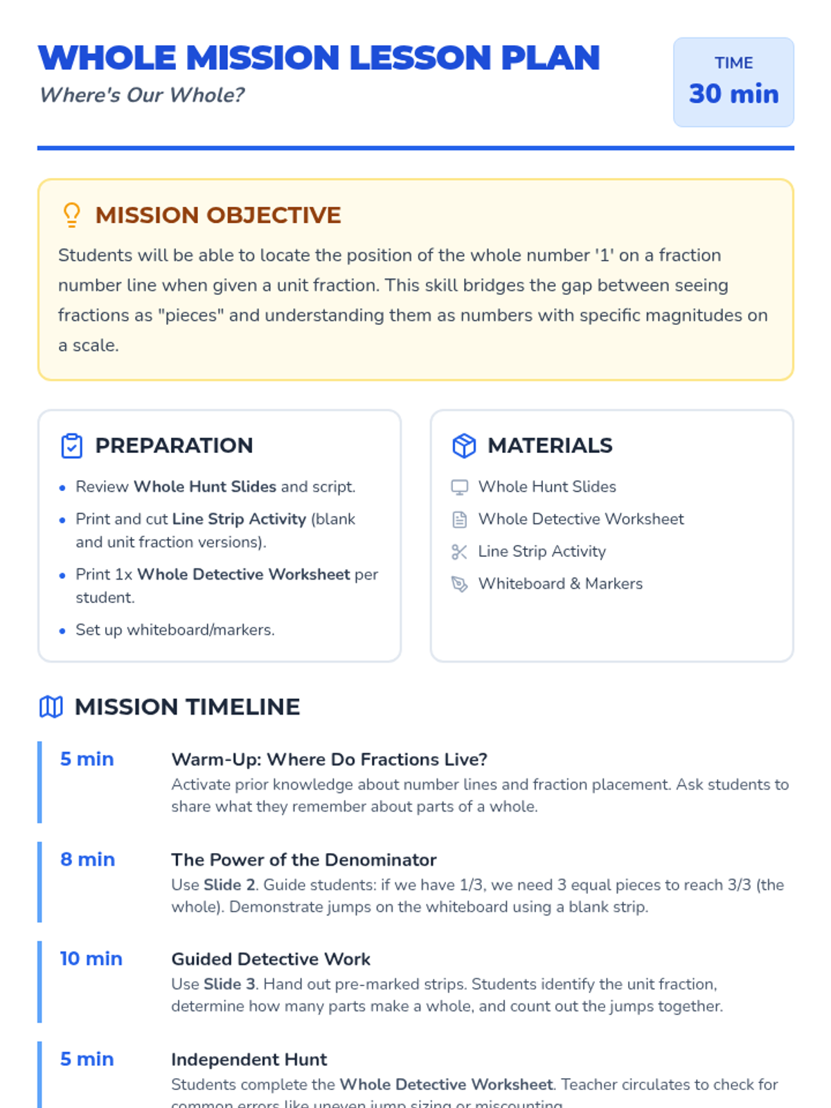 This targeted Tier 2 lesson helps students master locating the whole number '1' on a number line when provided with unit fractions, building essential fractional magnitude awareness.