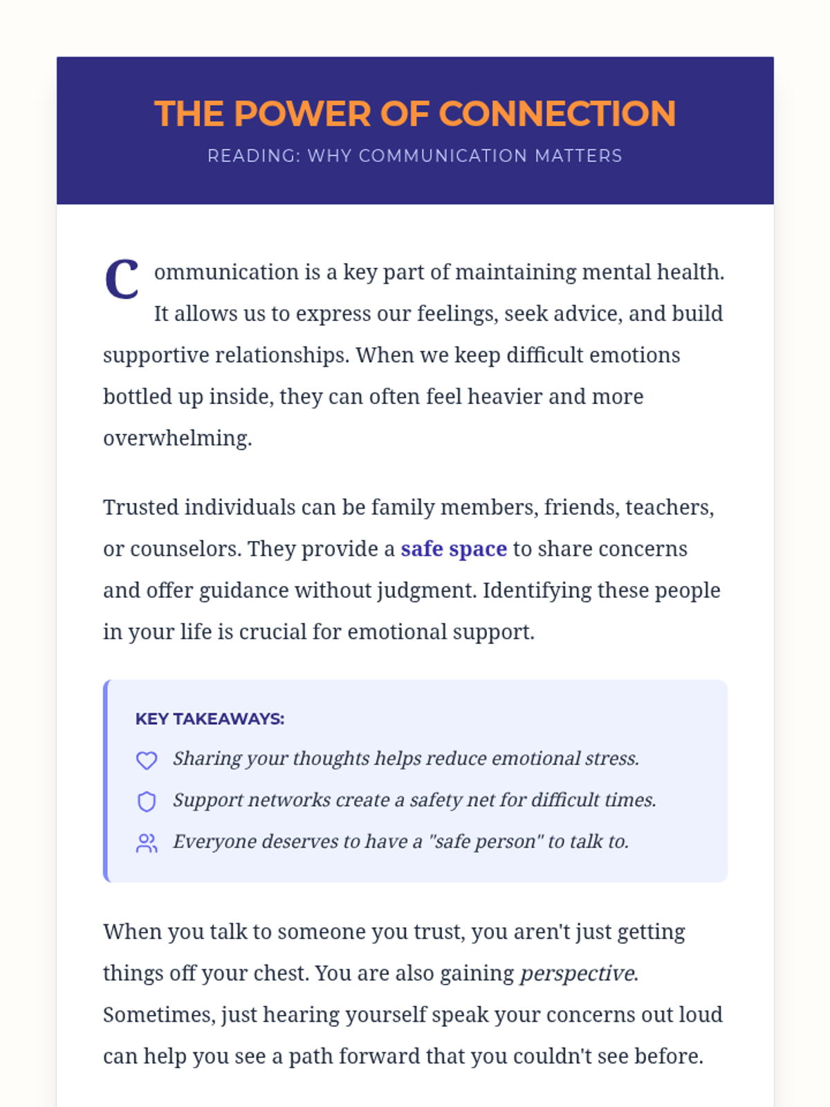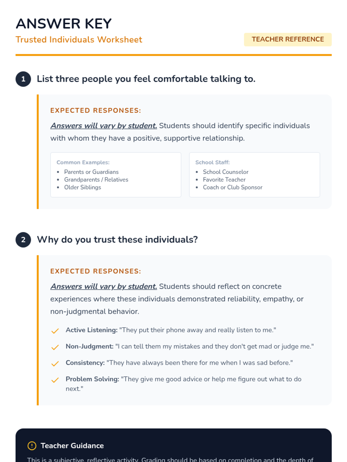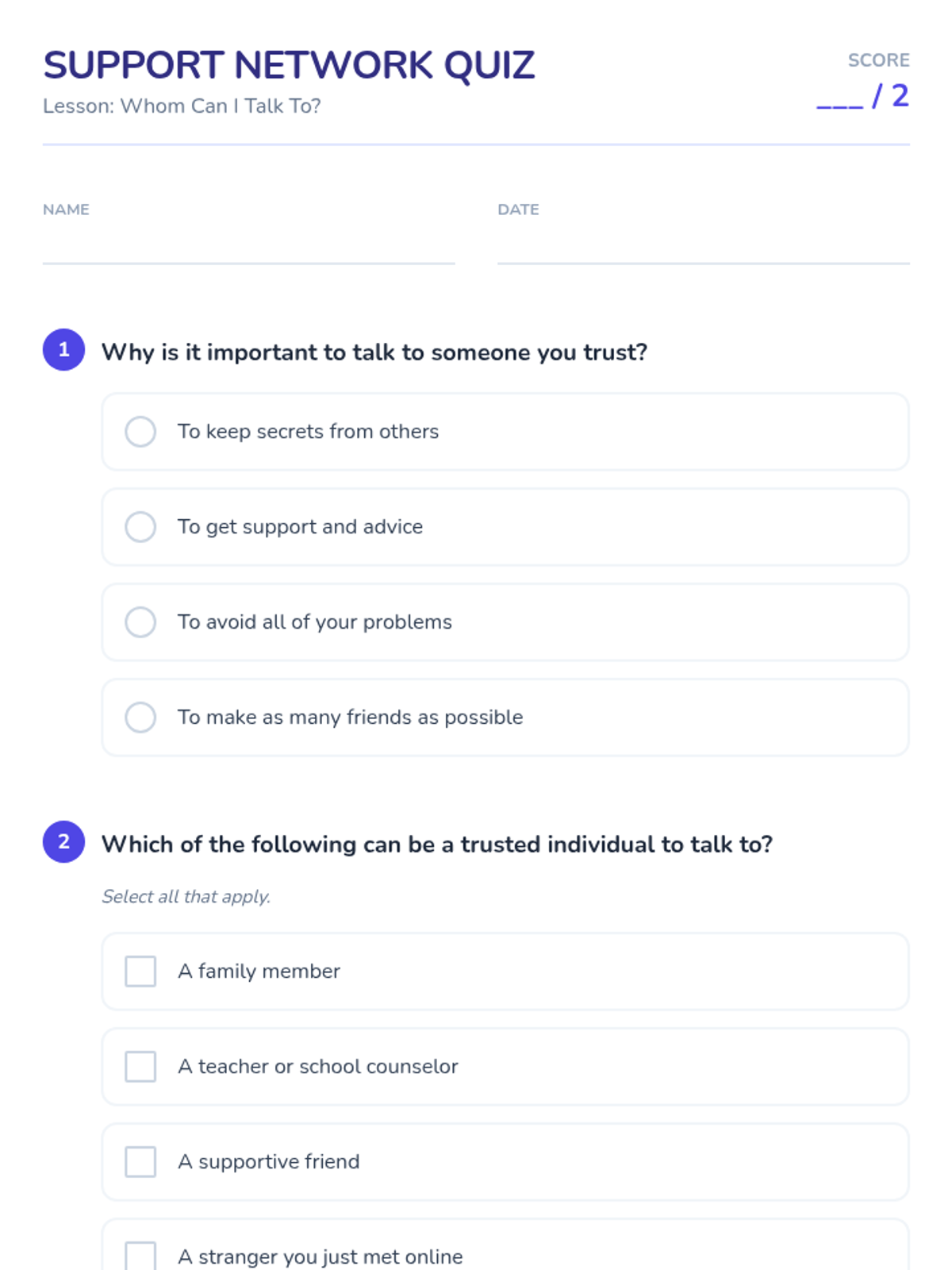 A middle school lesson focused on identifying support networks and trusted individuals to foster emotional well-being and help-seeking behaviors through restorative practices.