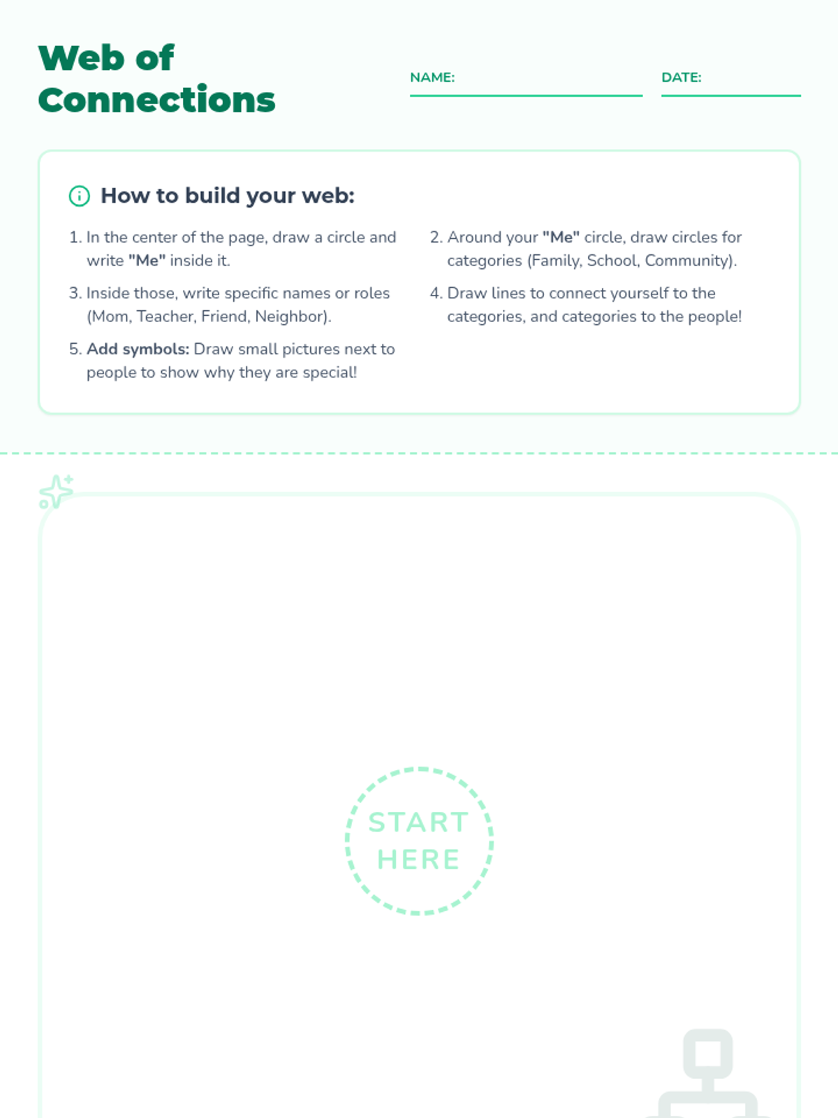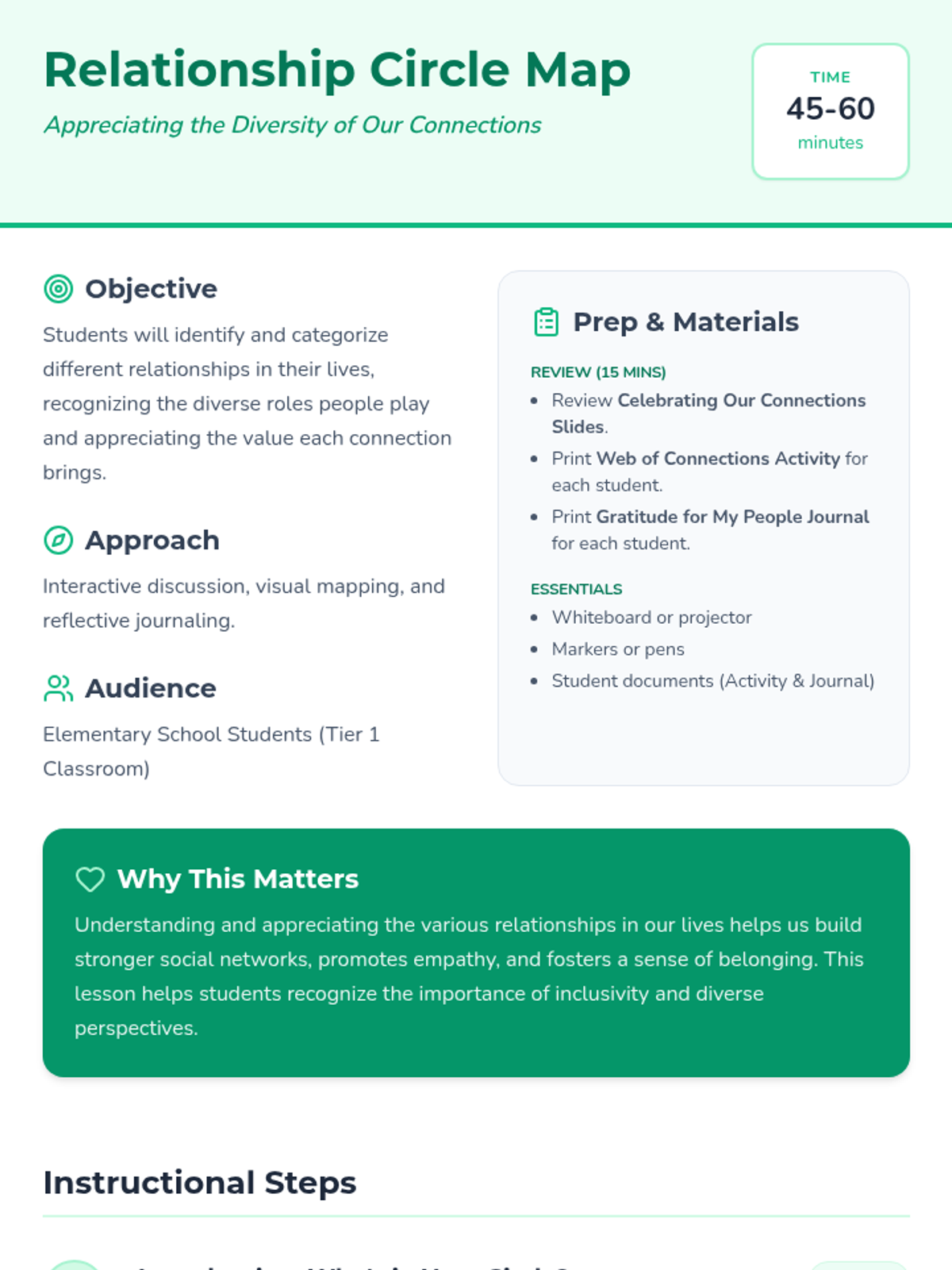 An interactive lesson that helps elementary students identify and appreciate the diverse relationships in their lives through visual mapping and reflective journaling.