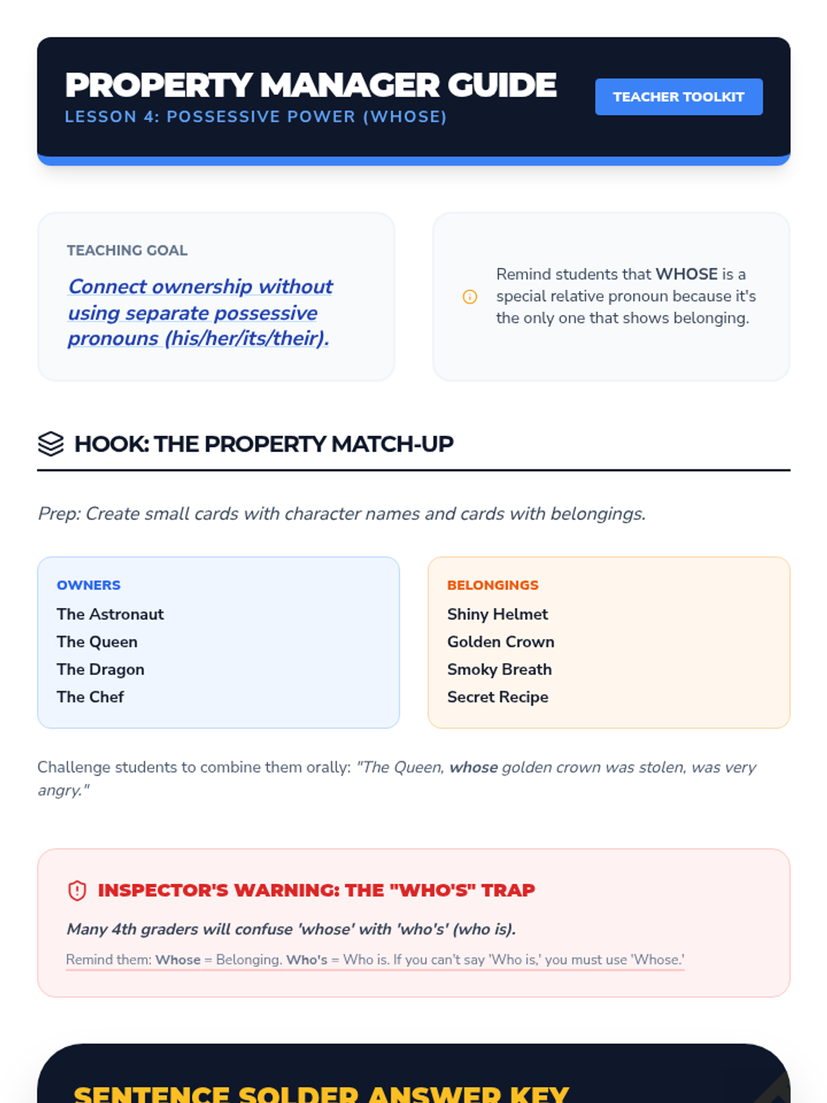 A high-energy, 120-minute whole-group escape room where students act as Linguistic Archeologists to save the Lost Library of Legend. This lesson reviews 4th-grade ELA standards including sentence structure, parts of speech, text structures, and writing genres.