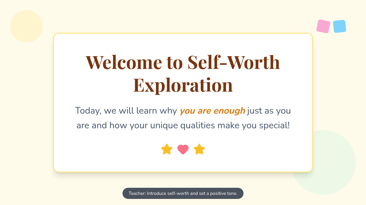 Explore the concept of self-worth and why it's important to believe in oneself. This lesson helps the class understand that everyone has unique strengths and value, fostering a positive classroom environment.