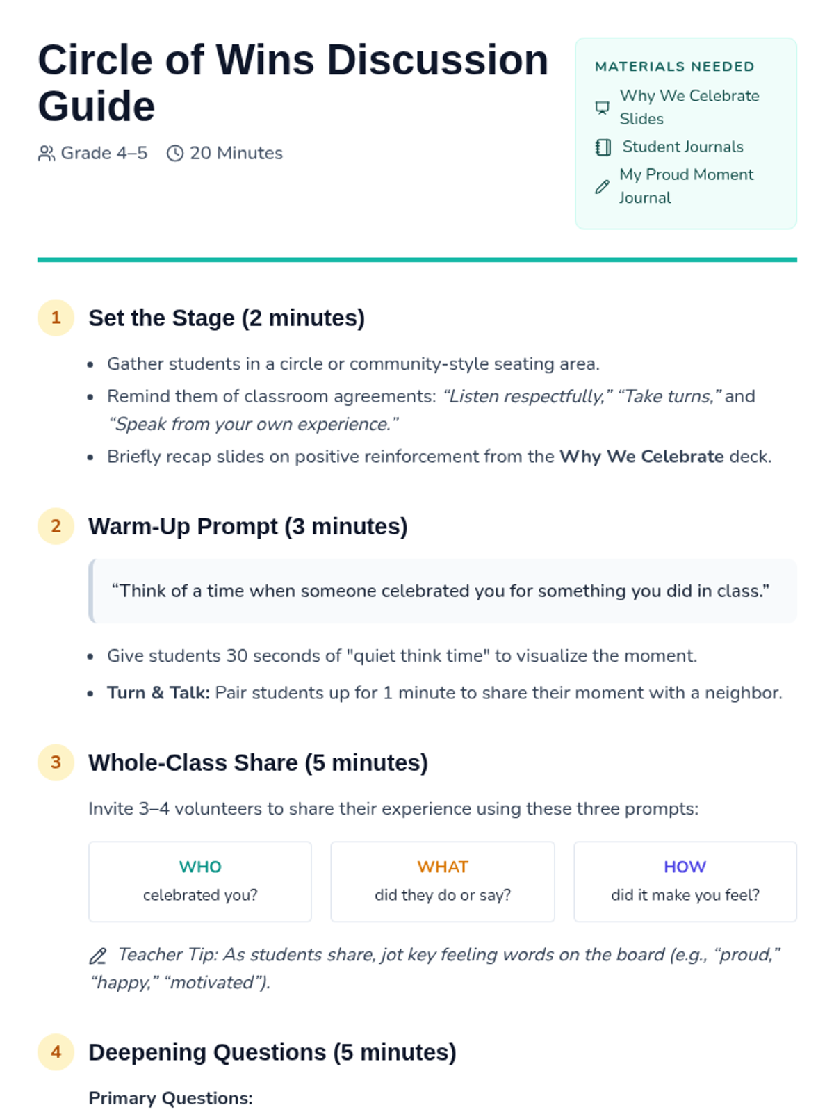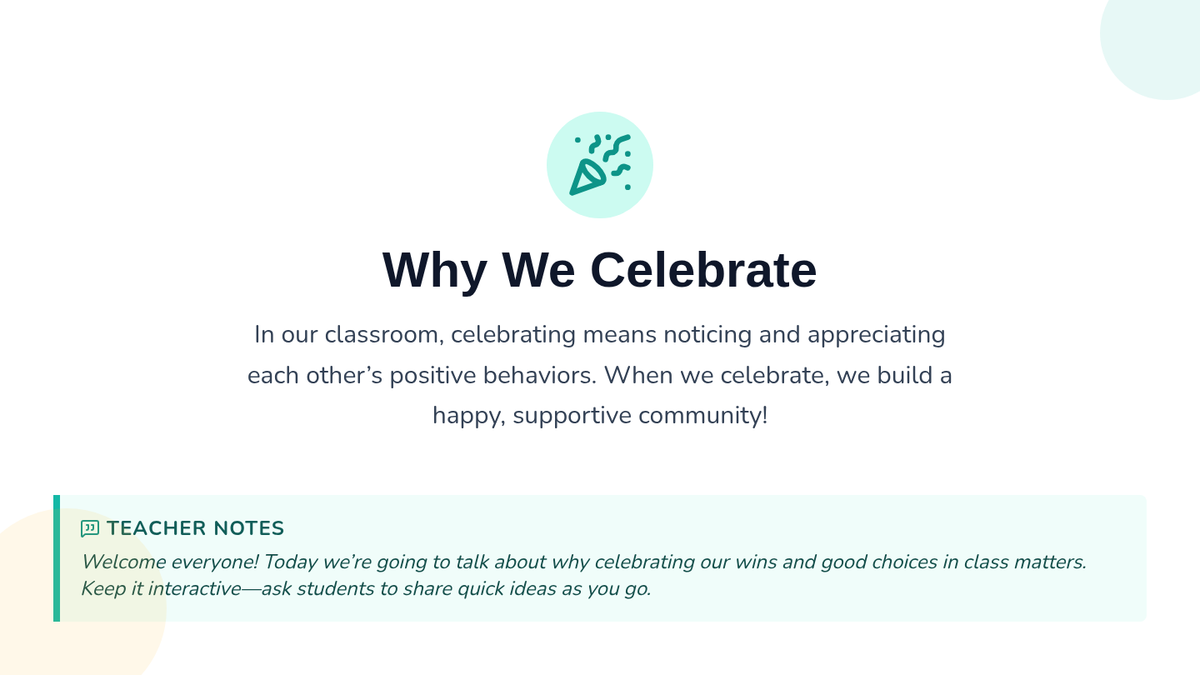 A 20-minute Tier 1 exploration for 4th-5th graders on the importance of positive reinforcement and acknowledging classroom successes to build community ownership.