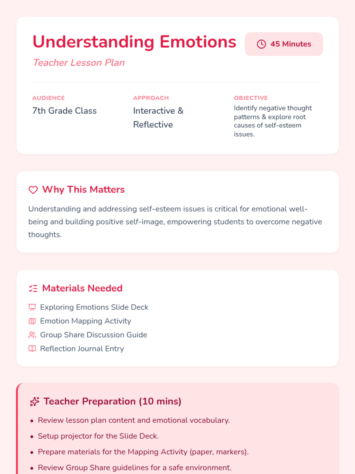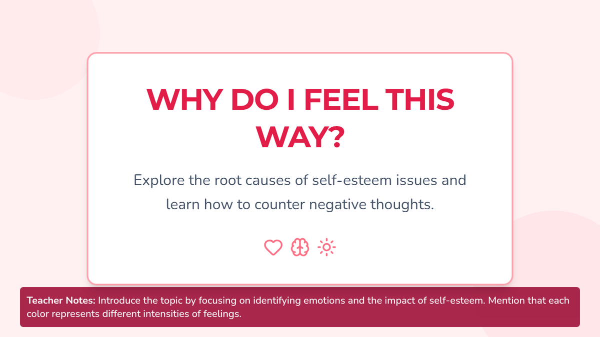 Explore the root causes of self-esteem issues and learn how to identify and counter negative thoughts. This lesson helps students gain insight into their emotions, fostering self-awareness.