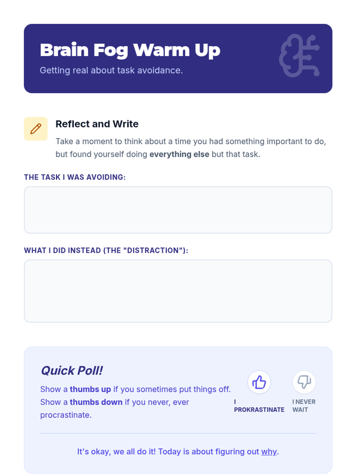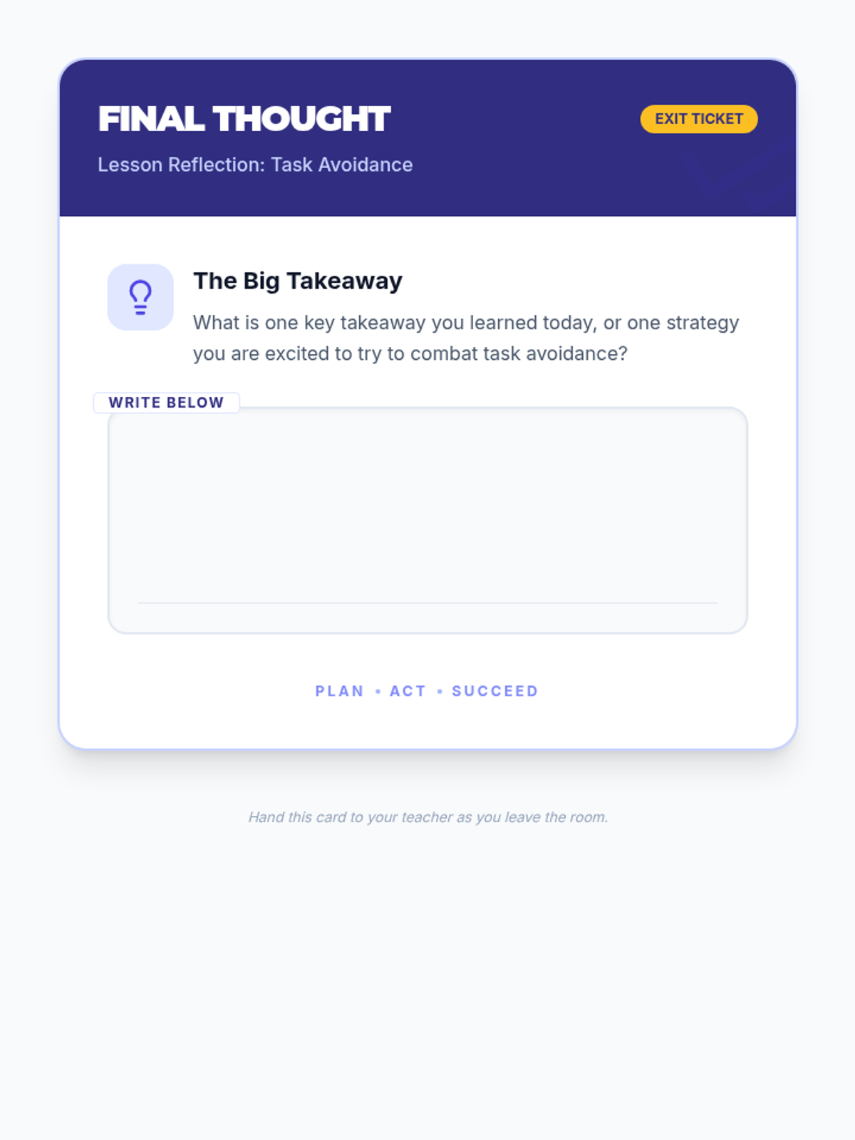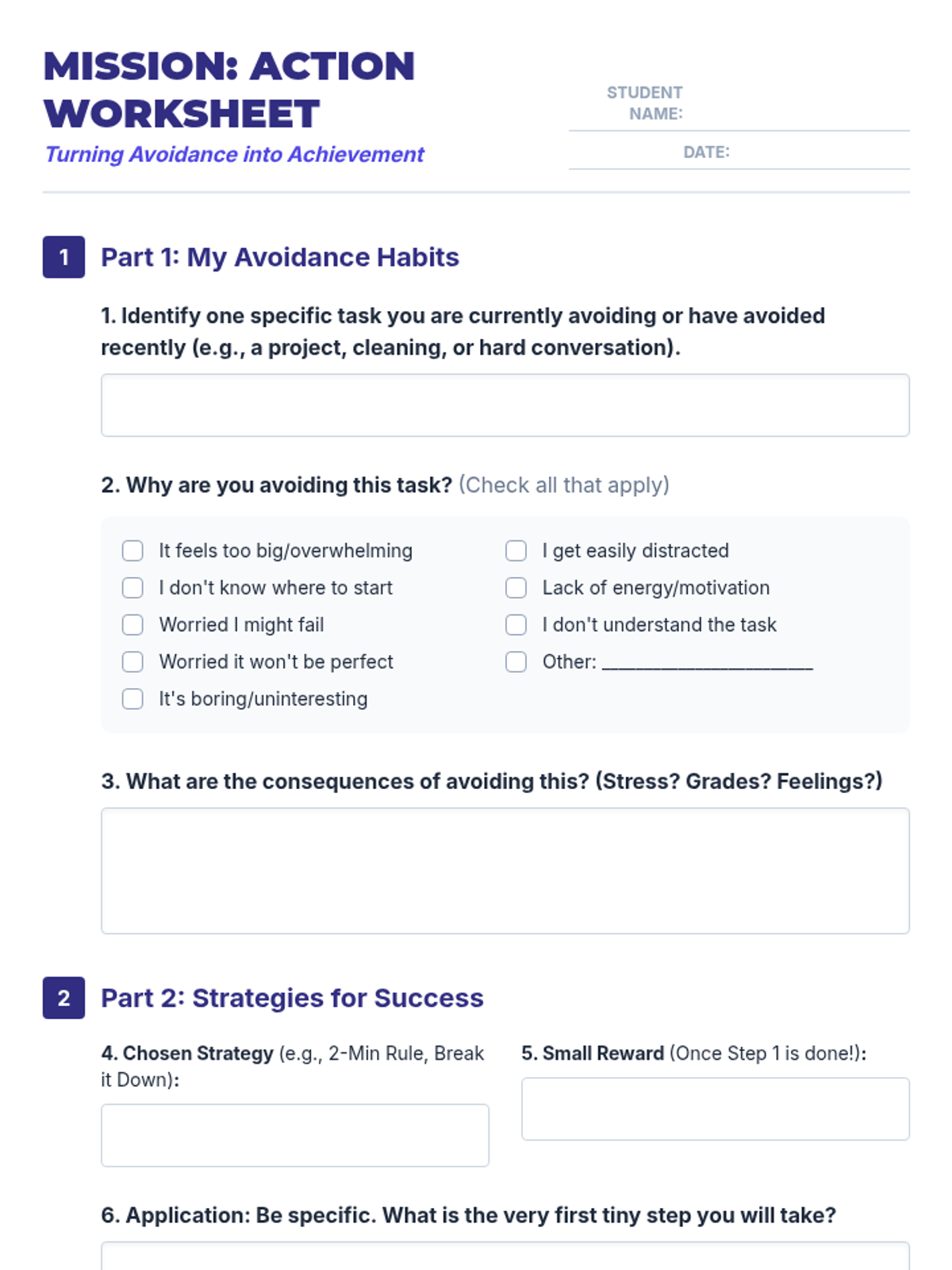 A 30-minute lesson for 9th-grade students to identify the root causes of task avoidance and learn practical strategies to overcome procrastination.