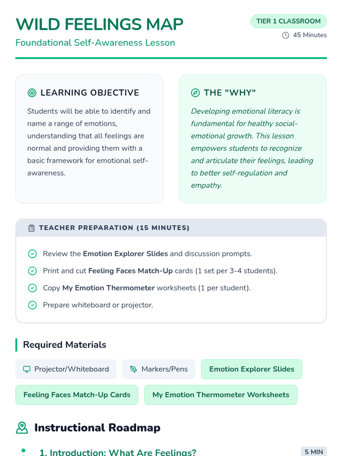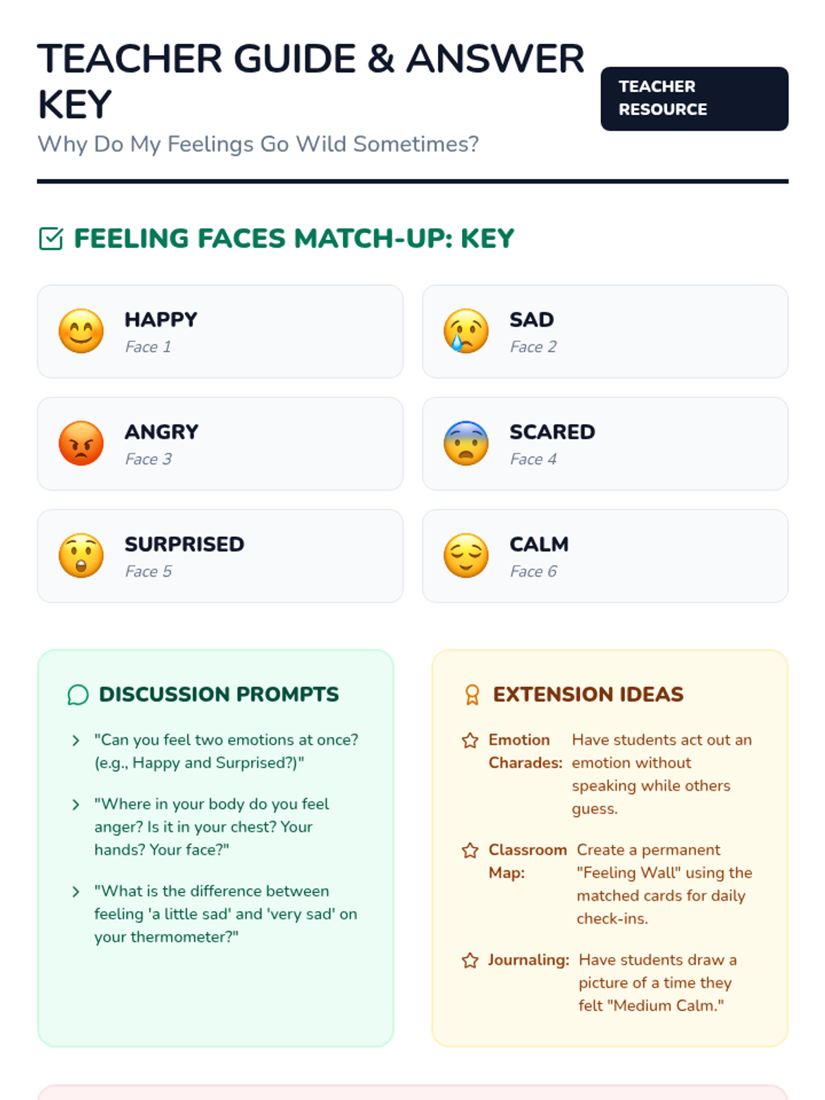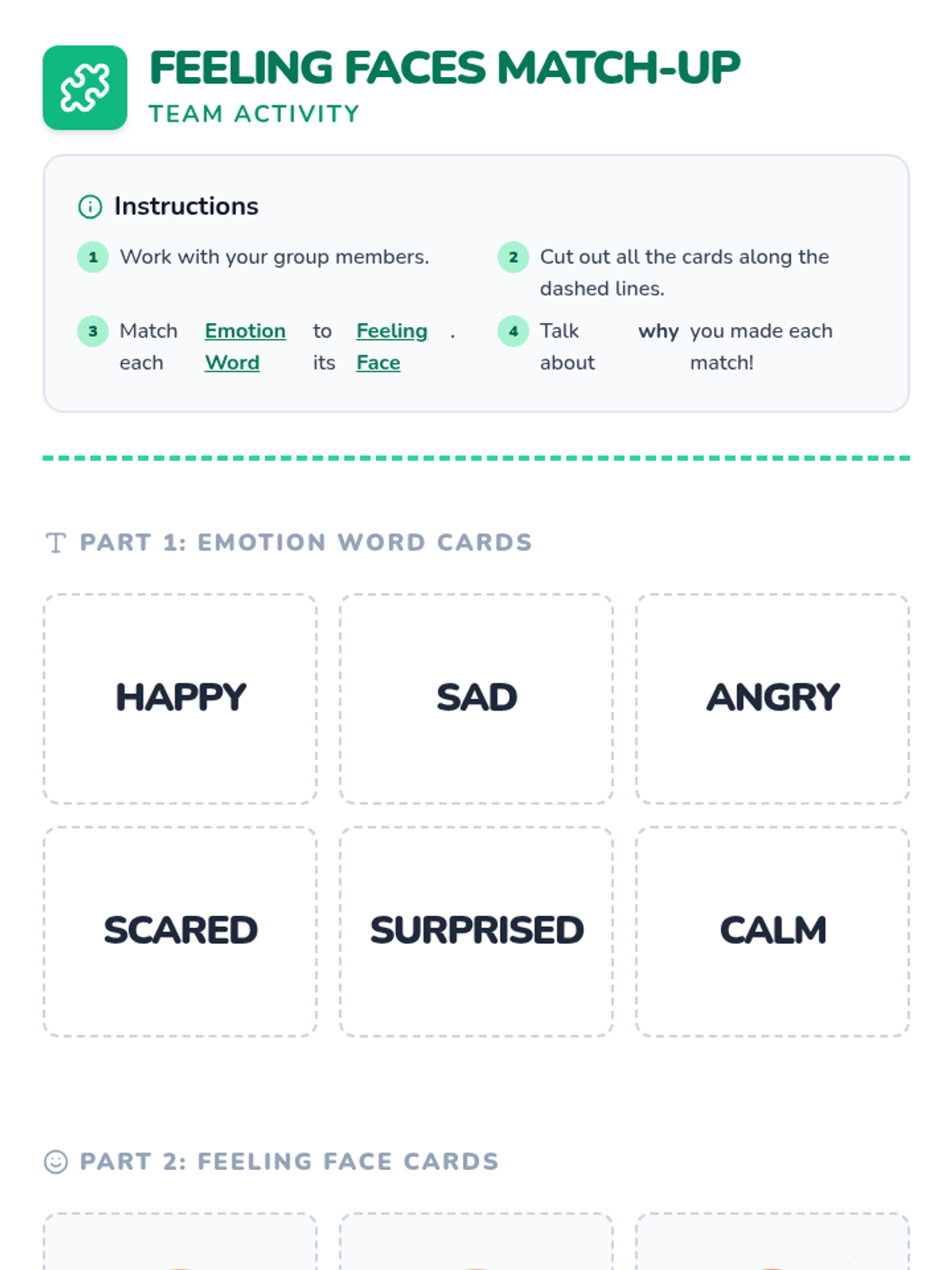 This lesson helps elementary students understand that all emotions are normal and provides a framework for identifying and naming their feelings through interactive slides, a matching activity, and a self-reflection worksheet.