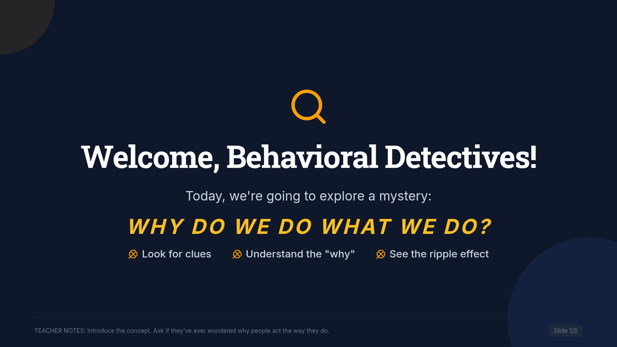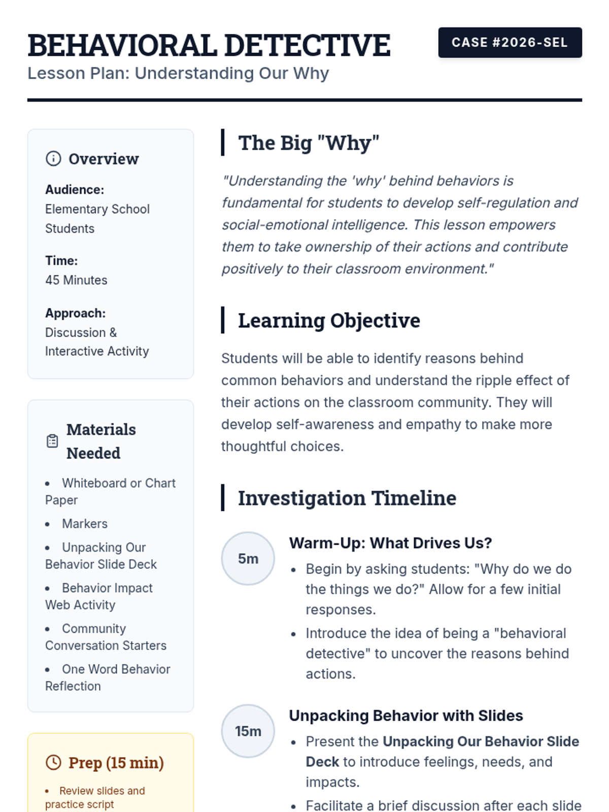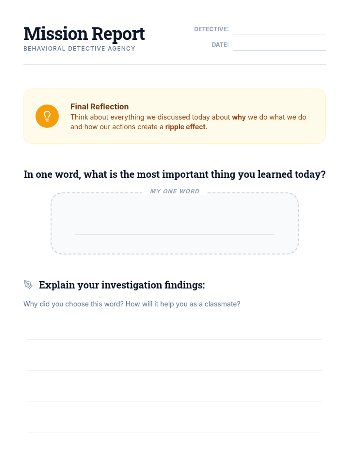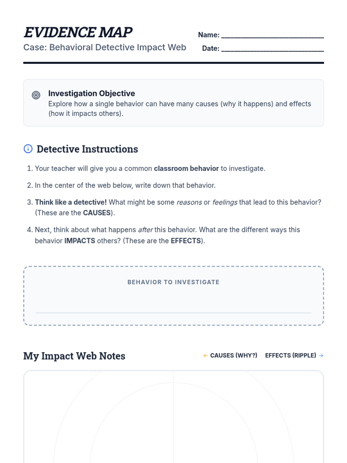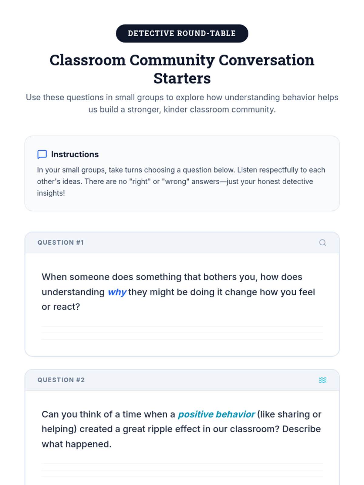 A 45-minute social-emotional learning lesson for elementary students focused on understanding the feelings and needs behind behaviors and their ripple effect on the classroom community.
