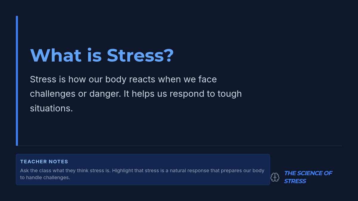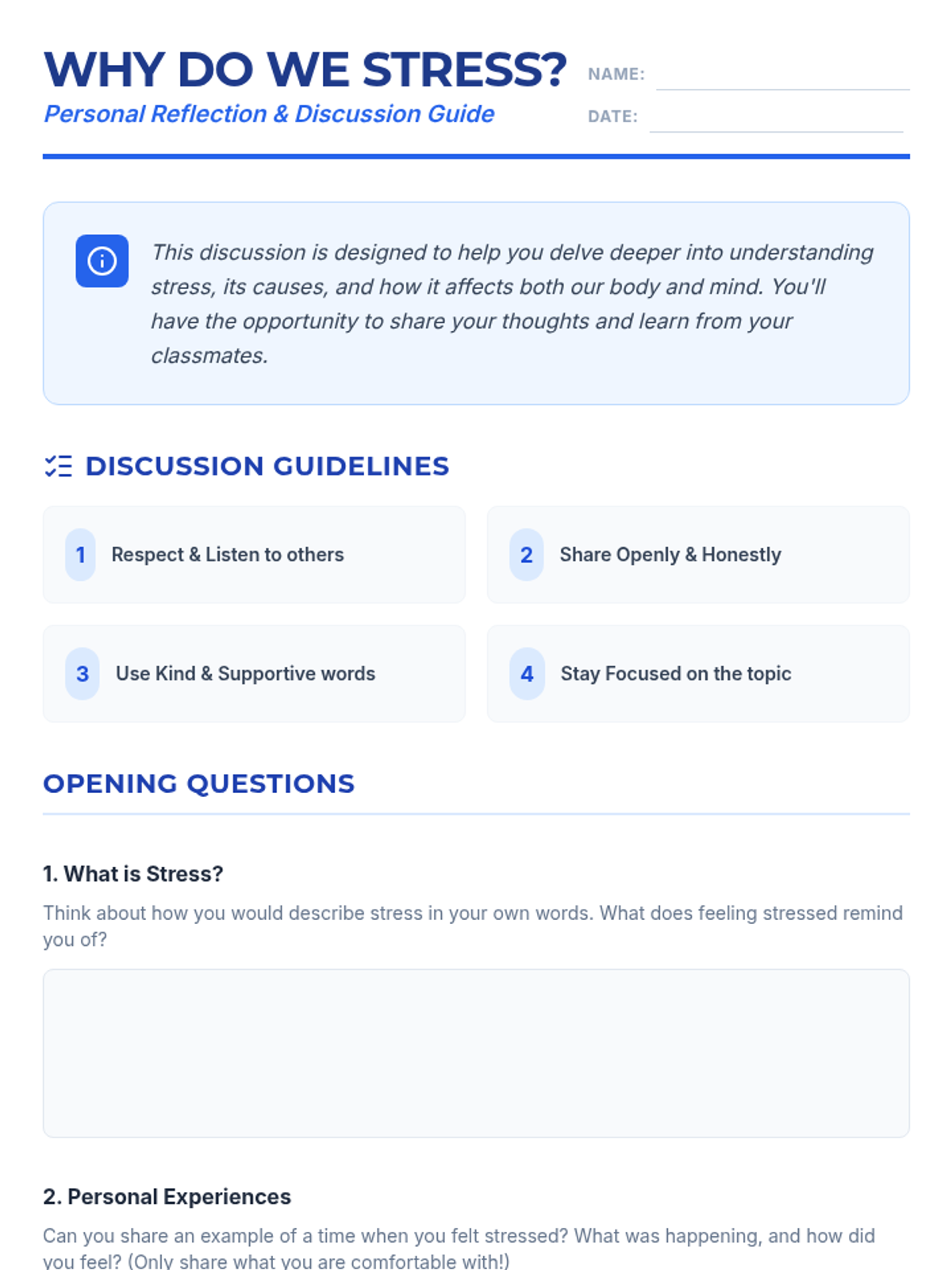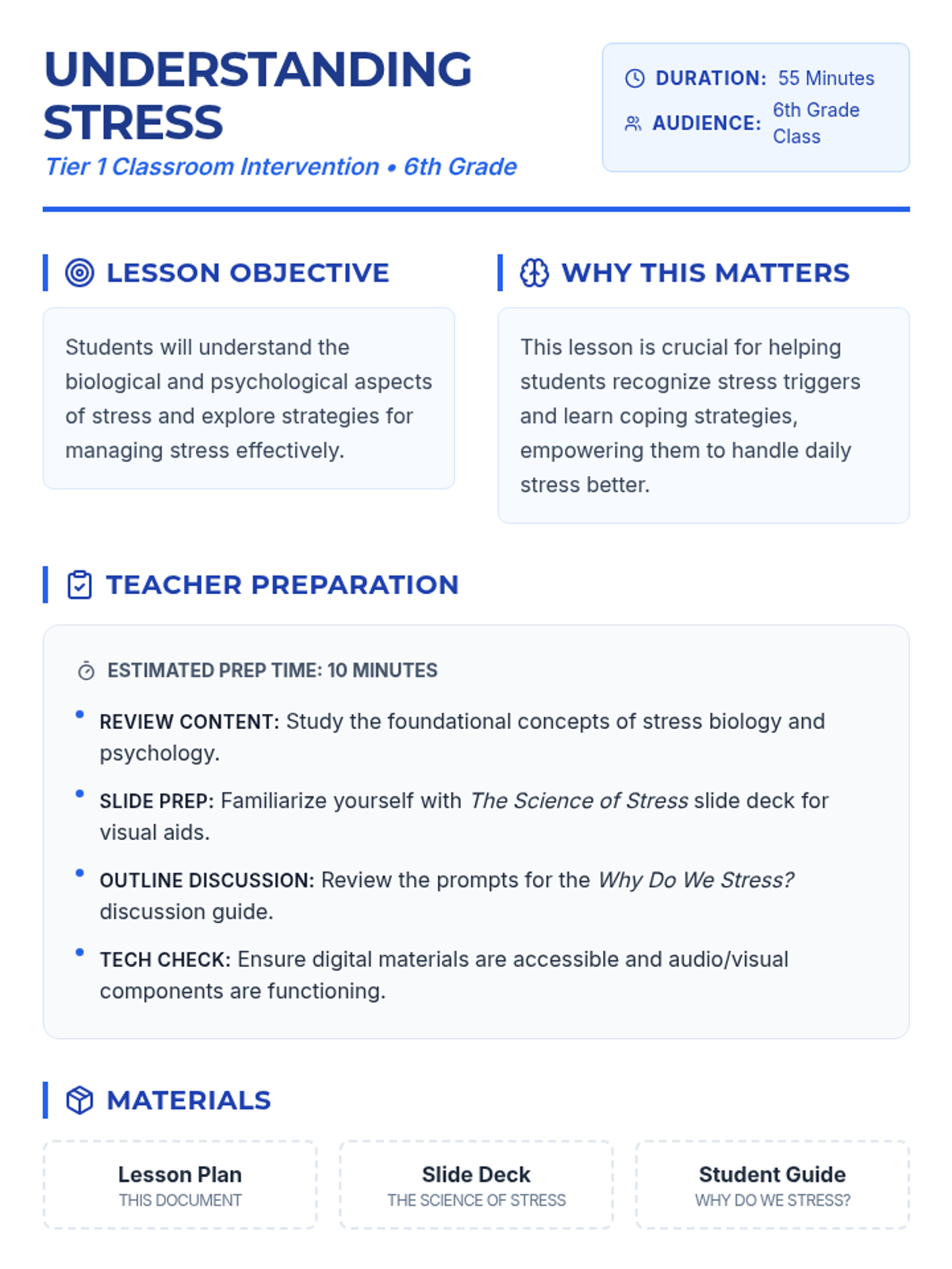 A foundational dive into the psychology and biology of stress, helping 6th-grade students understand why we experience stress and how it affects the body and mind.