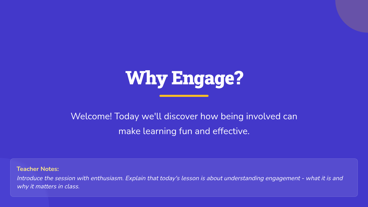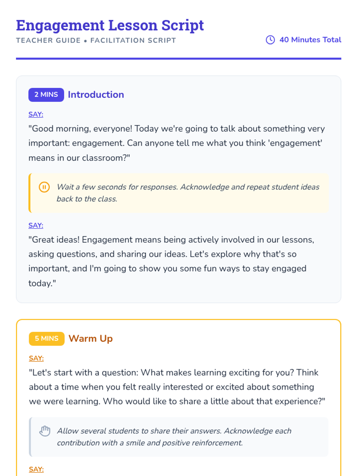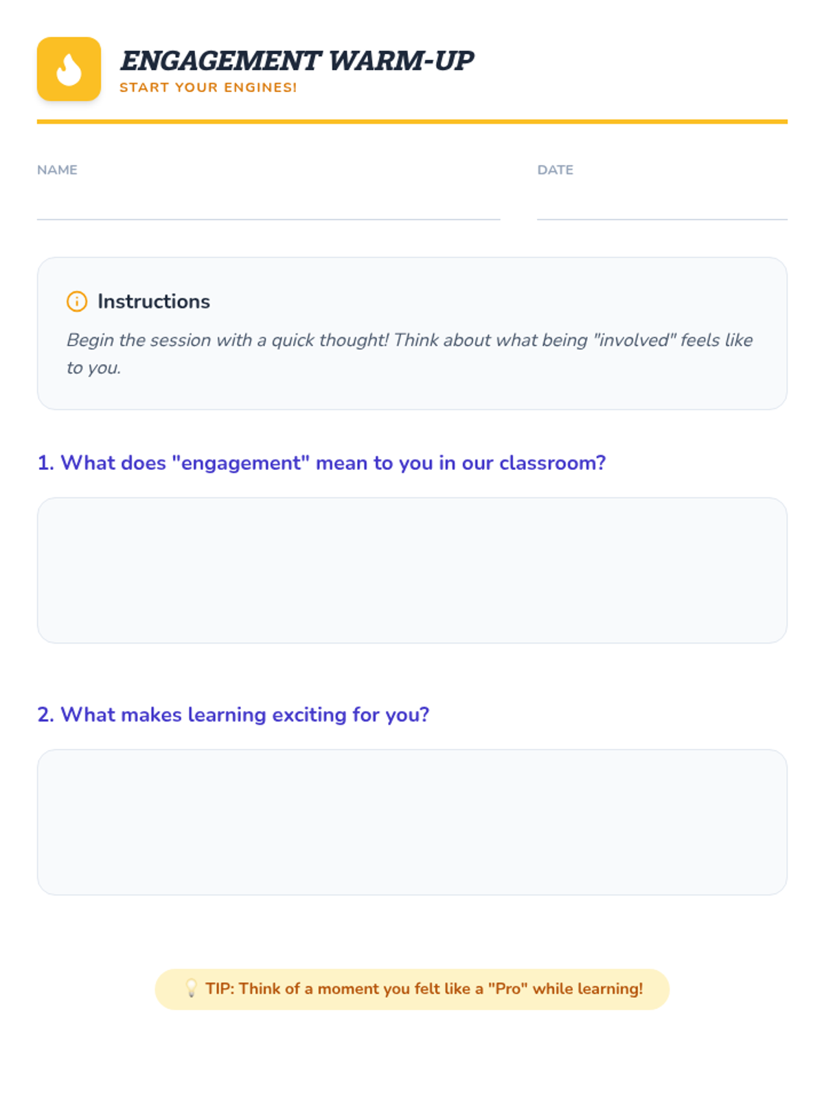 A 40-minute lesson for 6th Grade Resource students exploring why active participation matters and how to practice engagement strategies through discussion and role-play.
