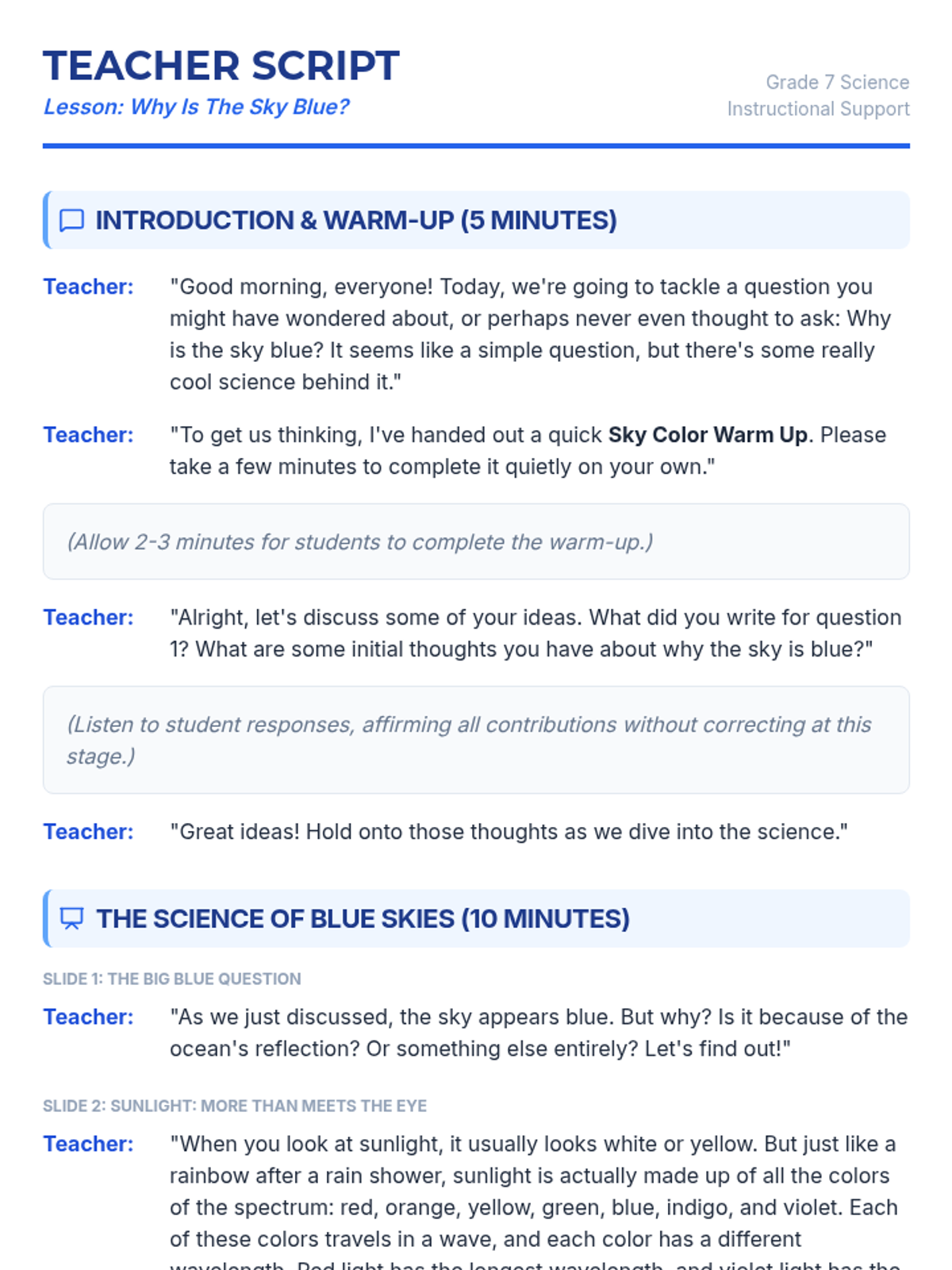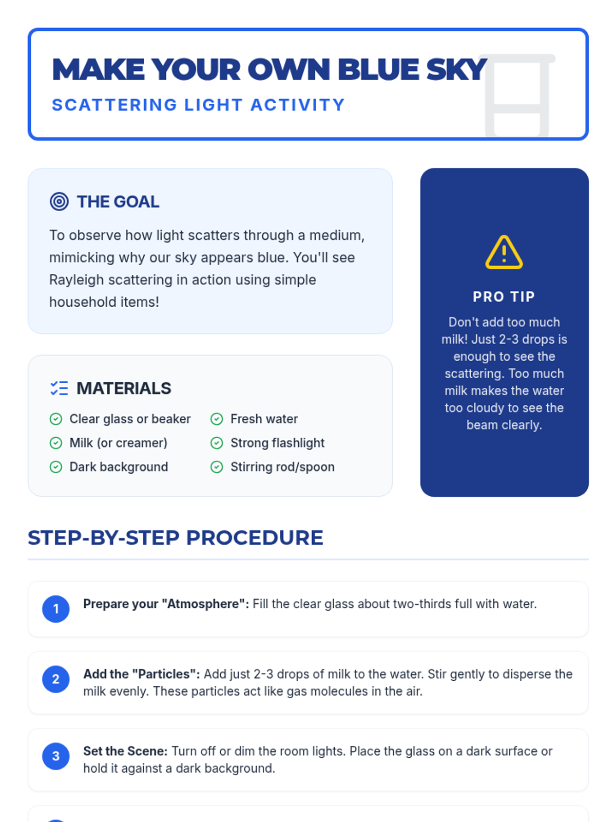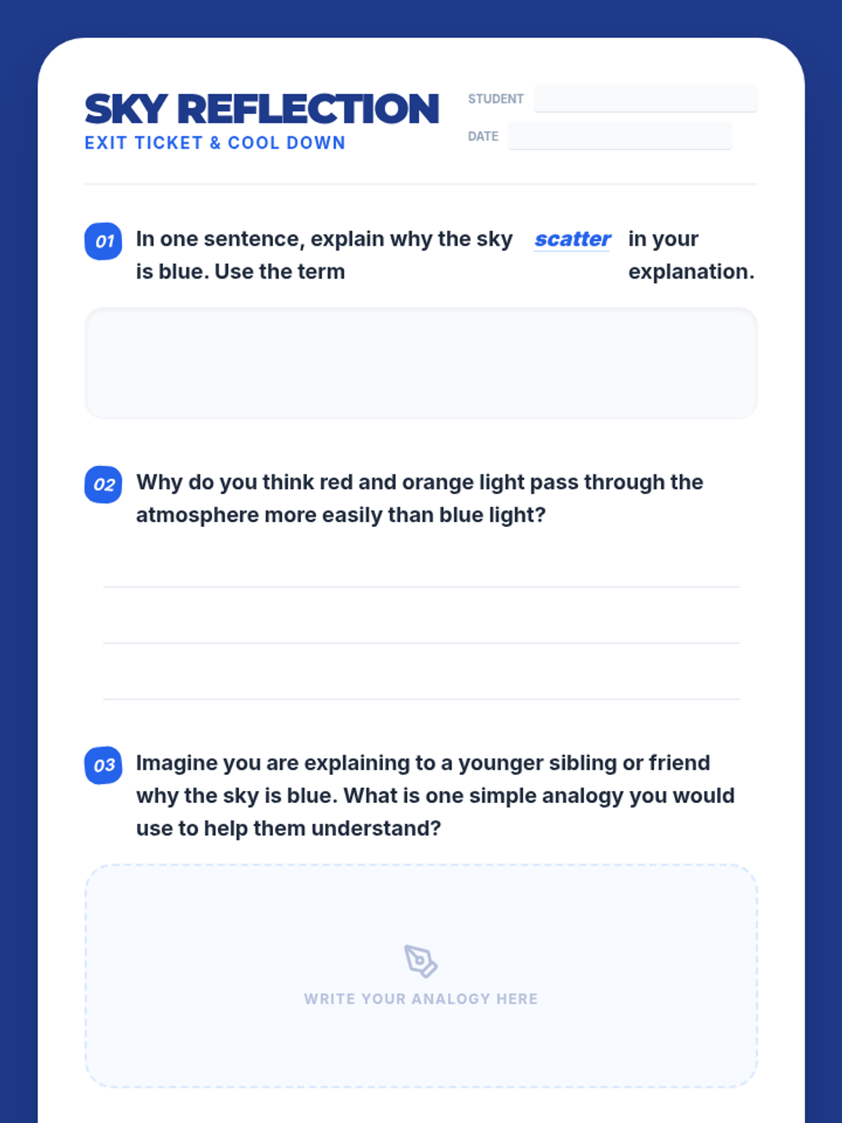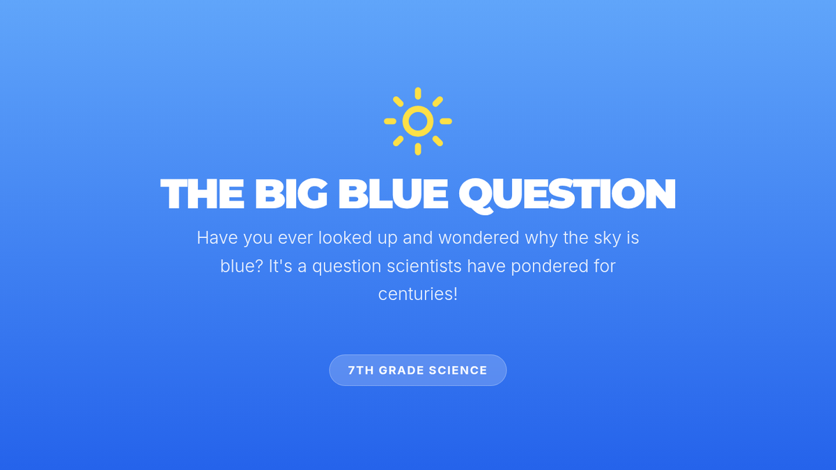 This lesson explores the science behind why the sky appears blue, delving into light scattering and atmospheric composition. Students will learn about Rayleigh scattering and how it impacts our everyday view. This lesson is designed for 7th-grade students and will take approximately 30 minutes.