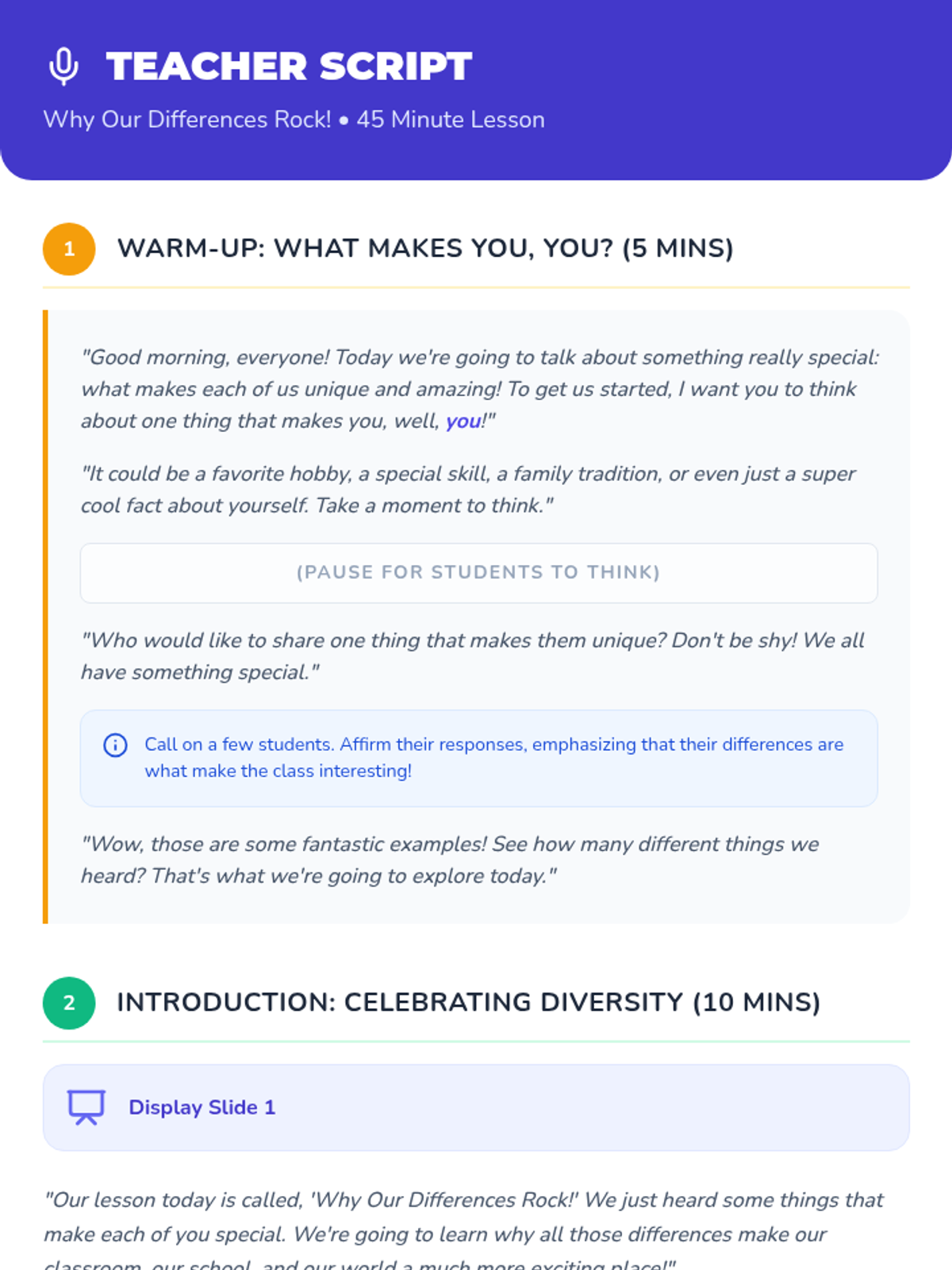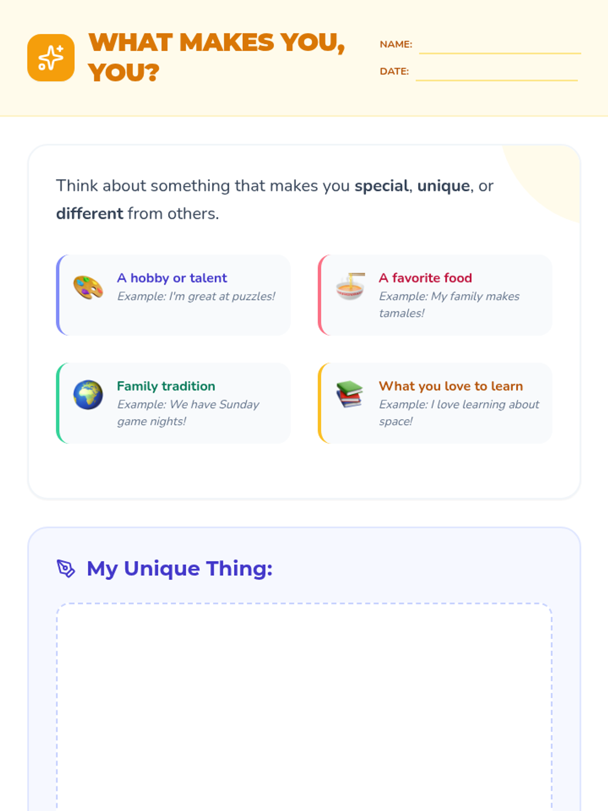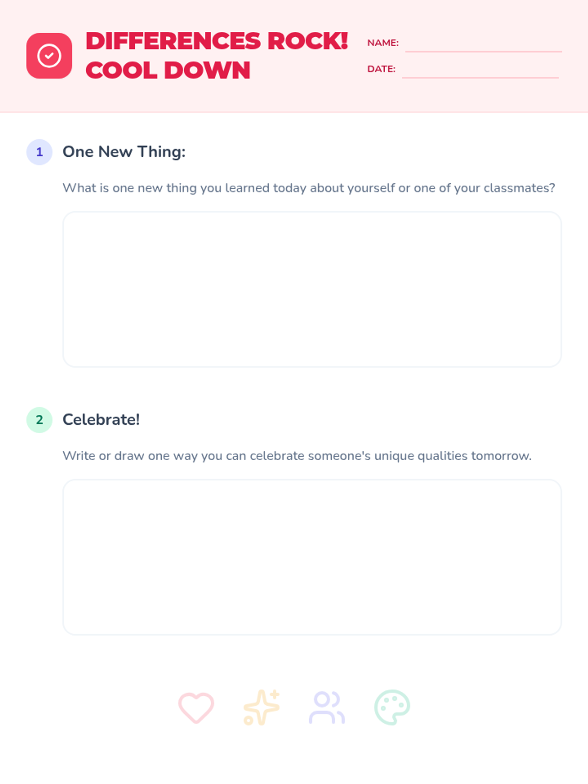 A 45-minute 2nd-grade lesson that celebrates human diversity and uniqueness through discussion, a creative hand-tracing activity, and personal reflection. Students learn that their differences make the community stronger and more vibrant.