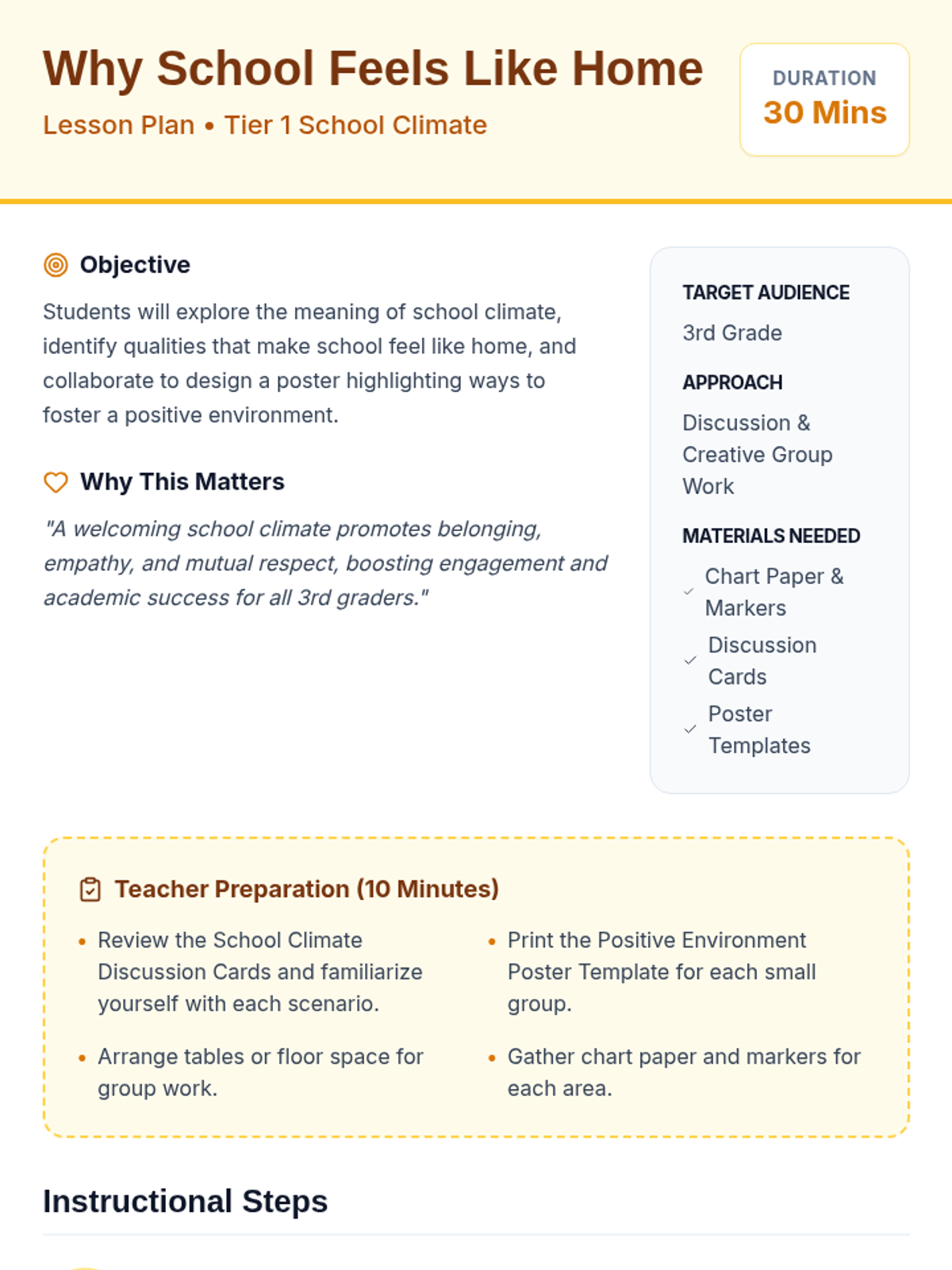 A 30-minute Tier 1 lesson for 3rd graders to explore school climate and how to build a welcoming environment where everyone feels they belong.