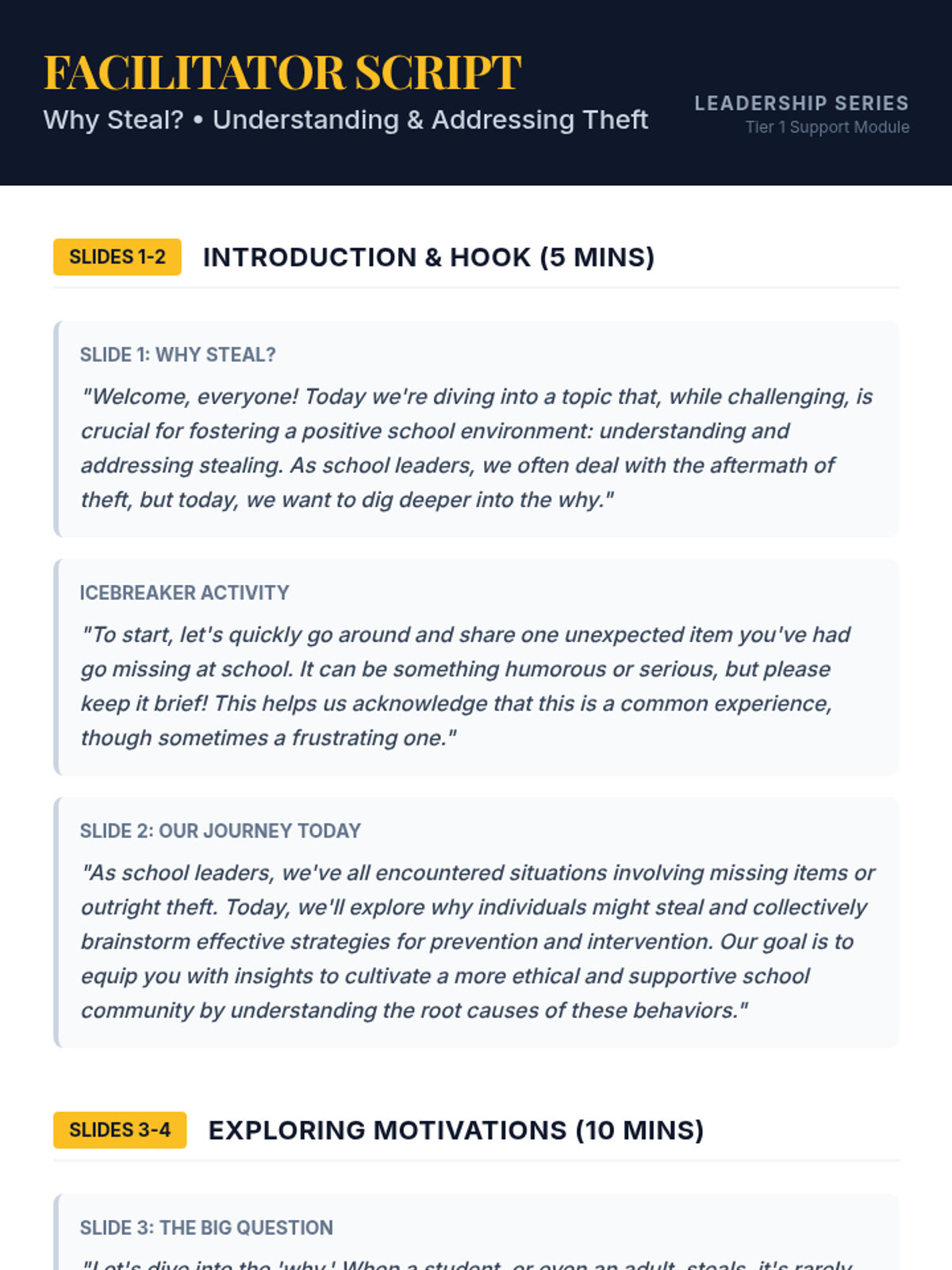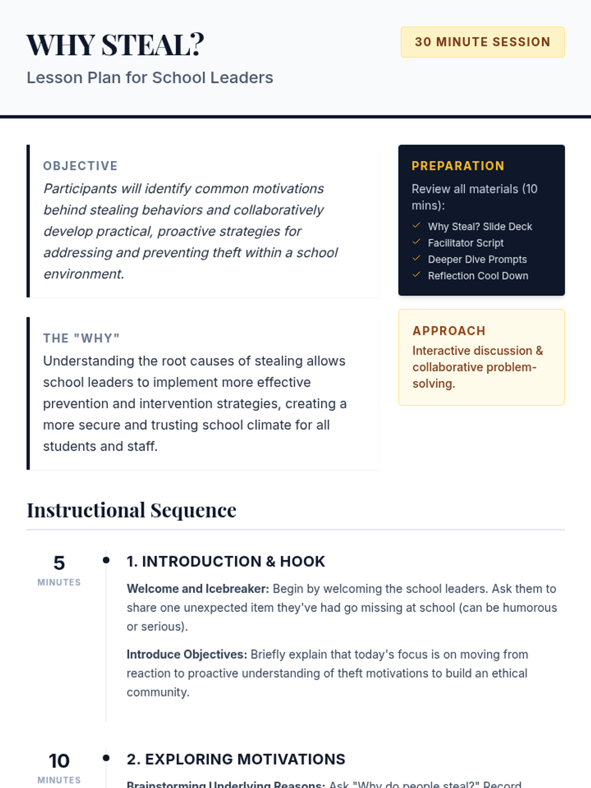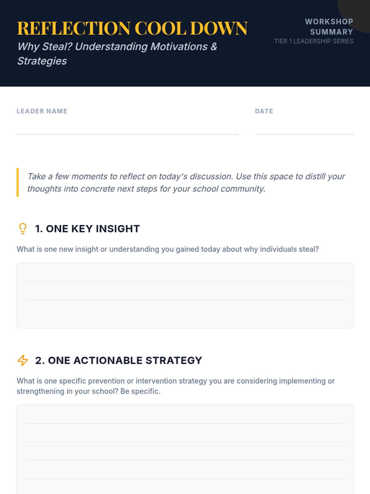 This 30-minute Tier 1 lesson helps school leaders understand the motivations behind stealing and develop proactive prevention and intervention strategies to foster an ethical school culture.