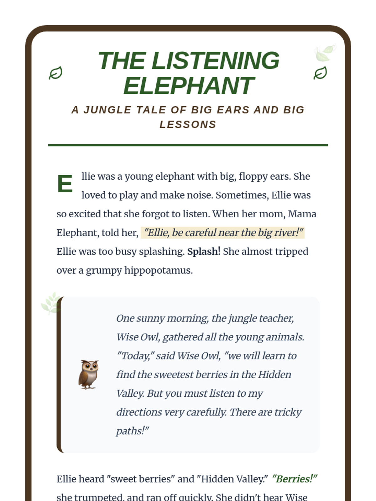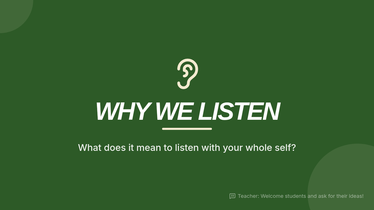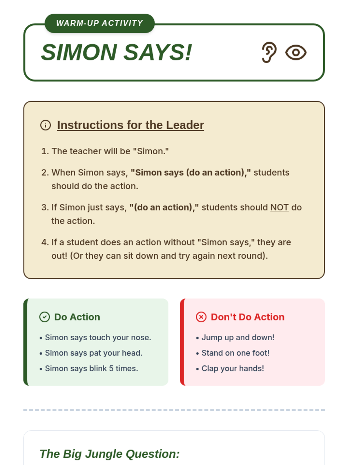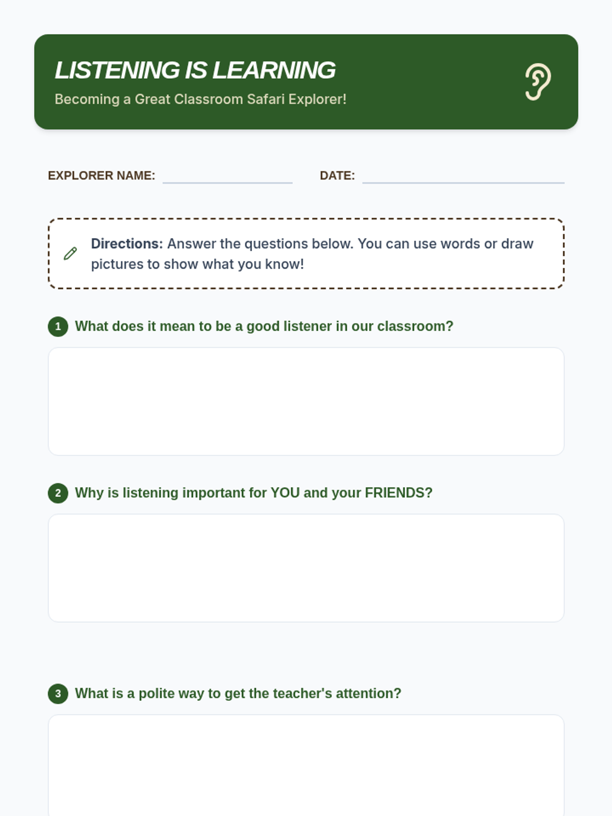 A single-session lesson for 3rd-grade ESOL students that uses interactive games, a story about an elephant, and discussions to teach the importance of active listening and positive classroom behavior.