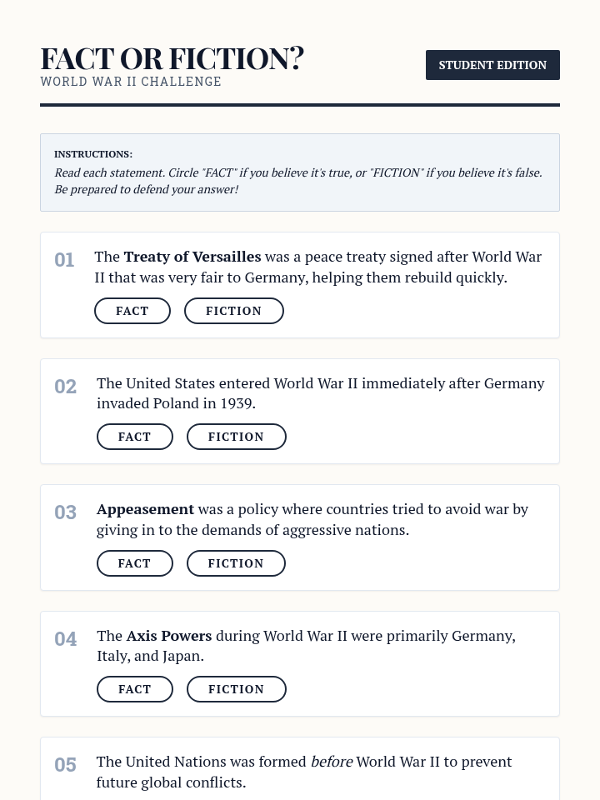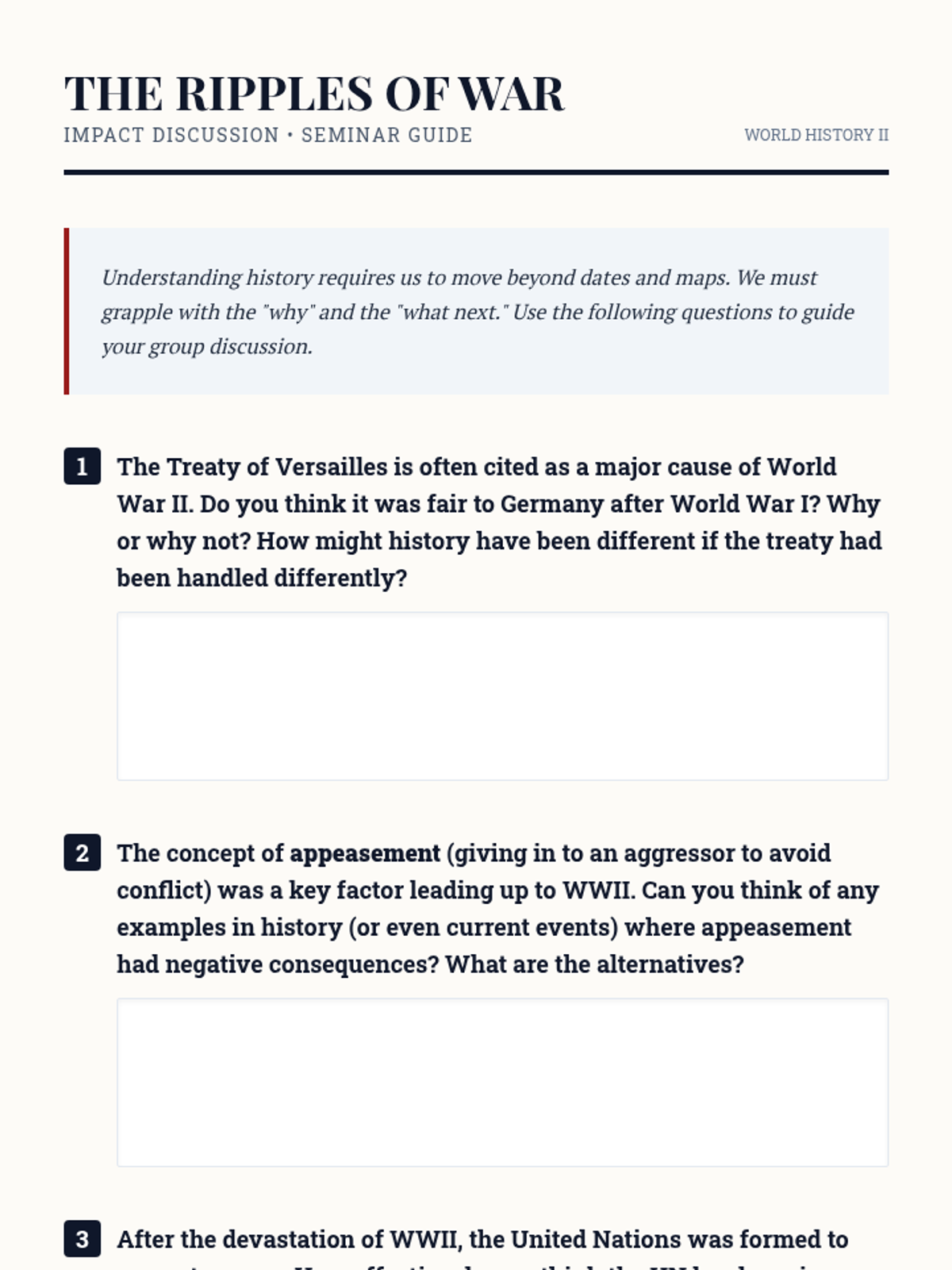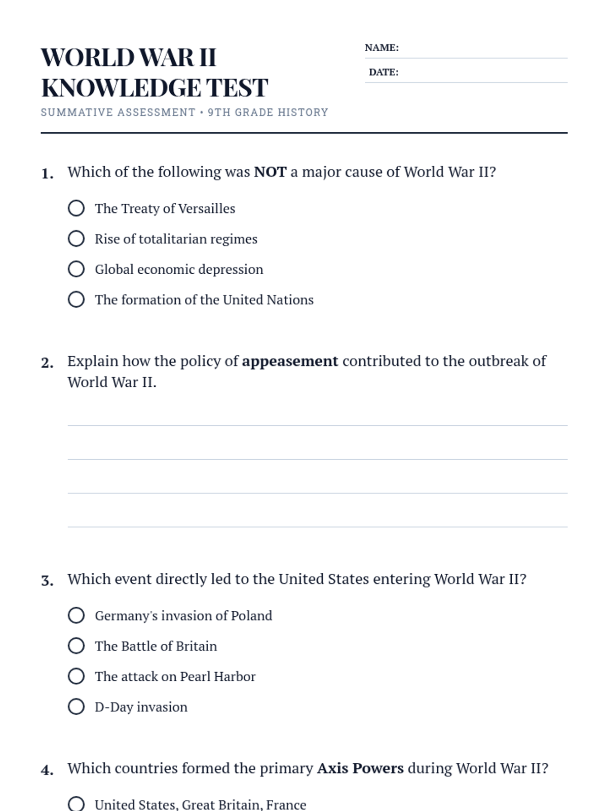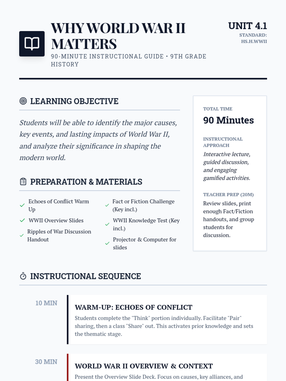 Explore the causes, key events, and lasting impact of World War II. This lesson helps 9th-grade students understand a pivotal moment in history and its relevance today. Designed for a single 90-minute classroom session.