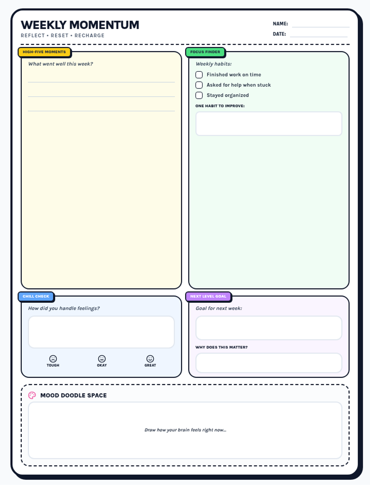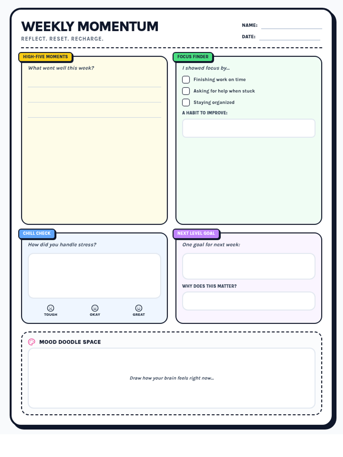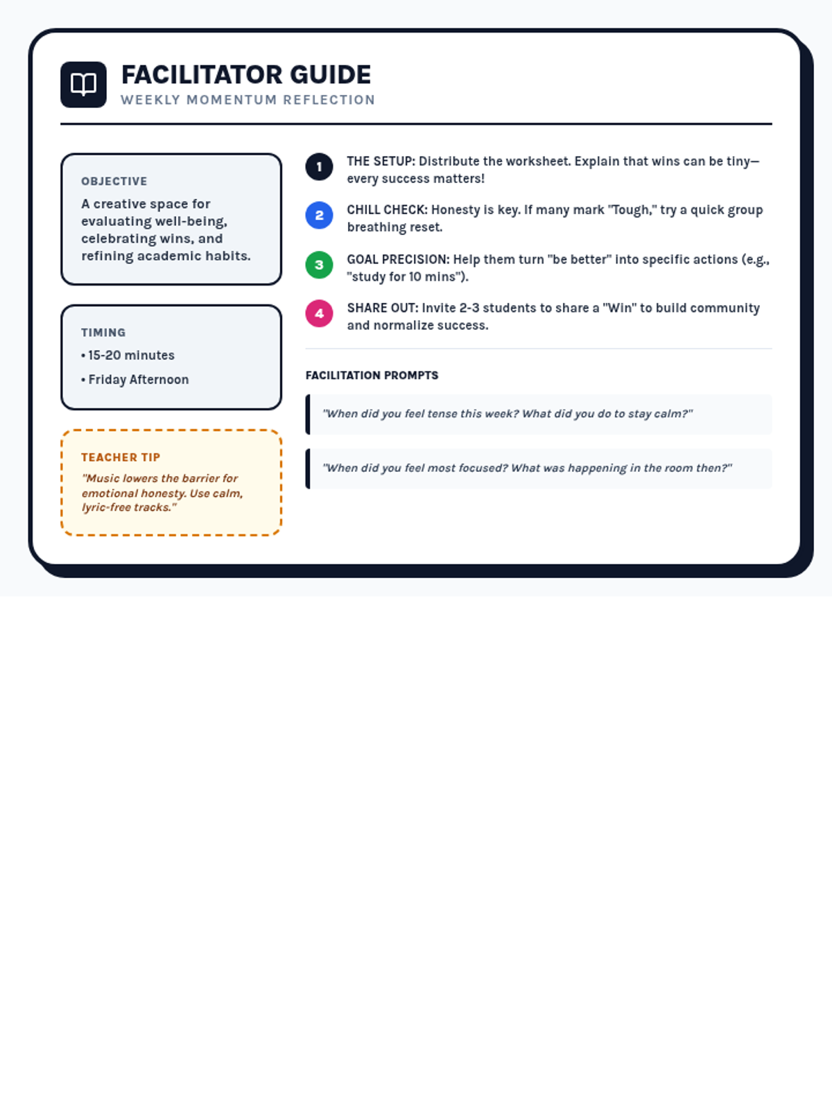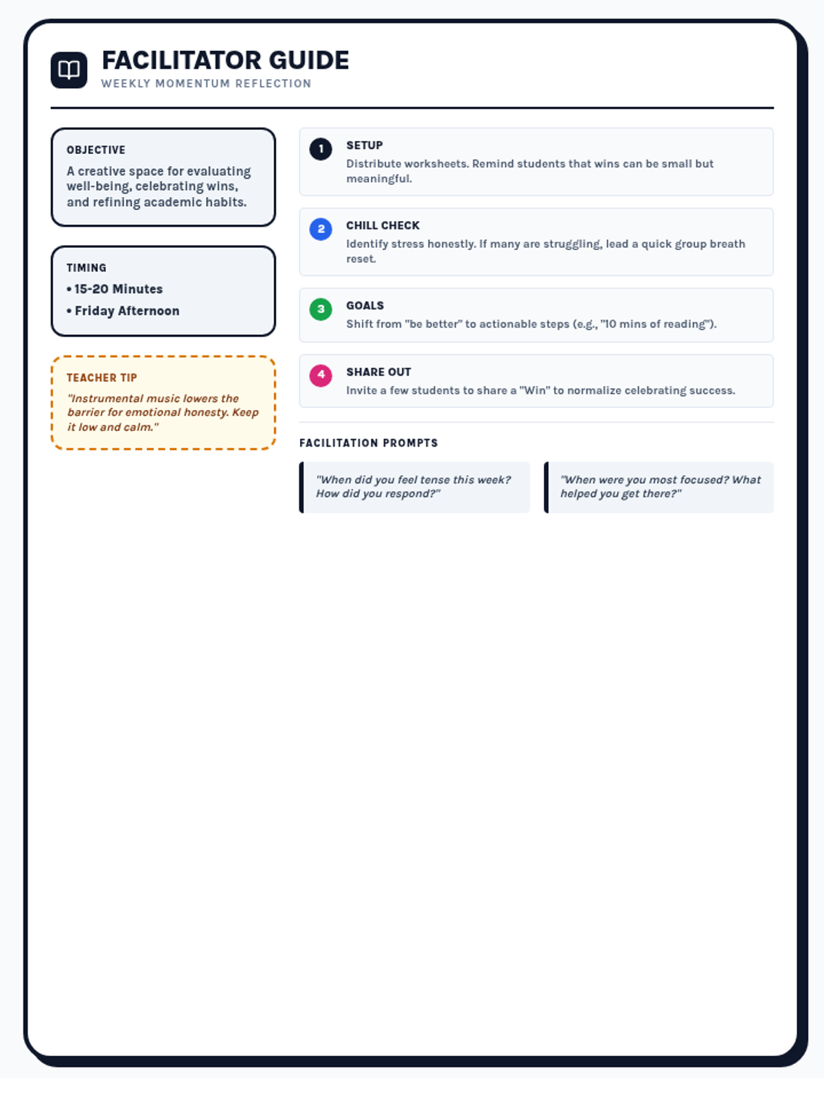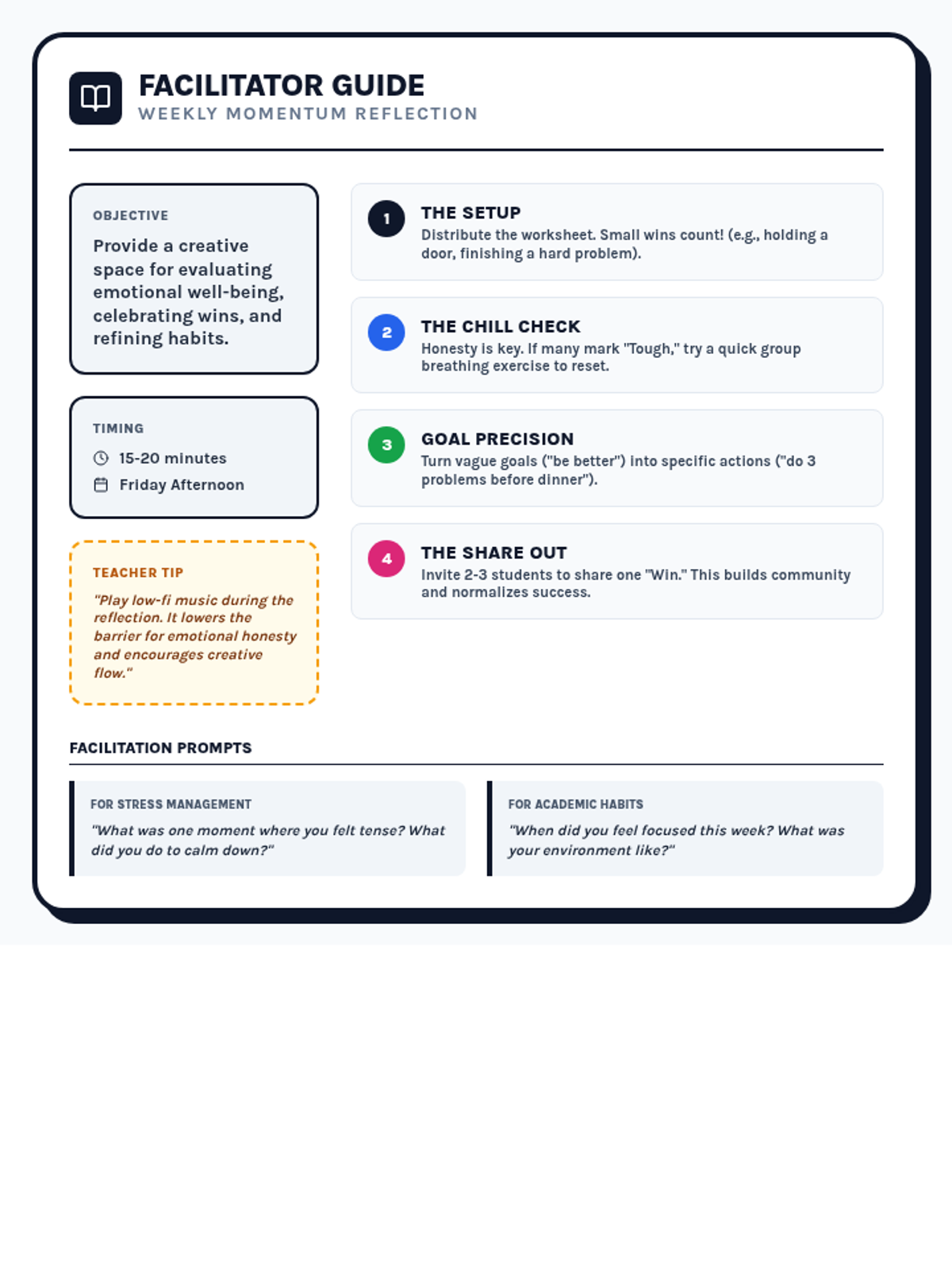 A structured one-on-one intervention designed to help middle school students identify causes of daytime sleepiness, track their energy levels, and implement discreet engagement strategies to stay focused in class.