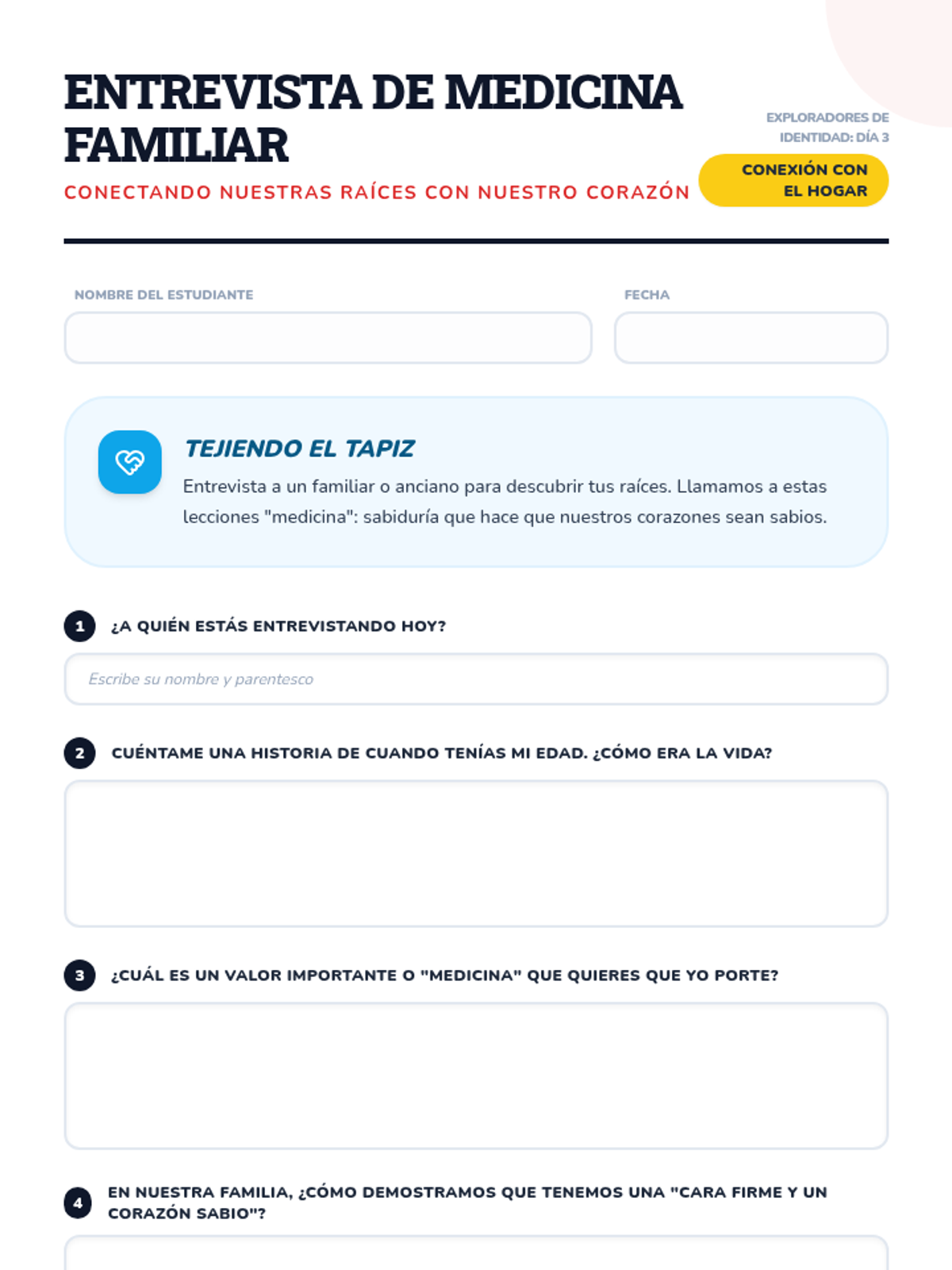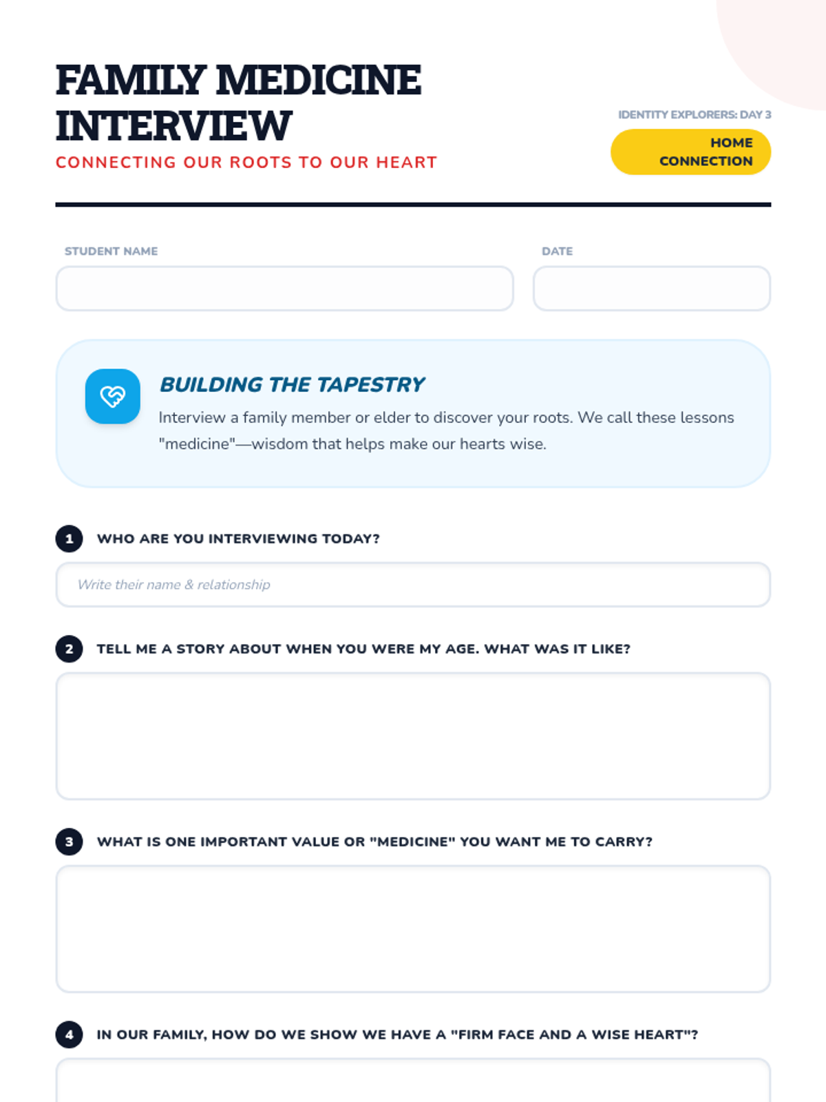 Day 3: Connecting personal identity to ancestry, heritage, and the land through the story of Xihuitl and the Identity Adjective Codex.