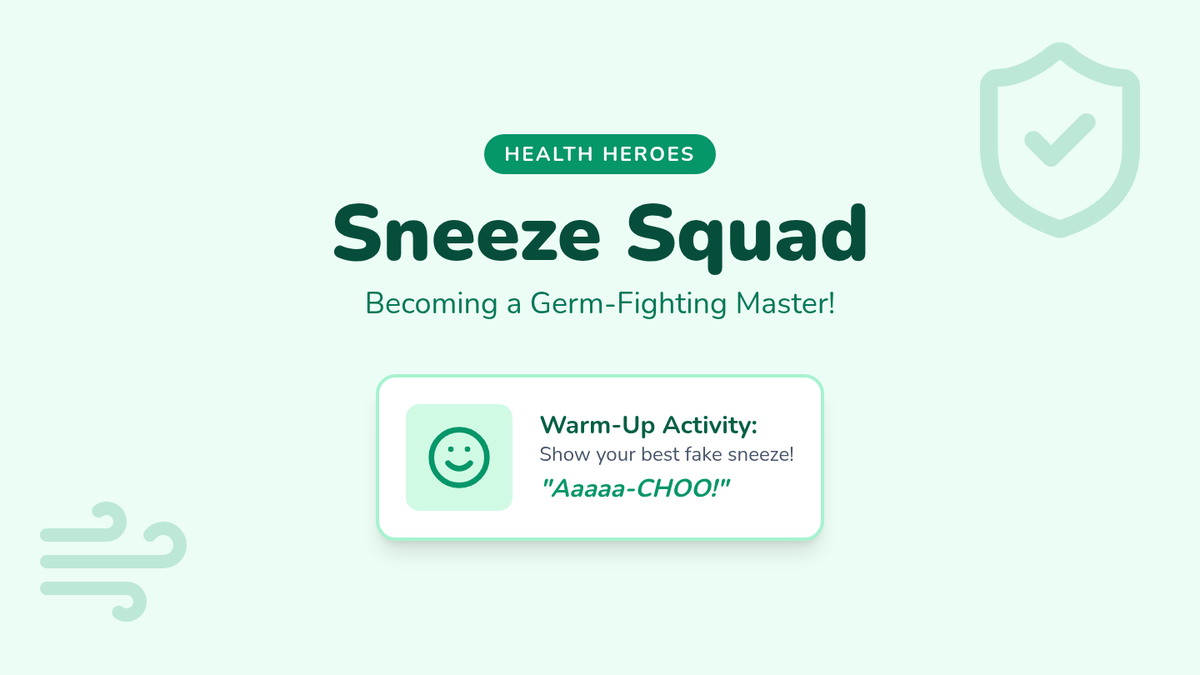 Students in Pre-K to Grade 3 learn essential cold and flu prevention strategies through the 'Sneeze Shield' technique, interactive storytelling, and germ-stopping habits.