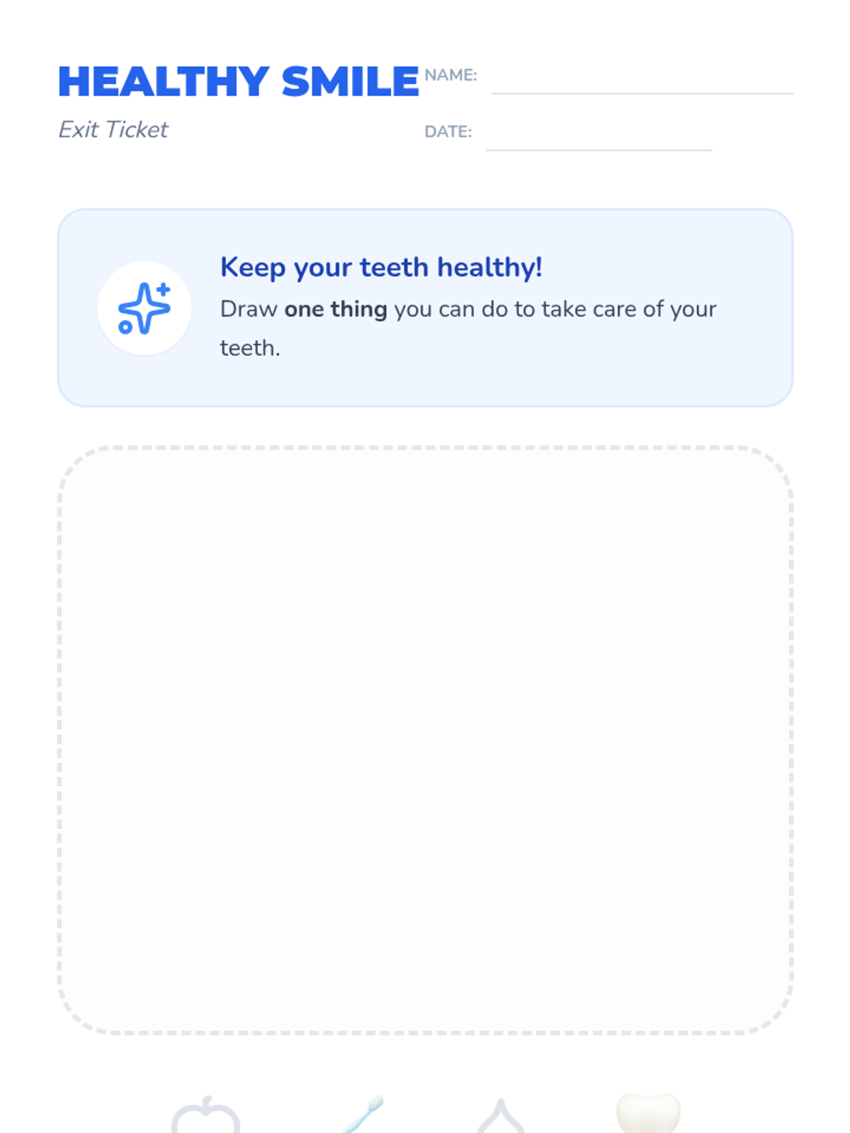 A comprehensive 30-minute circle time lesson covering dental hygiene, healthy eating habits for teeth, and what to expect during a dentist visit.
