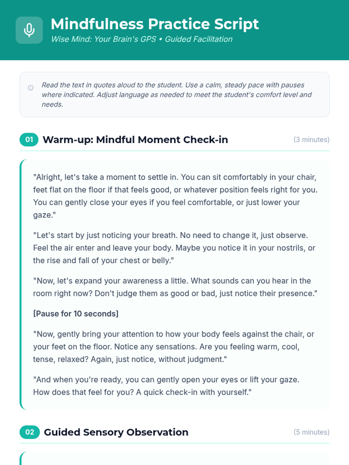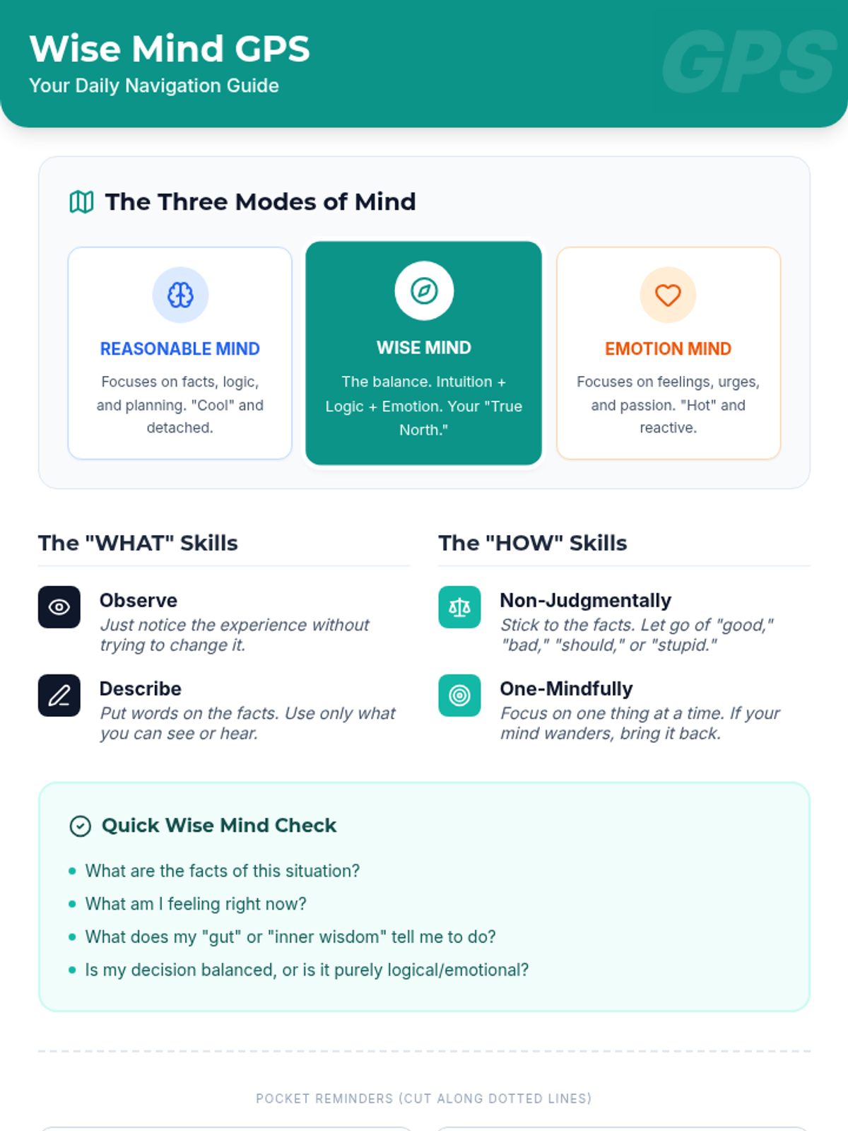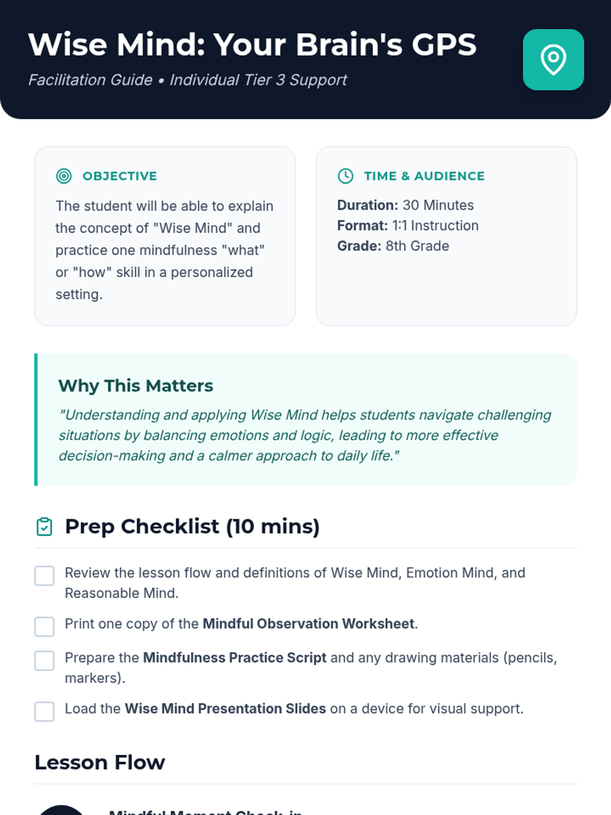 An individual Tier 3 lesson for 8th graders on balancing logic and emotion using the Wise Mind concept and mindfulness skills.