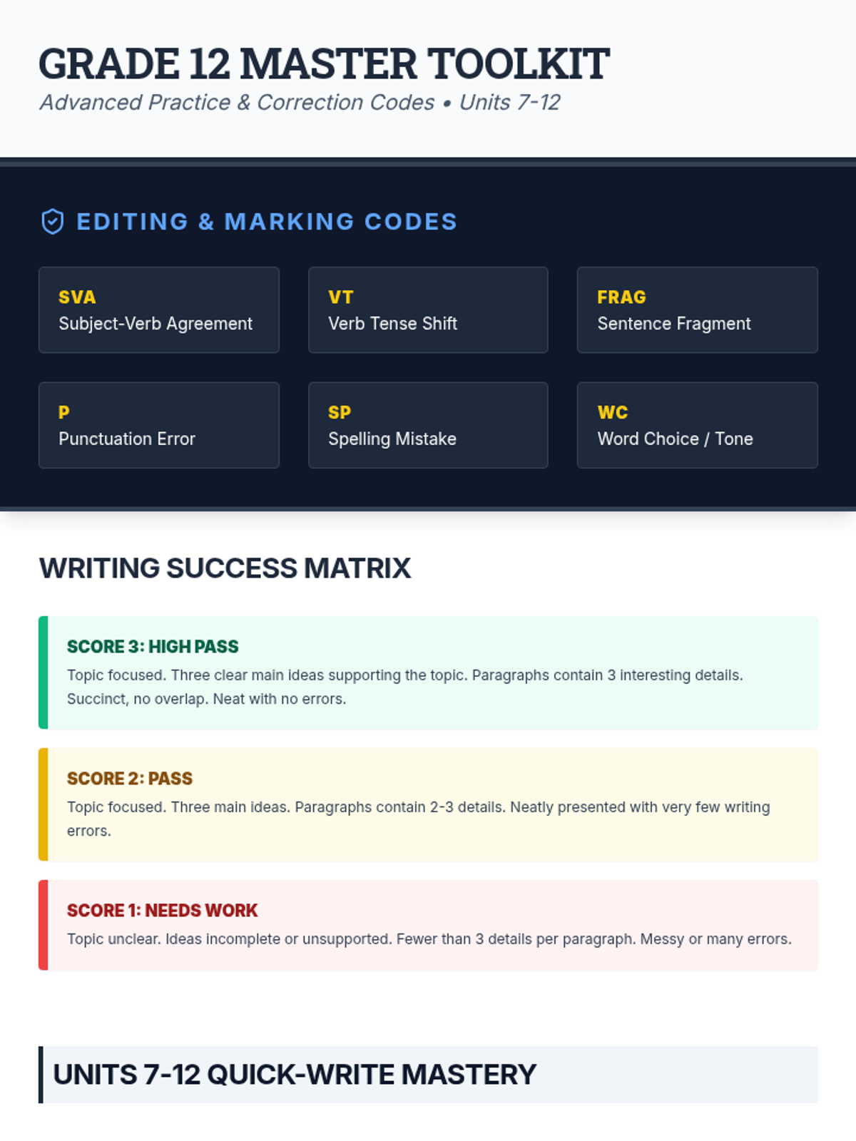 Provides timed writing practice and mock exam conditions to build stamina and review structural clarity.