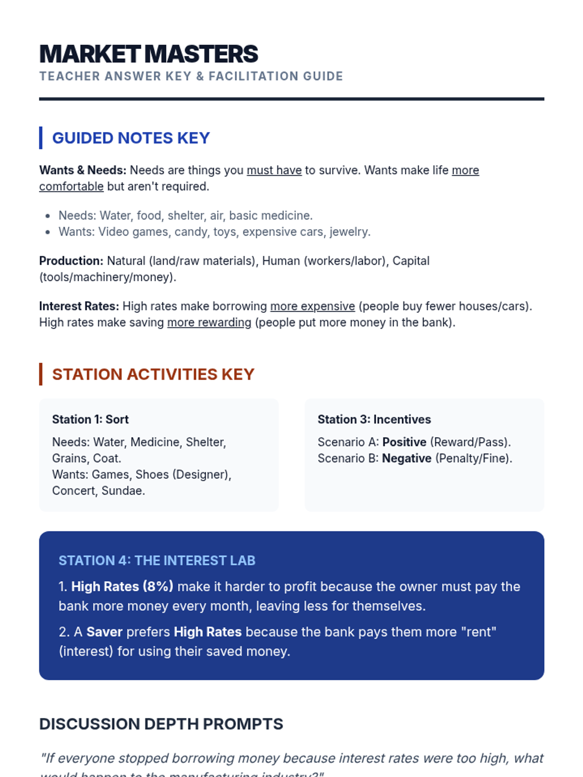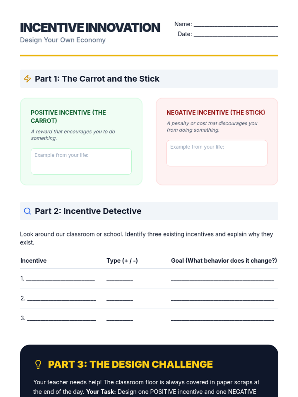 Students analyze how positive and negative incentives drive consumer and producer behavior in the marketplace.