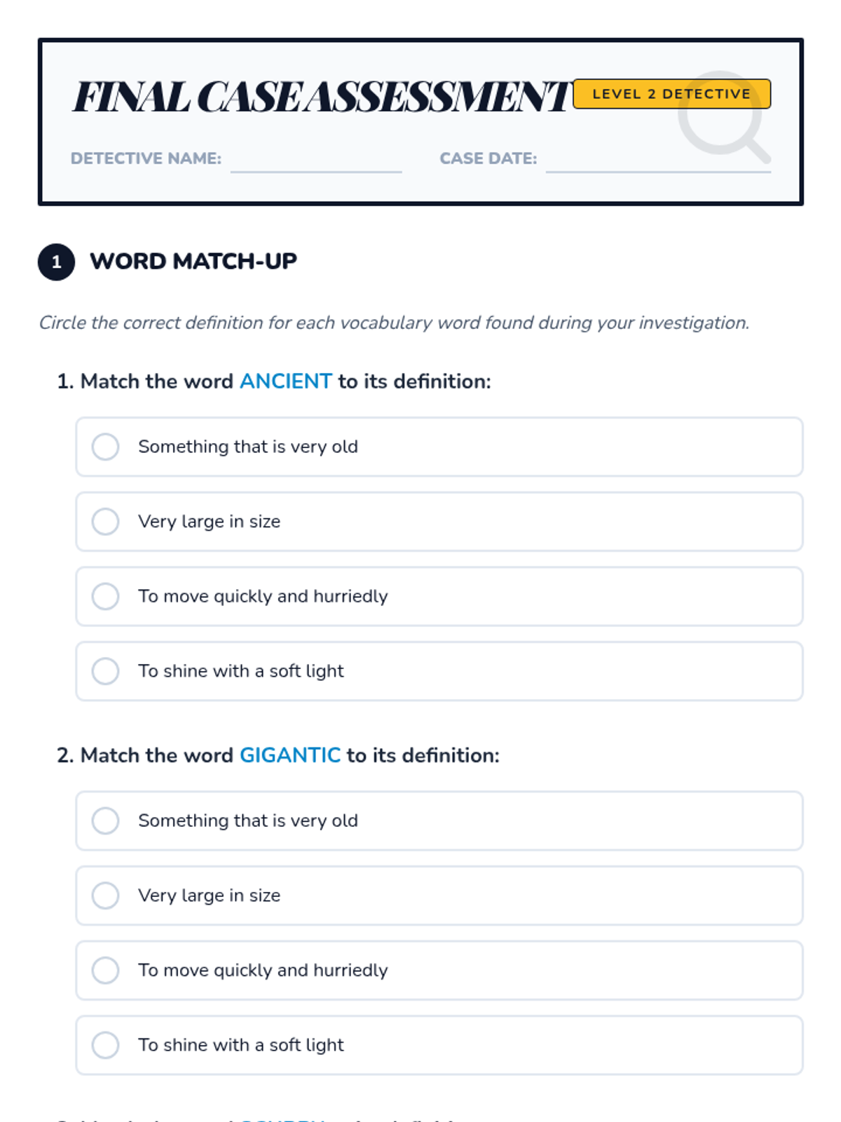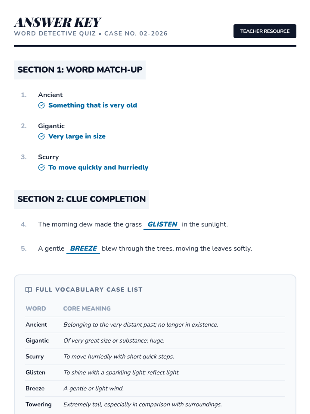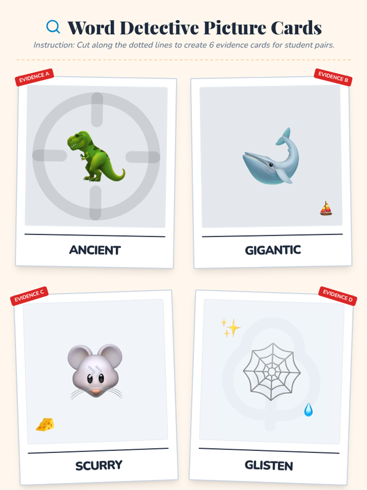 A 30-minute Tier 1 vocabulary lesson where 2nd graders become 'Word Detectives' to uncover word meanings using picture clues and collaborative investigation.