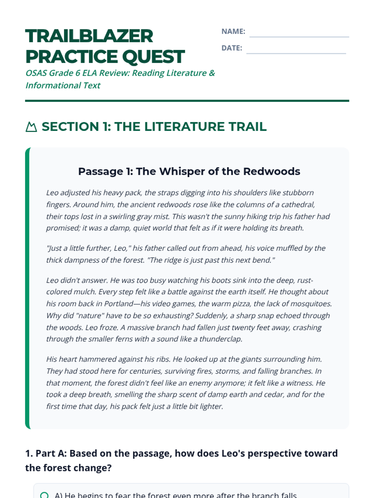A comprehensive review of Oregon's 6th-grade ELA standards for Reading Literature and Informational Text, designed to prepare students for the OSAS assessment using a Pacific Northwest field guide theme.