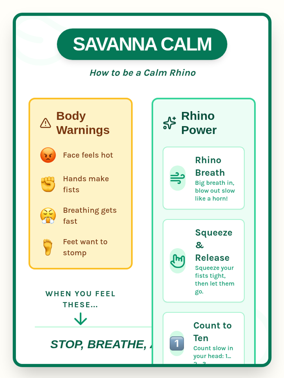A lesson focused on teaching children how to use physical movement and deep breathing to regulate their emotions and find focus.