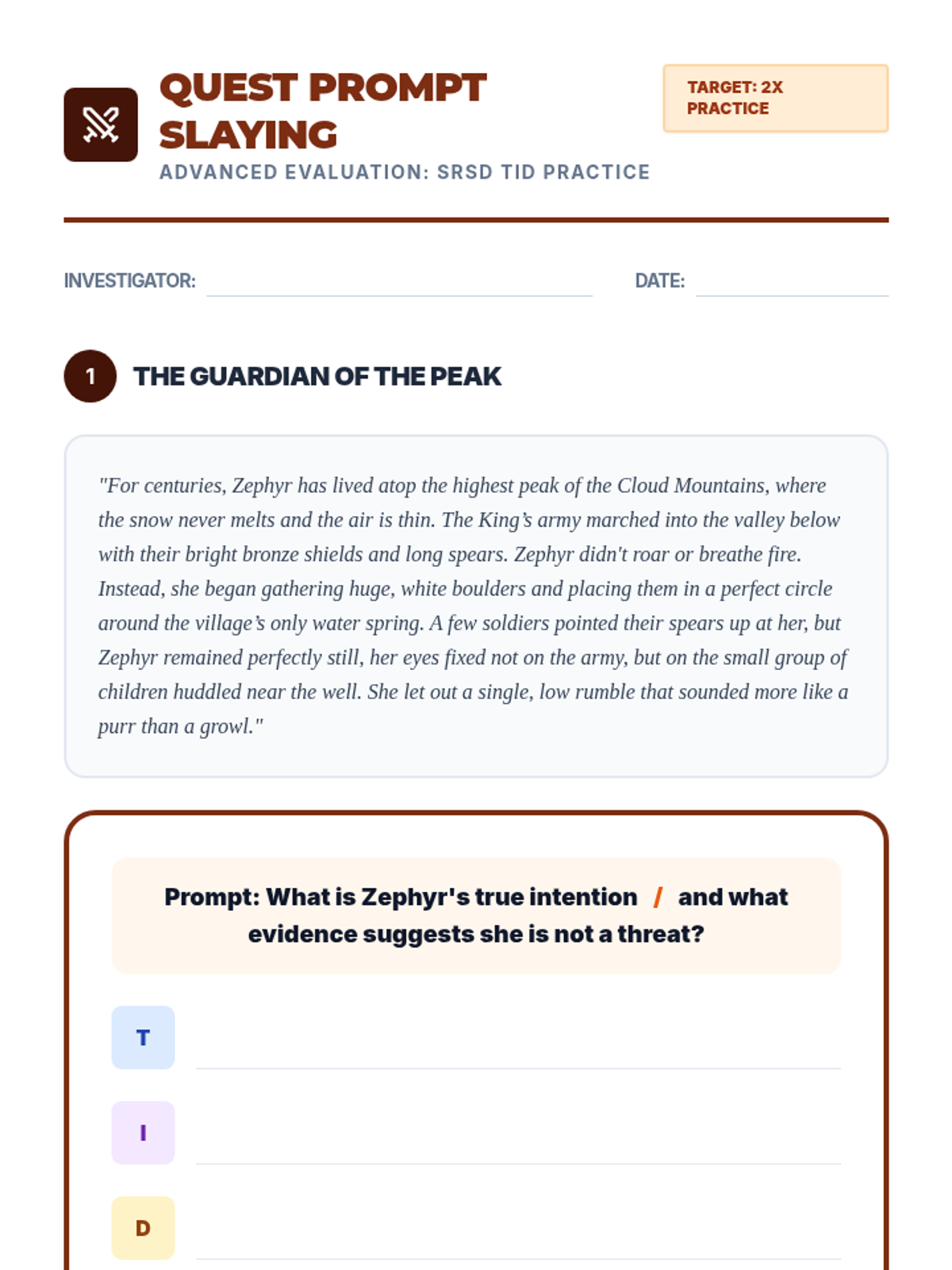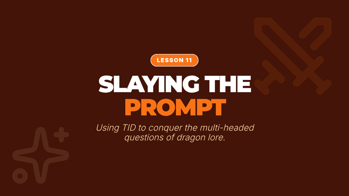 Students practice pulling apart multi-part implicit questions (slaying the prompt) using dragon lore texts.