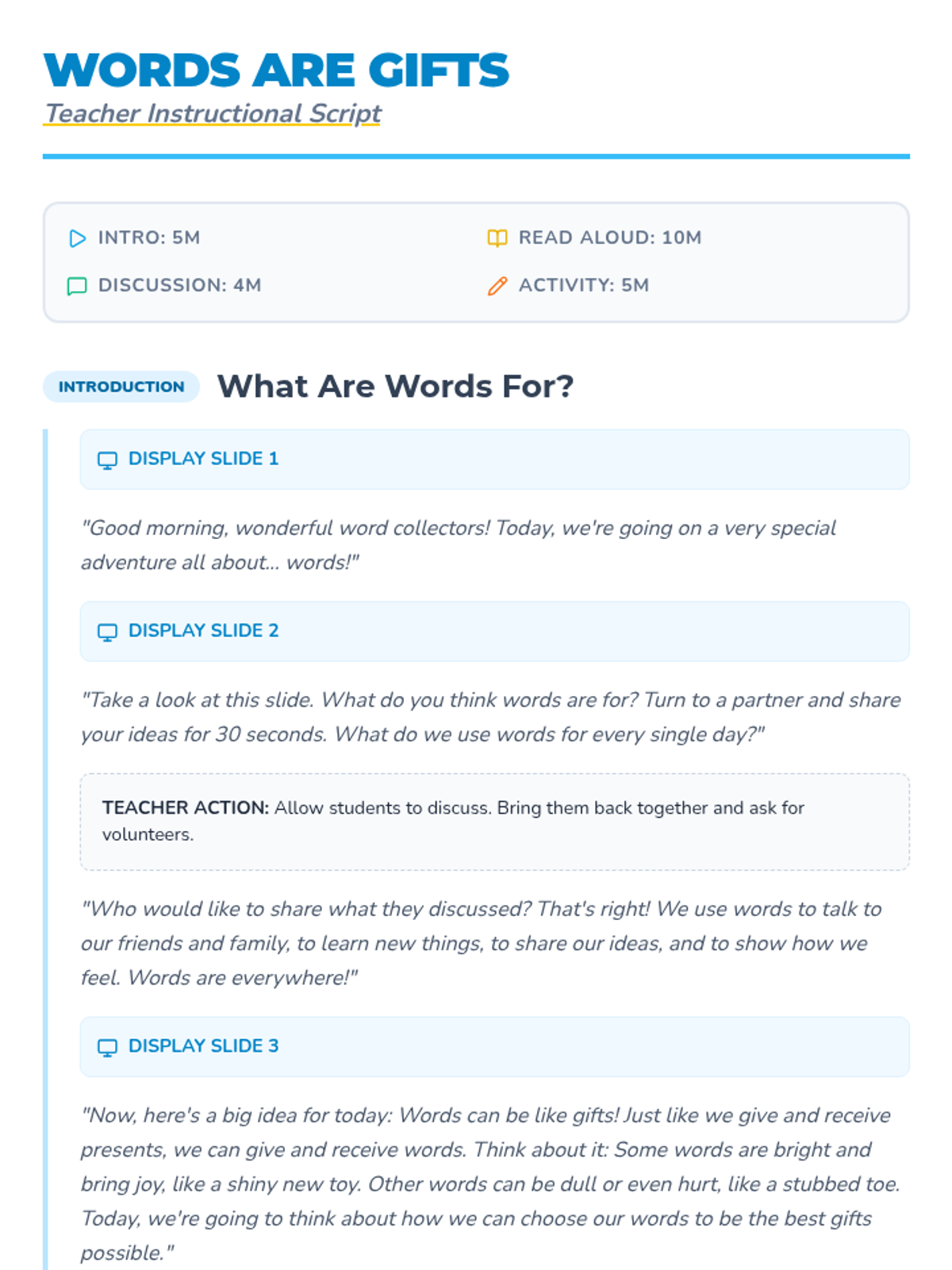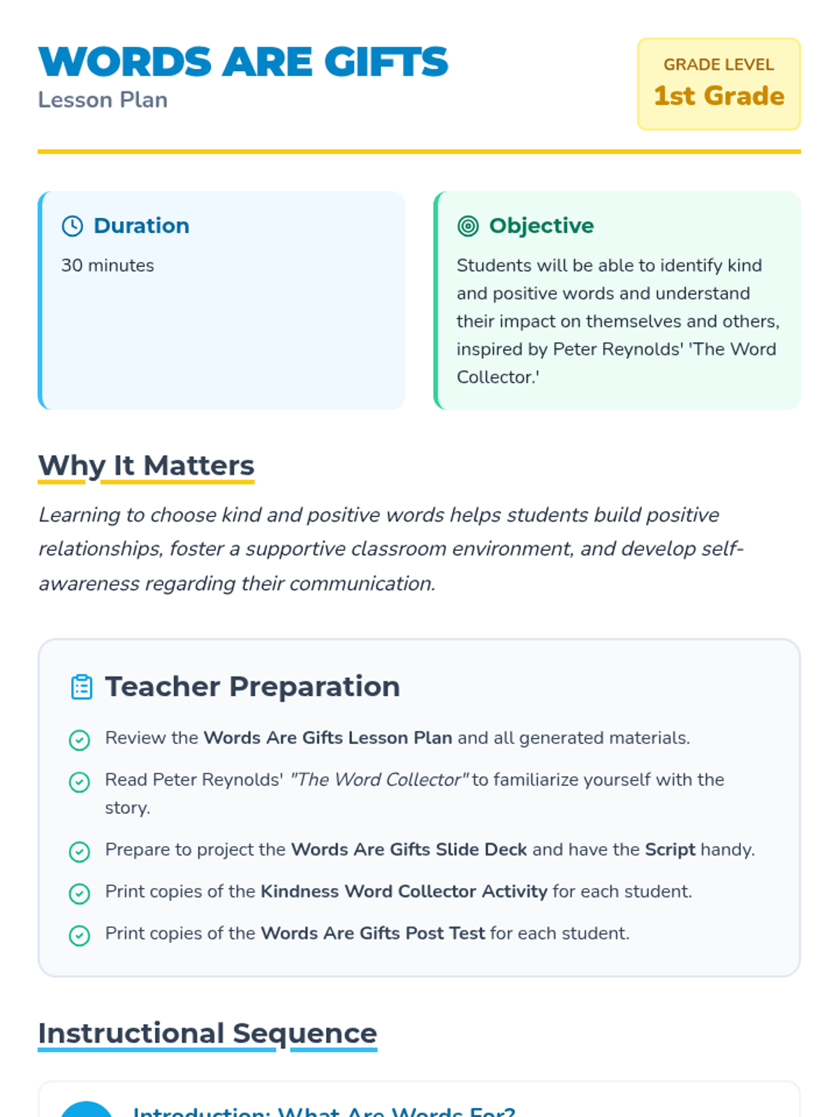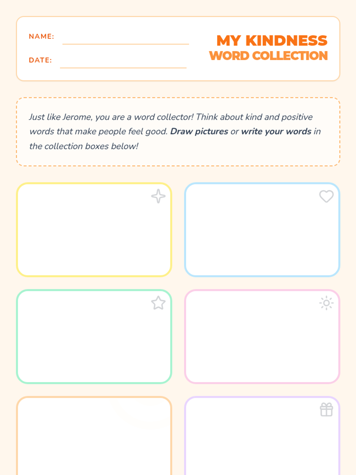 This lesson explores the powerful impact of words, focusing on kindness and positivity, inspired by Peter Reynolds' 'The Word Collector.' Students will learn to use their words to uplift themselves and others through a read-aloud, discussion, and creative word collection activity.