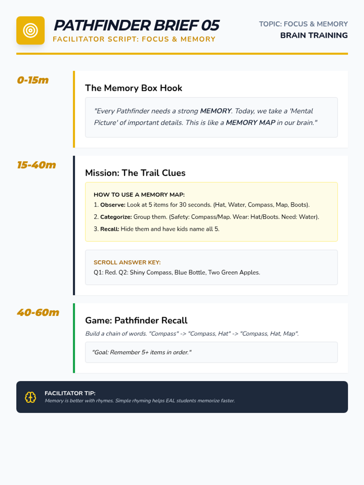 Boosting focus and memory skills for better learning and organizational habits.