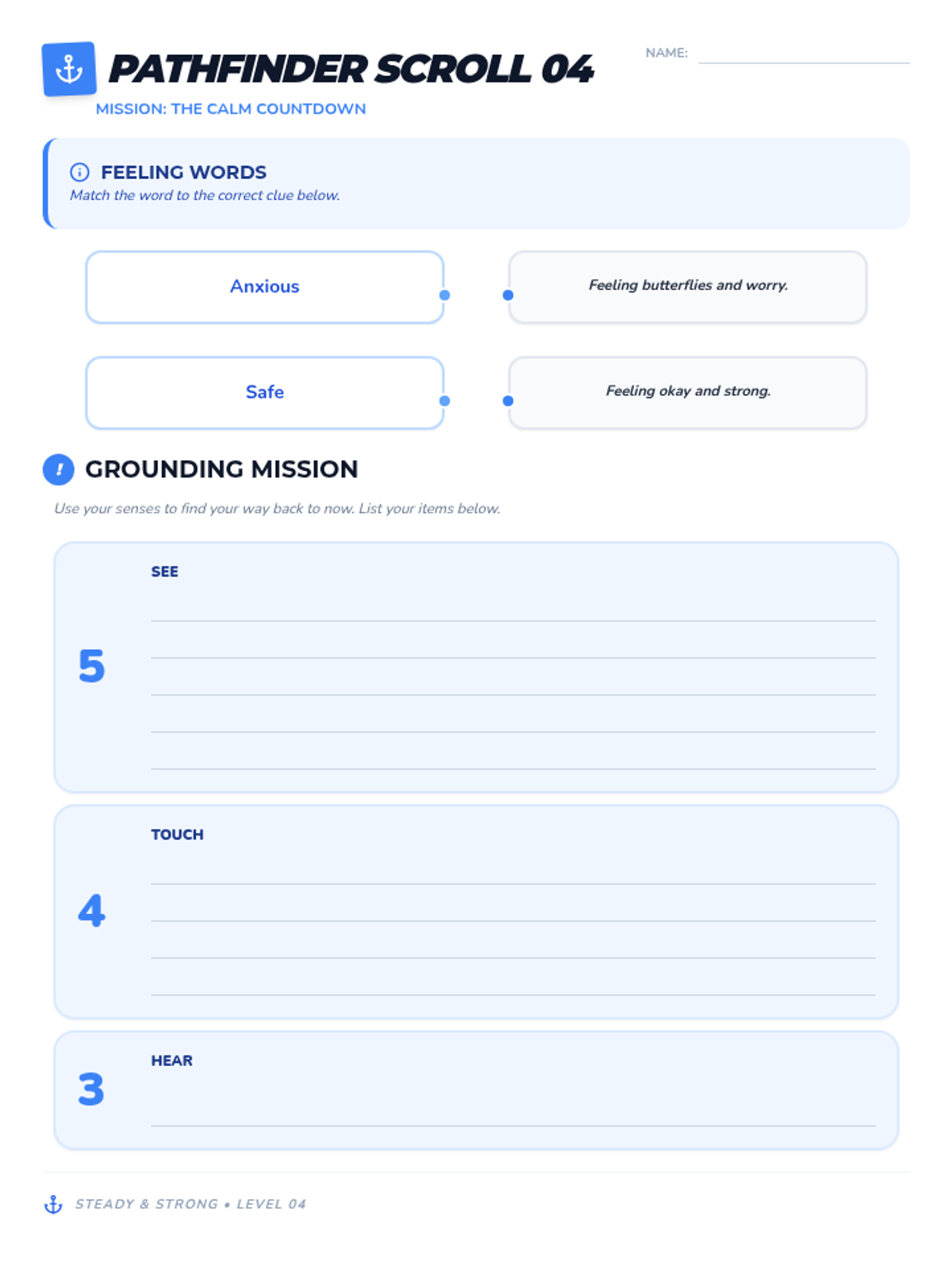 Techniques for managing anxiety and worries through Anxious Ninja. Focus on vocabulary development related to feelings.