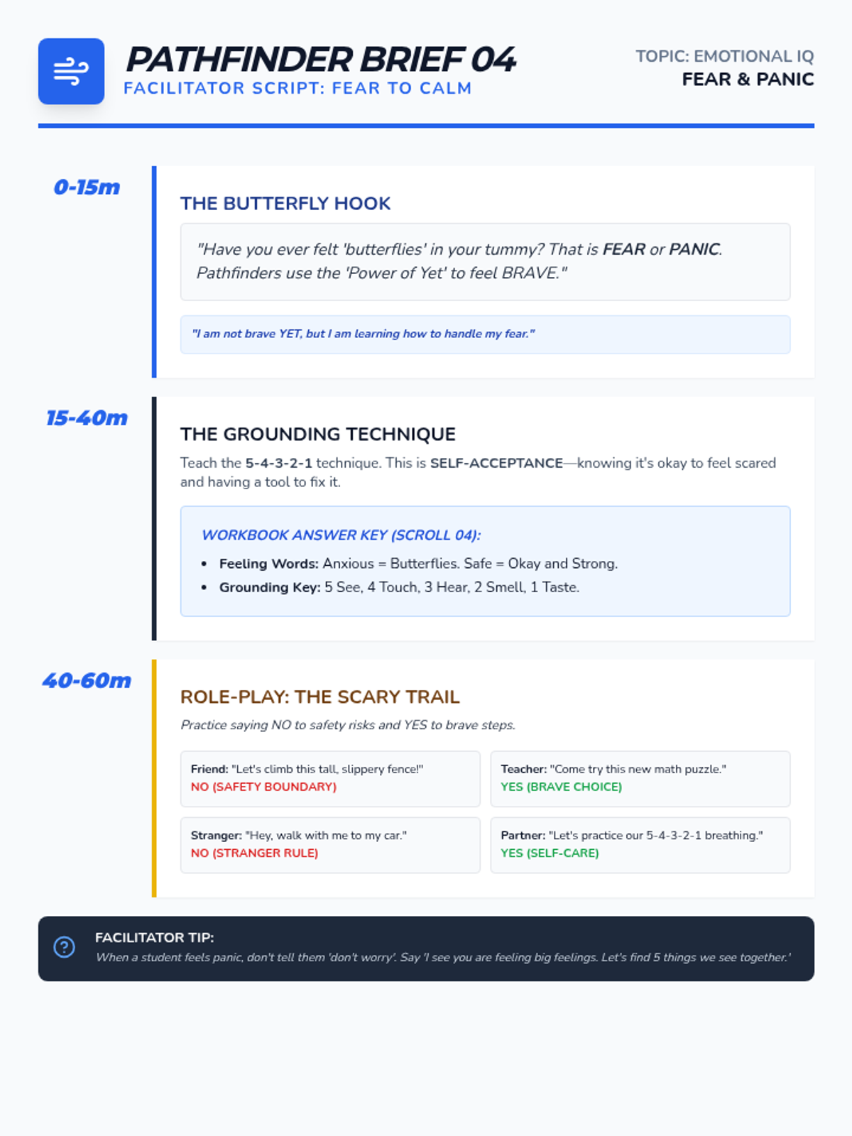 Overcoming fear, panic, and anxiety using grounding techniques and sensory awareness.
