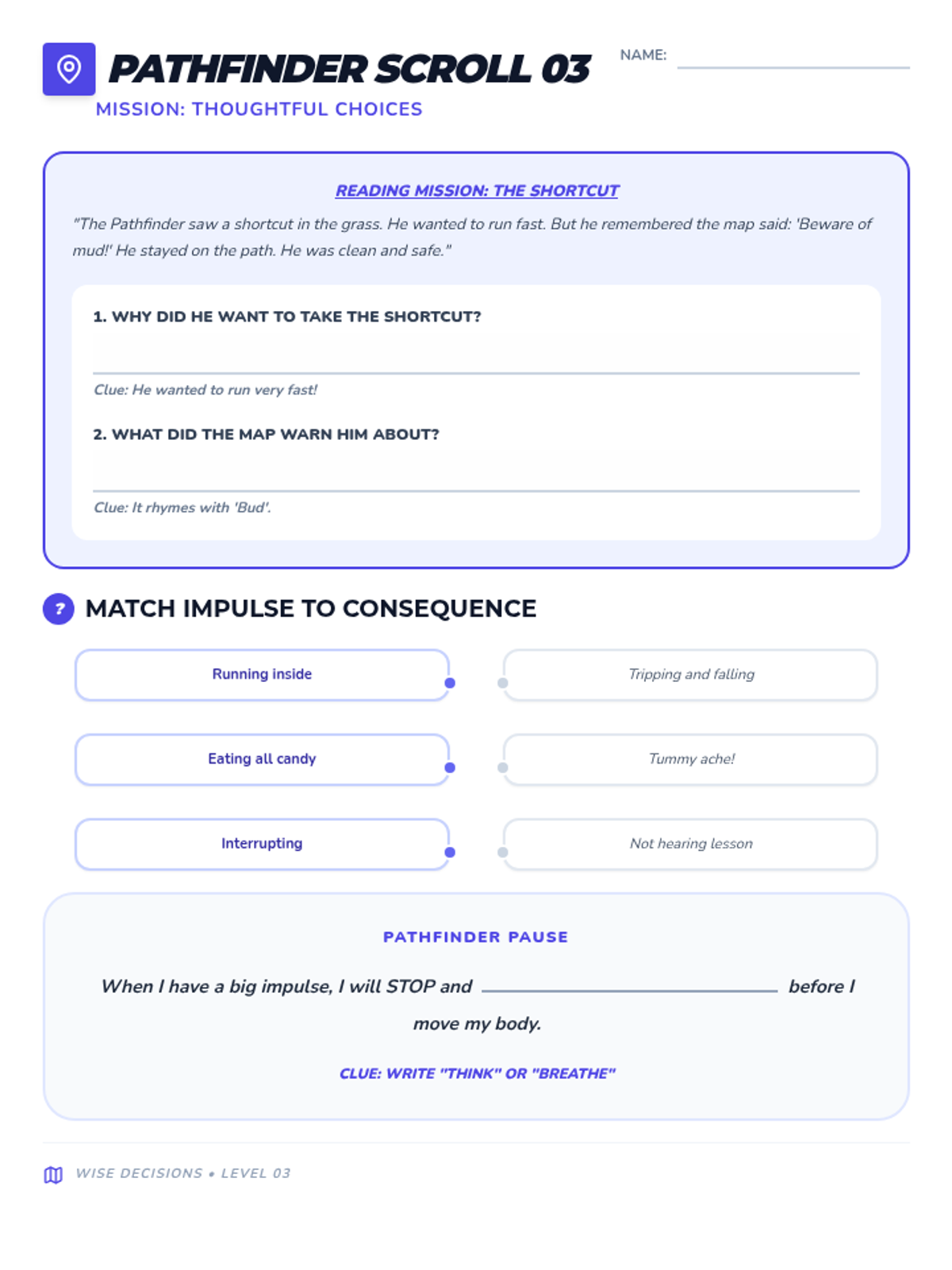 Learning the basics of financial literacy and making thoughtful choices. Focus on reading comprehension of simple systems.
