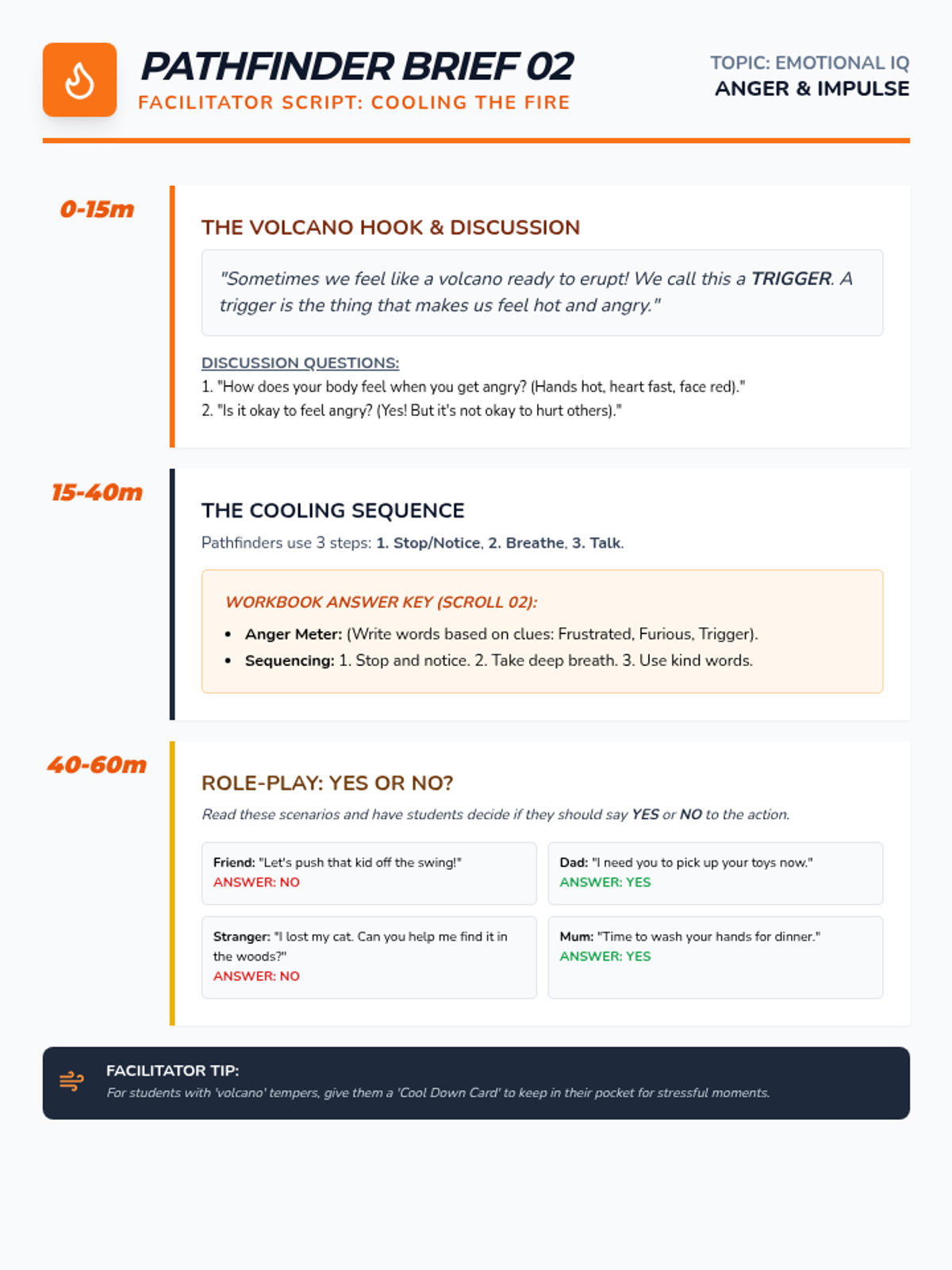 Managing impulsive behavior and big emotions like anger through self-regulation techniques.