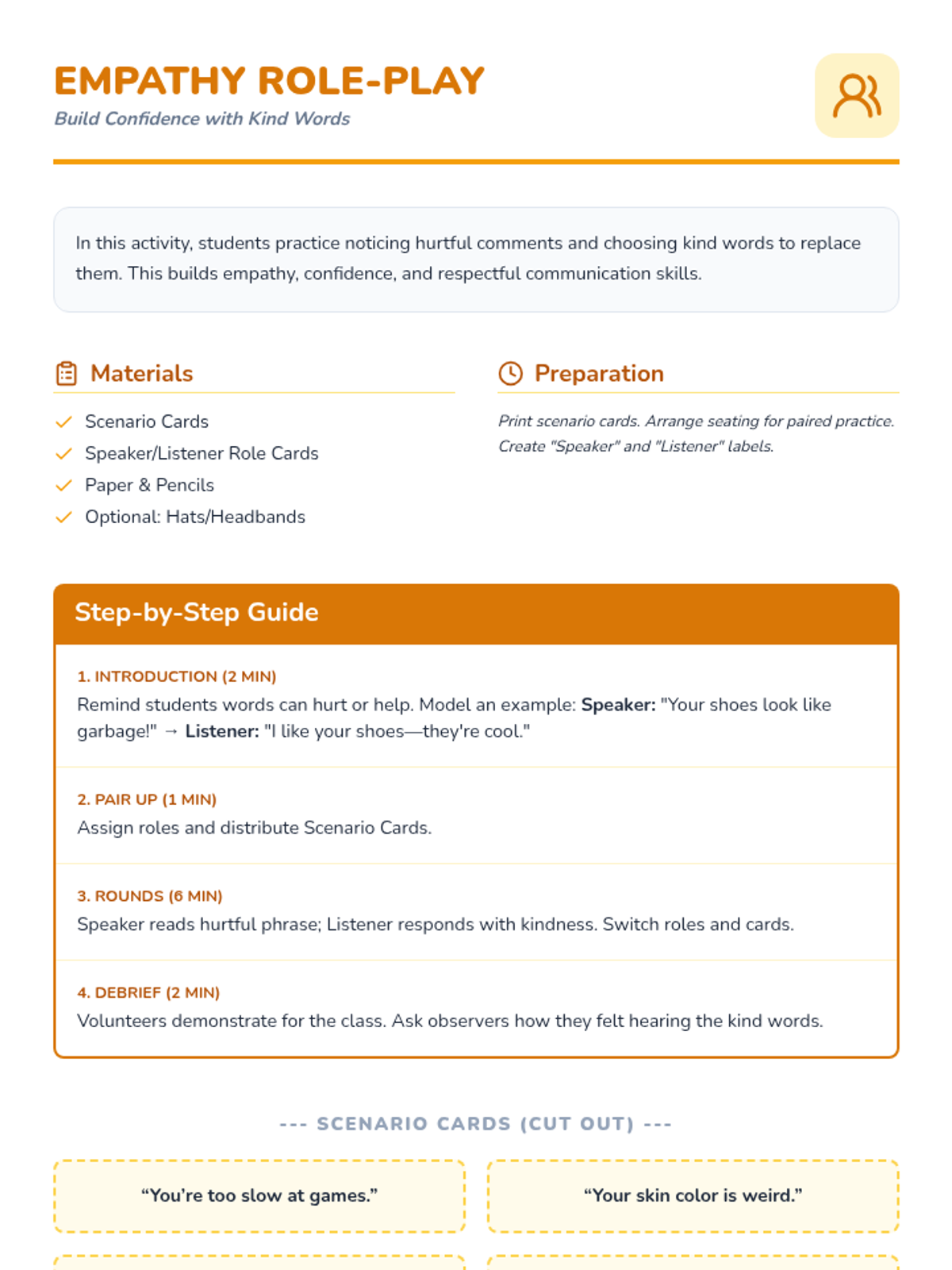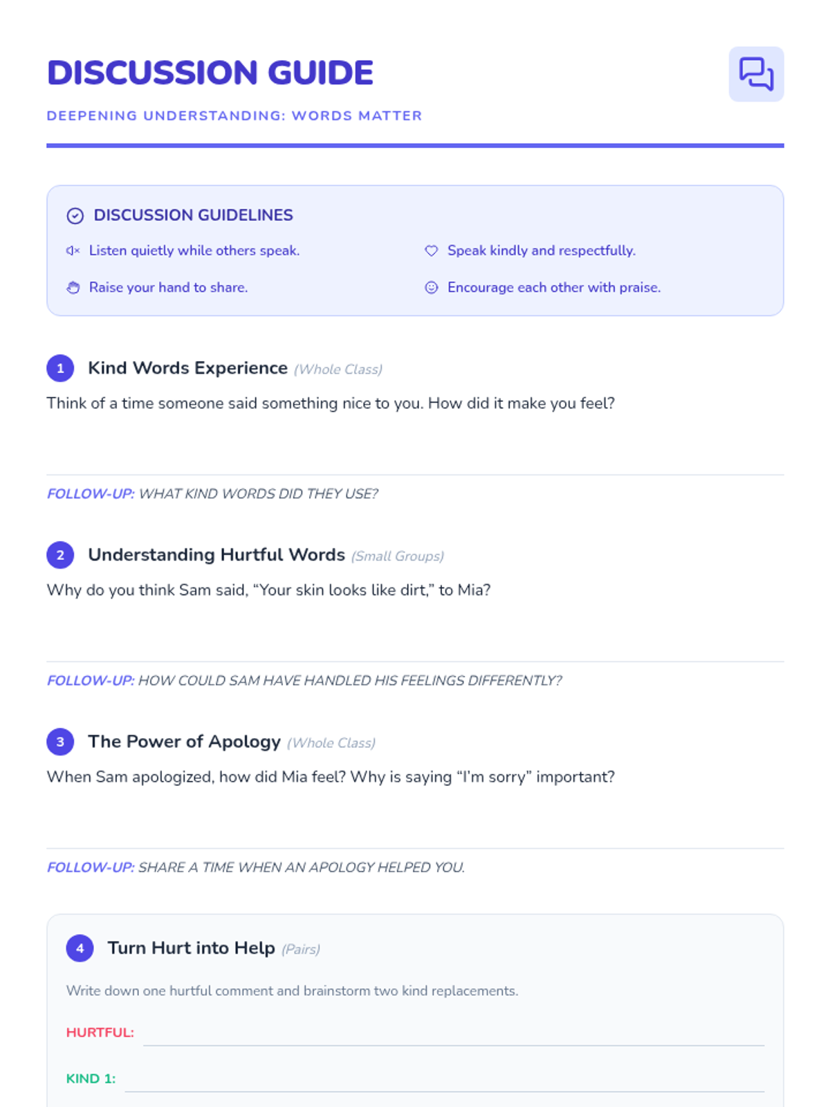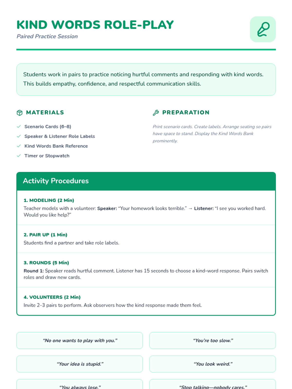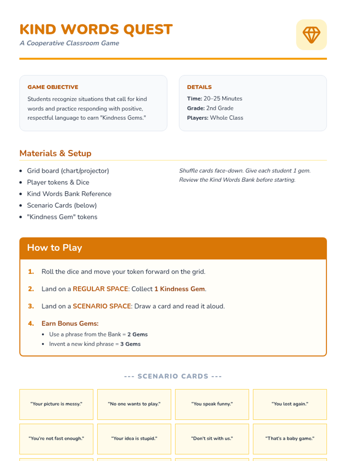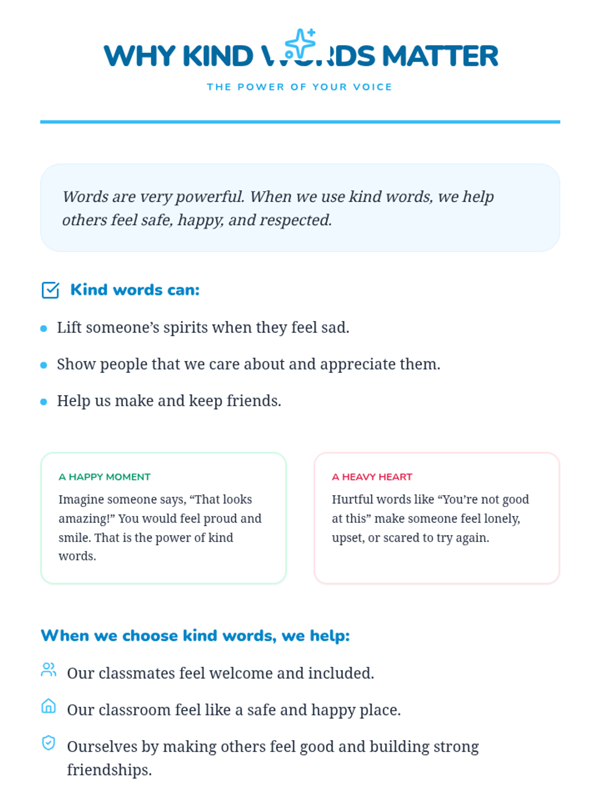 A 30-minute Tier 2 lesson for 2nd graders to help them recognize the impact of racist comments and practice using kind words to build empathy and positive communication.