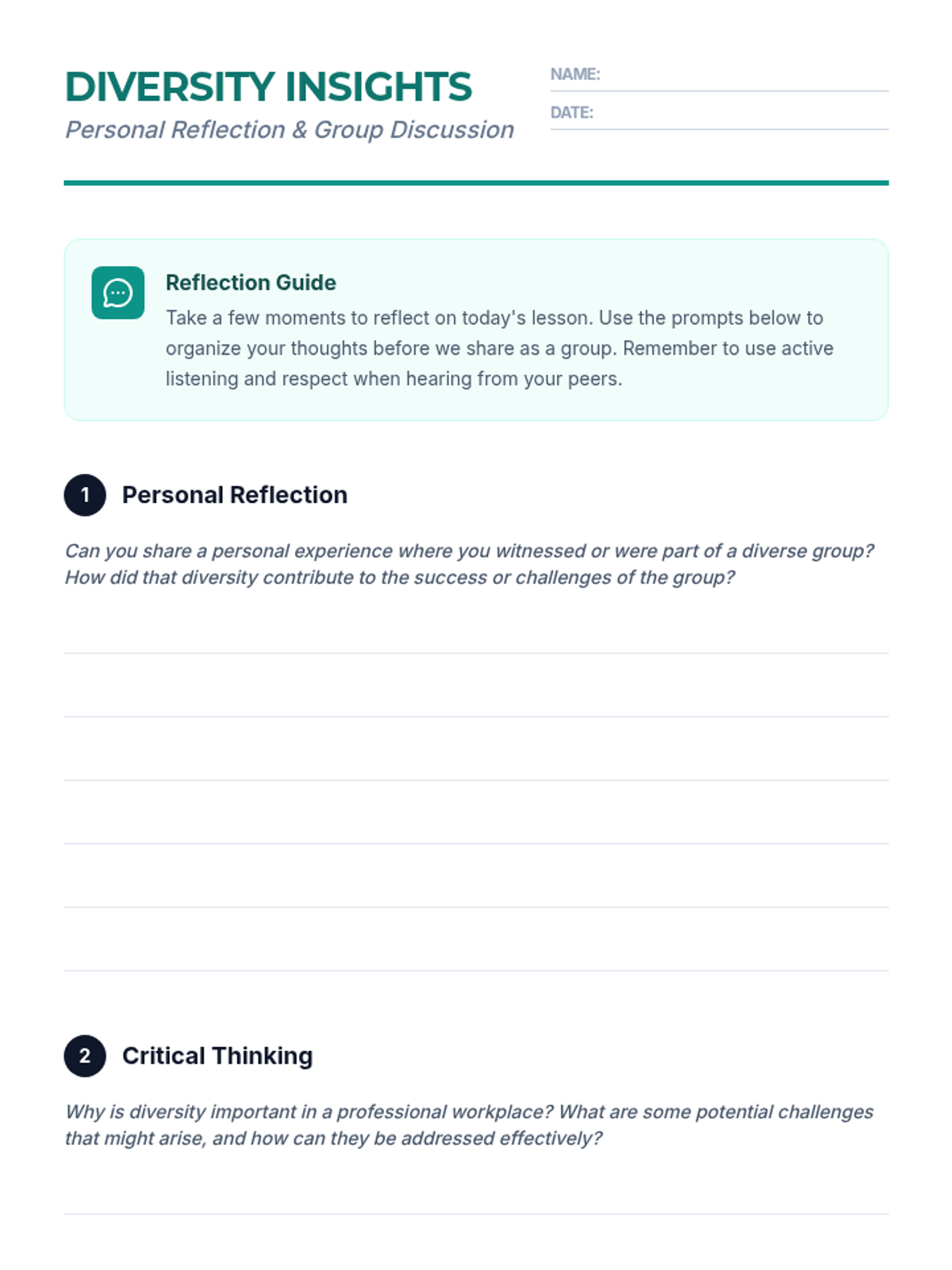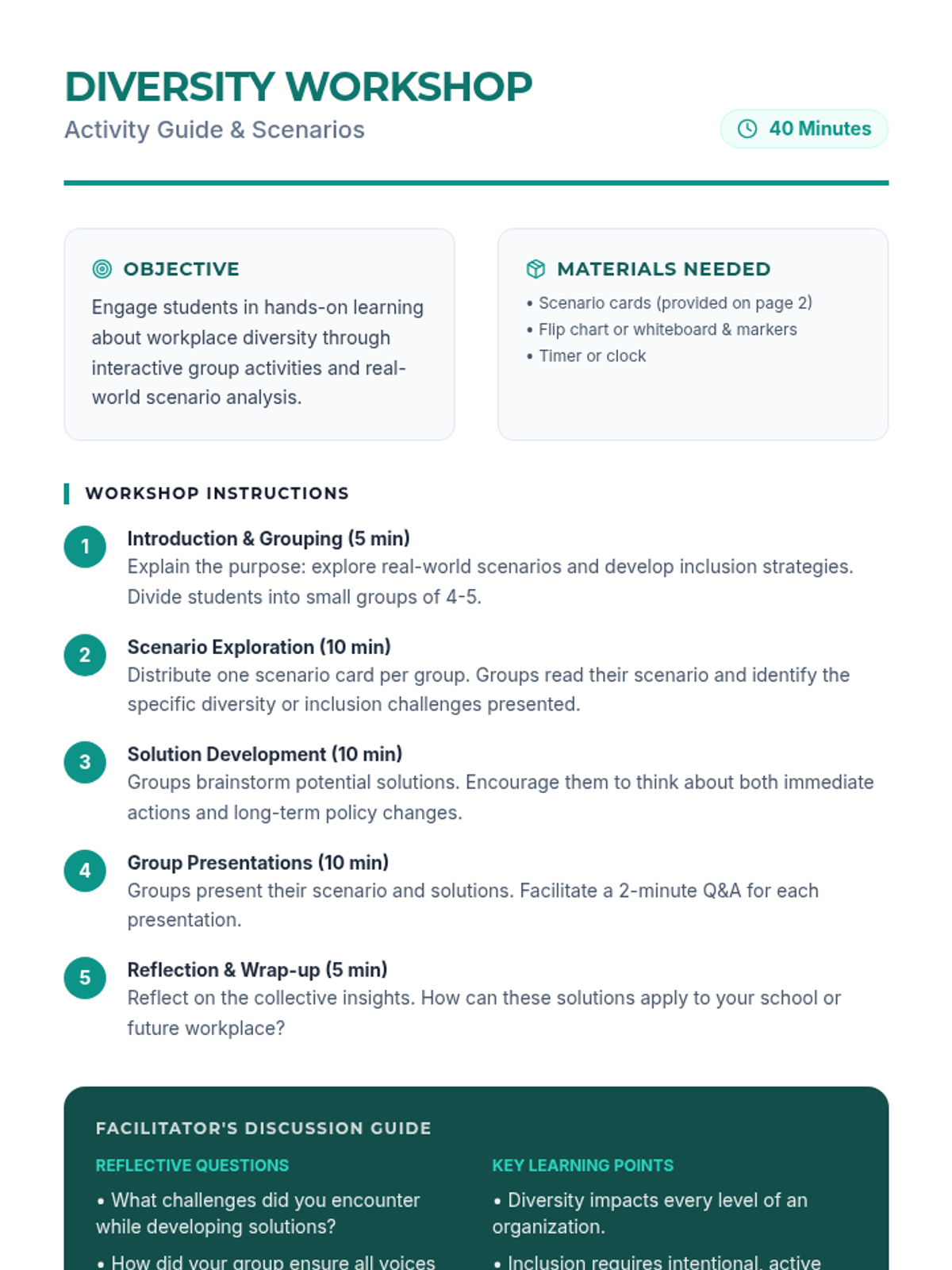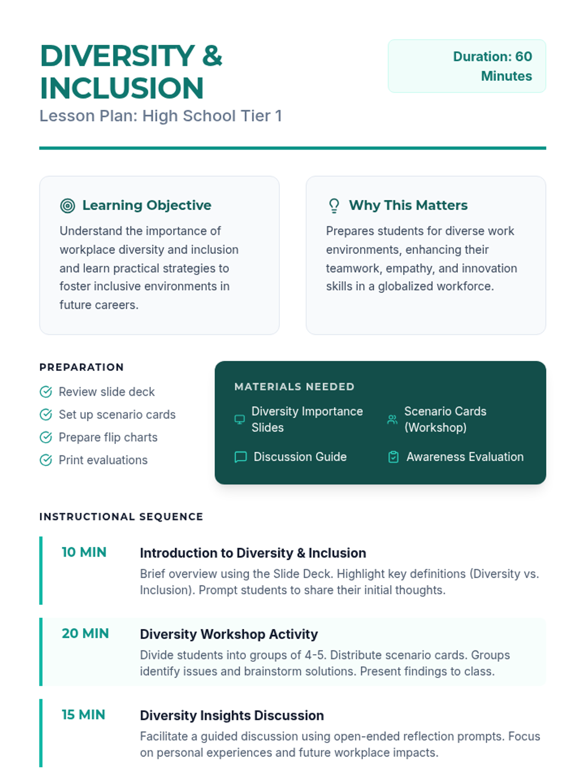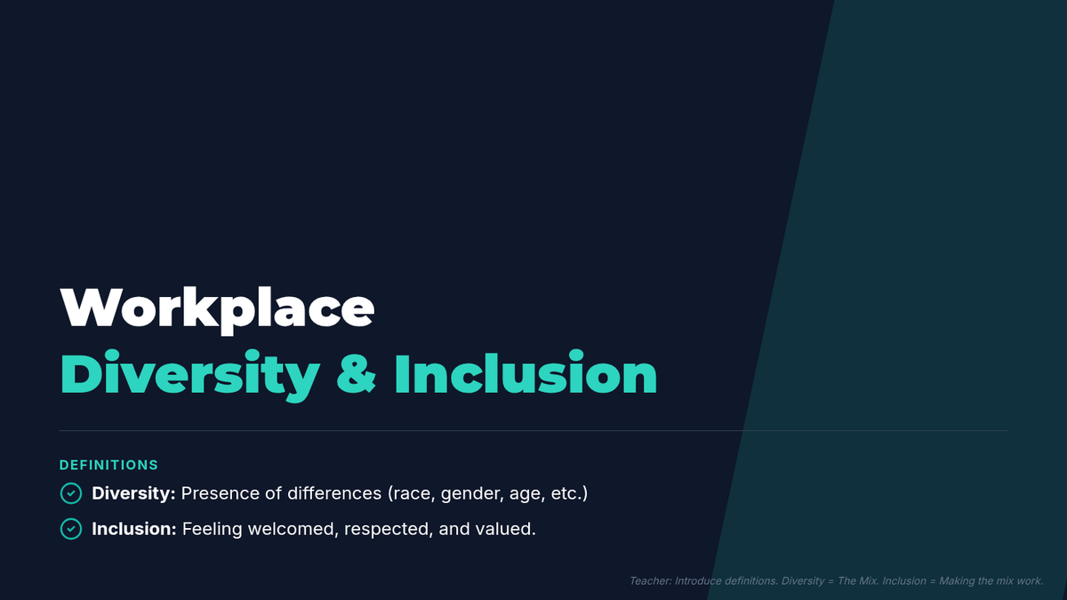 An introduction to workplace diversity and its importance for high school students, focusing on the benefits of diverse work environments and strategies for fostering inclusion.
