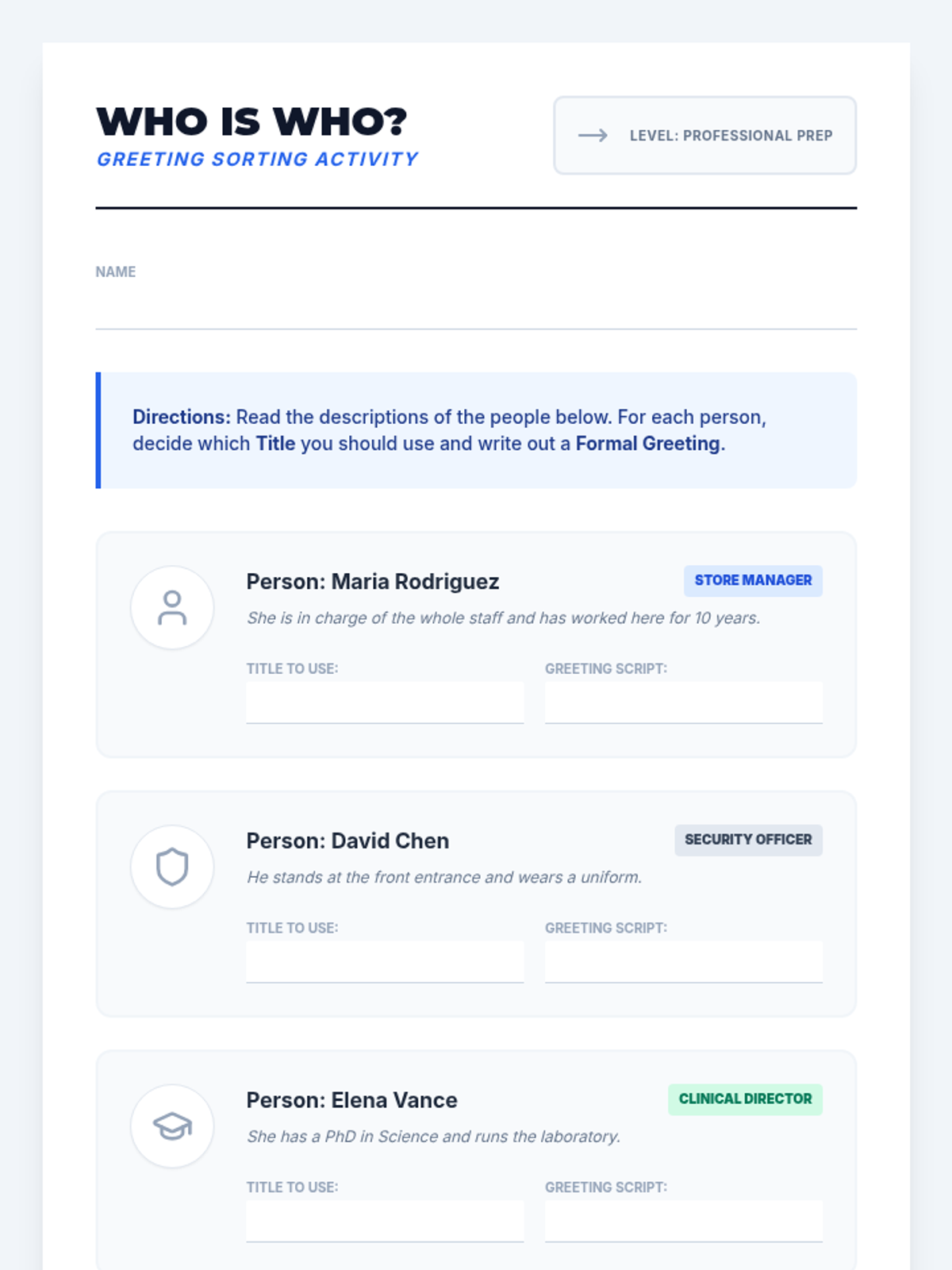 Understanding professional titles and the appropriate level of formality for different roles within a workplace.