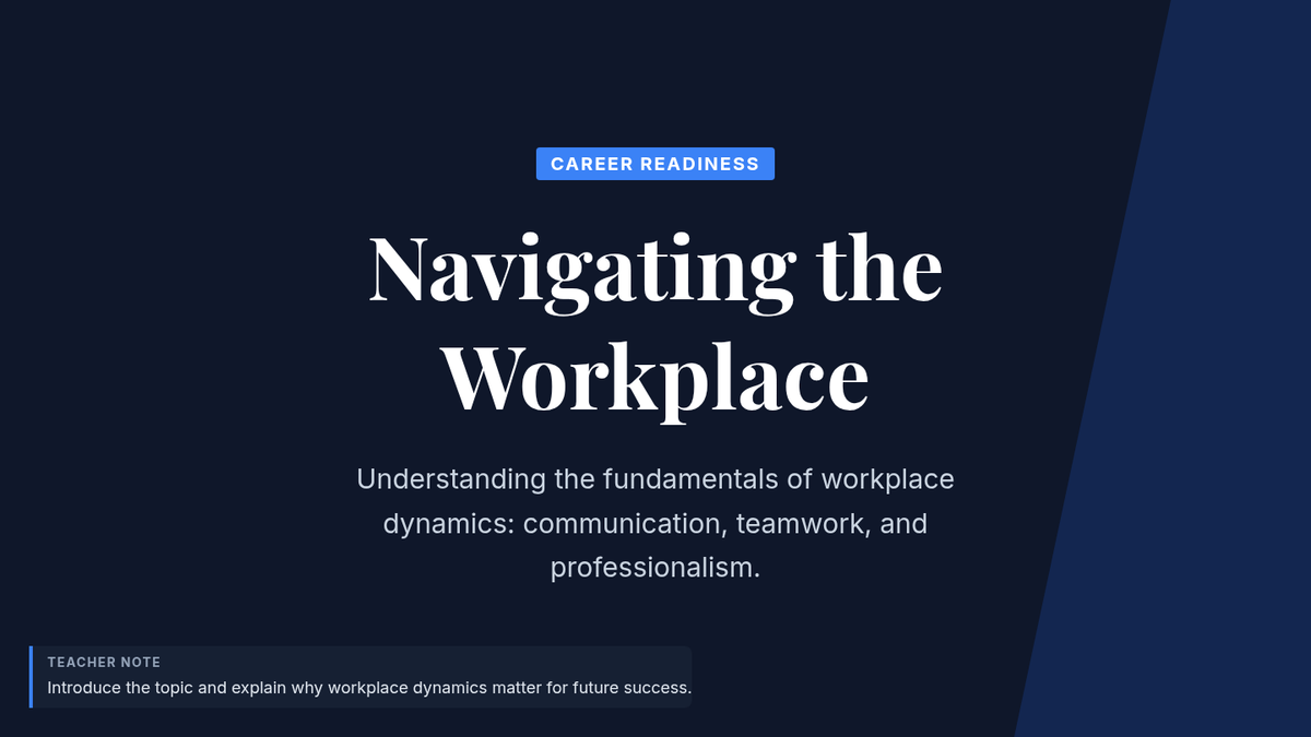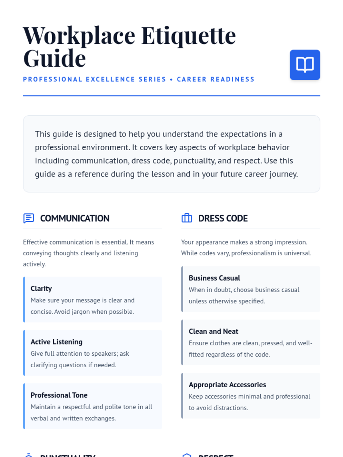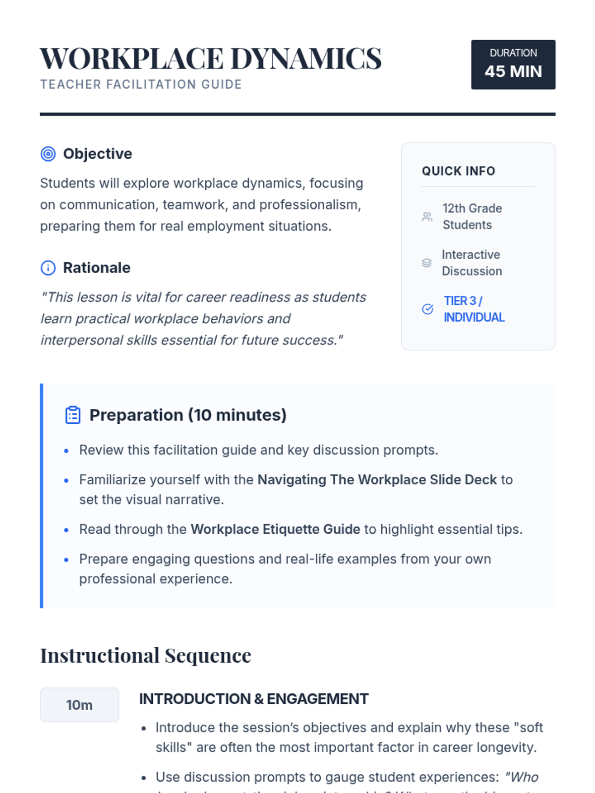 A deep dive into understanding workplace dynamics and expectations, preparing 12th-grade students for future employment through interactive discussions and role-playing.