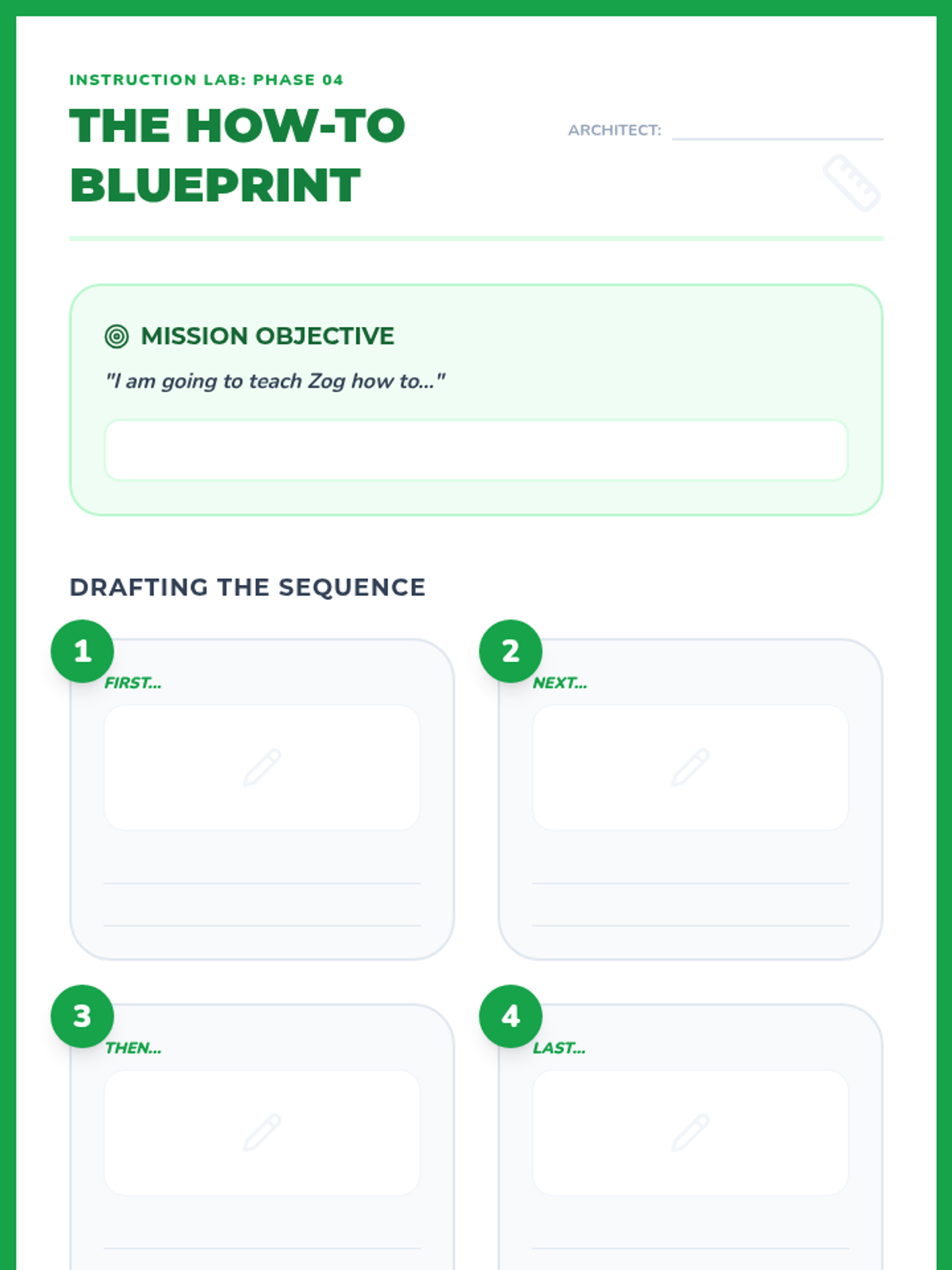 Students create their own visual and written 'How-To' guides for a task of their choice, designed for an 'alien' who knows nothing about Earth.