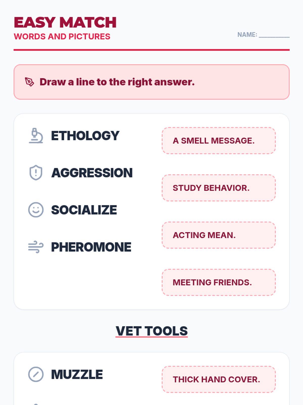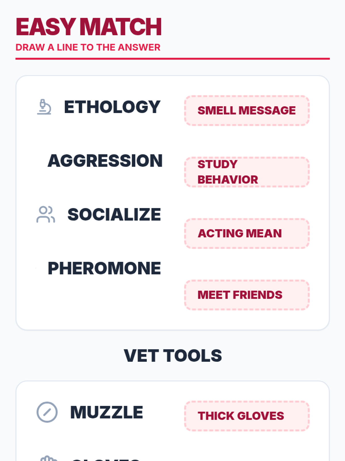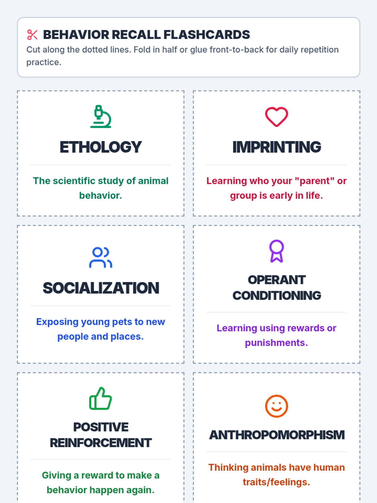 A specialized lesson focused on Chapter 4 concepts including animal socialization, operant conditioning, and restraint techniques. Materials are modified for high-readability and visual learning to support a student with Traumatic Brain Injury.