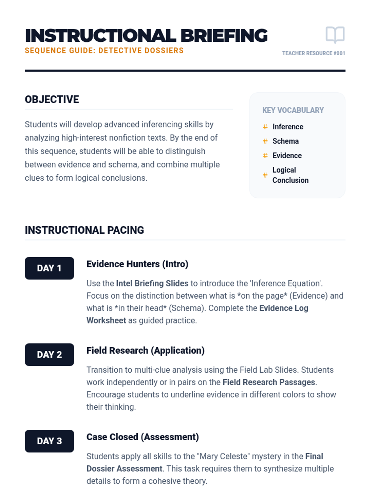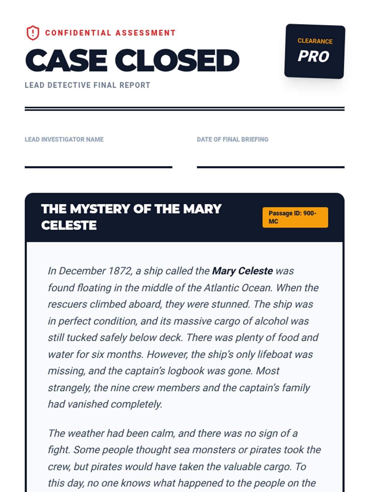 A final assessment where students act as lead detectives, analyzing a detailed 'case file' passage and justifying their inferences with cited evidence.