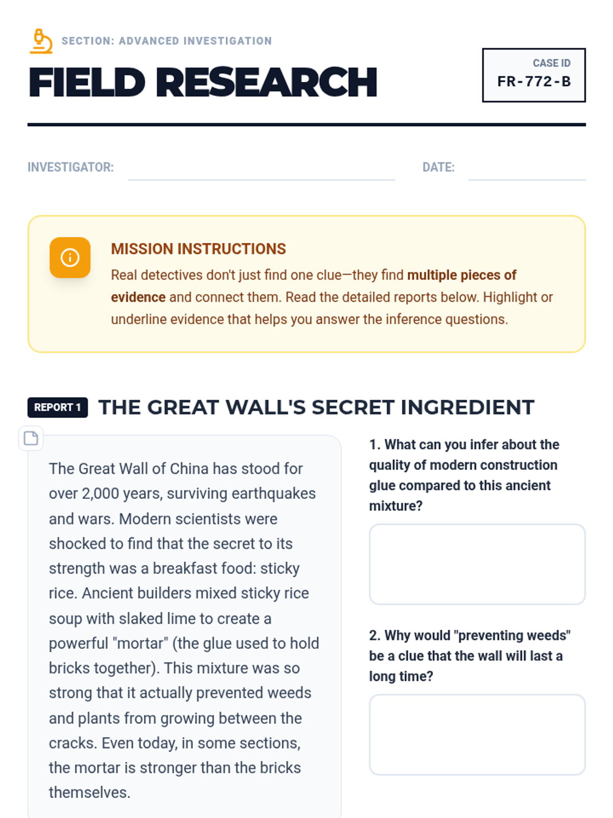 Students tackle longer, more complex nonfiction passages, learning to connect multiple pieces of evidence to form nuanced inferences about cause and effect.
