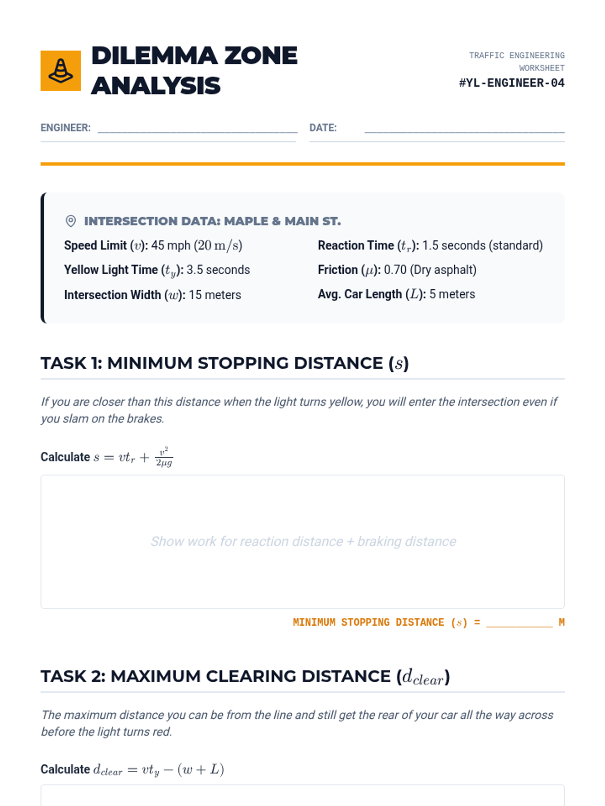 Analyzing the 'dilemma zone' at intersections to determine if traffic light timing is safe.