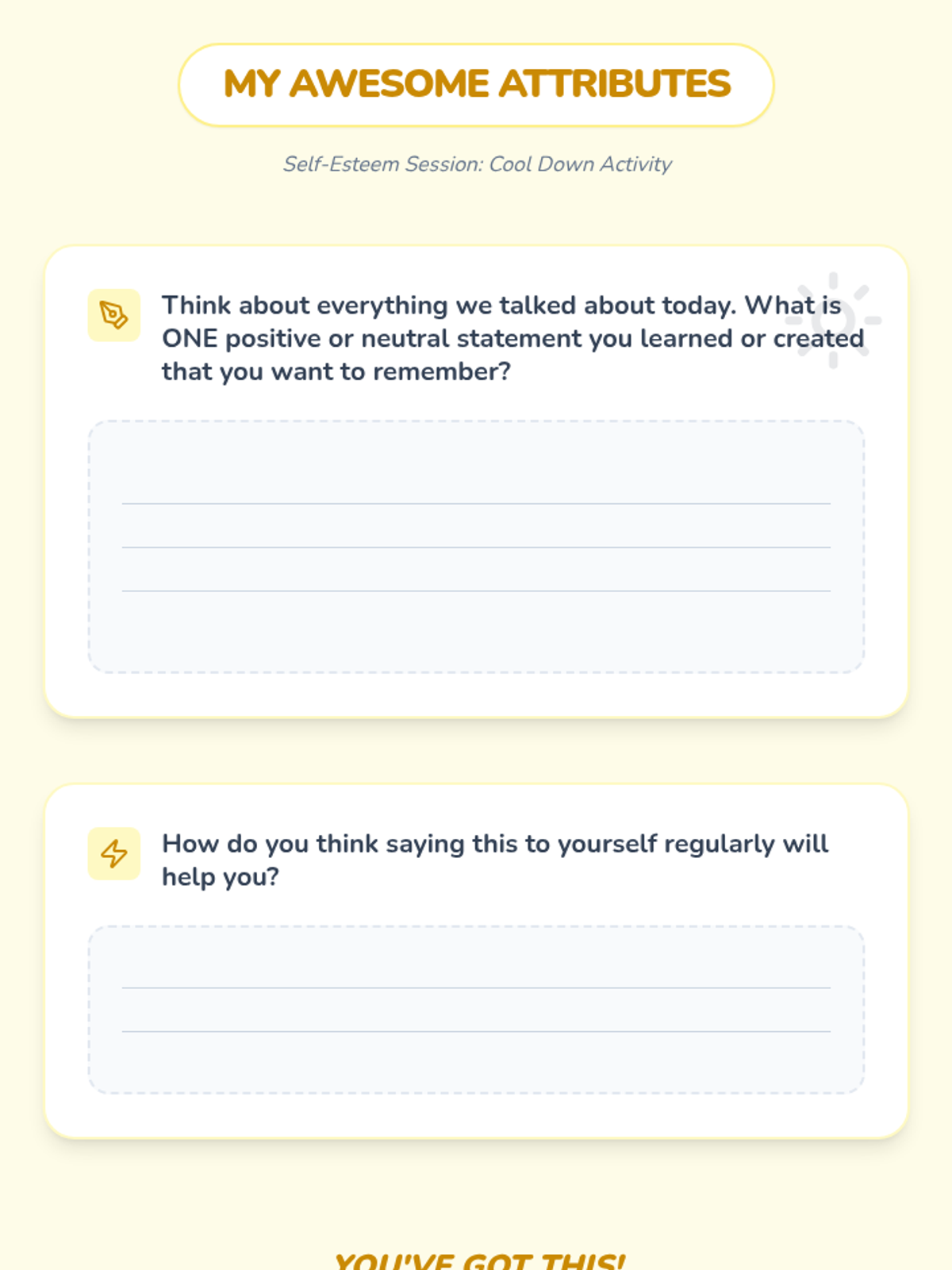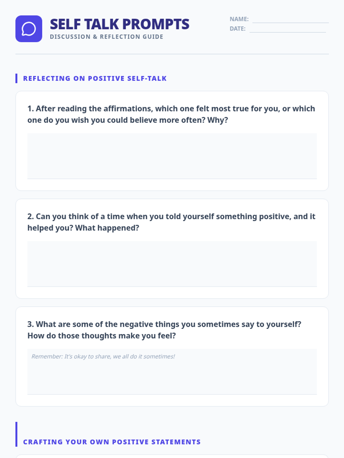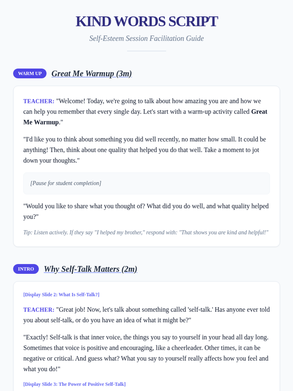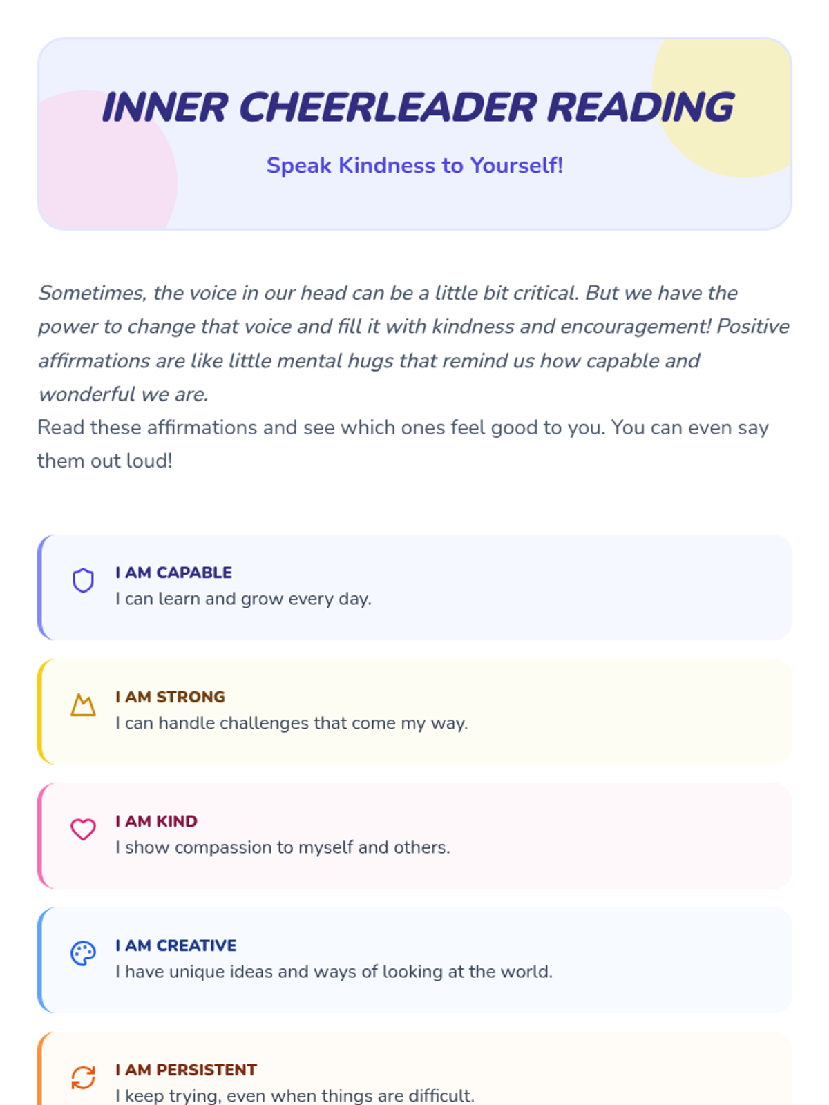 A 20-minute Tier 3 lesson designed to help students replace negative self-talk with positive or neutral affirmations to build self-esteem.