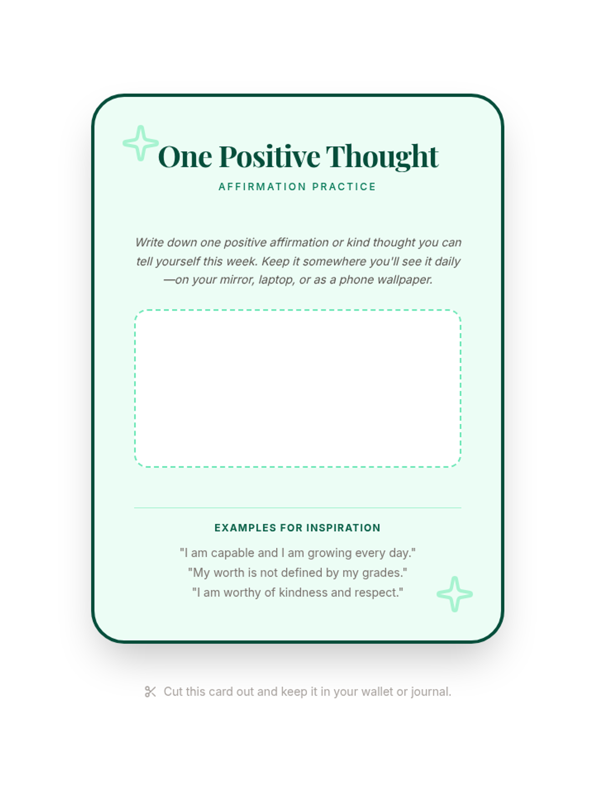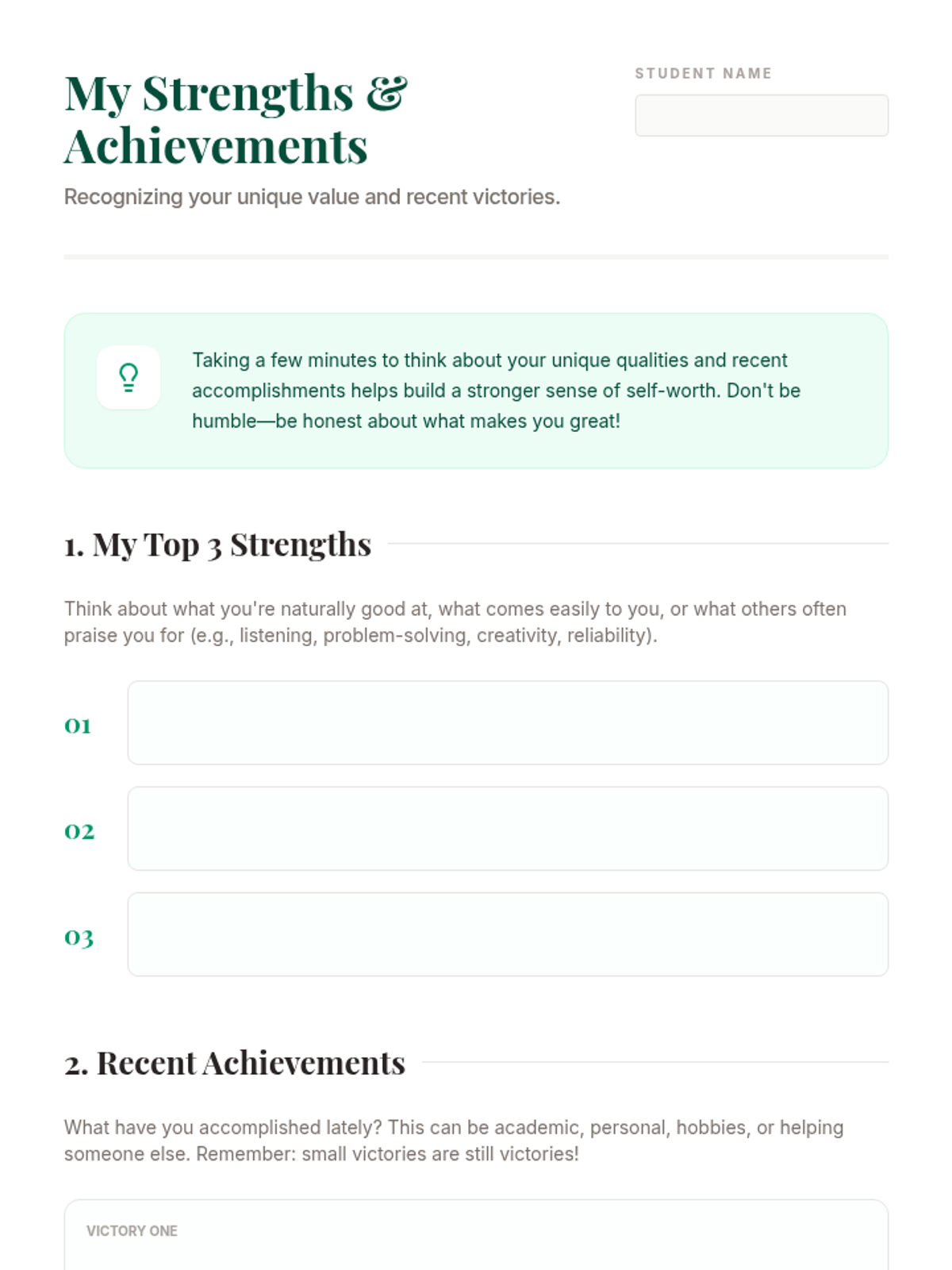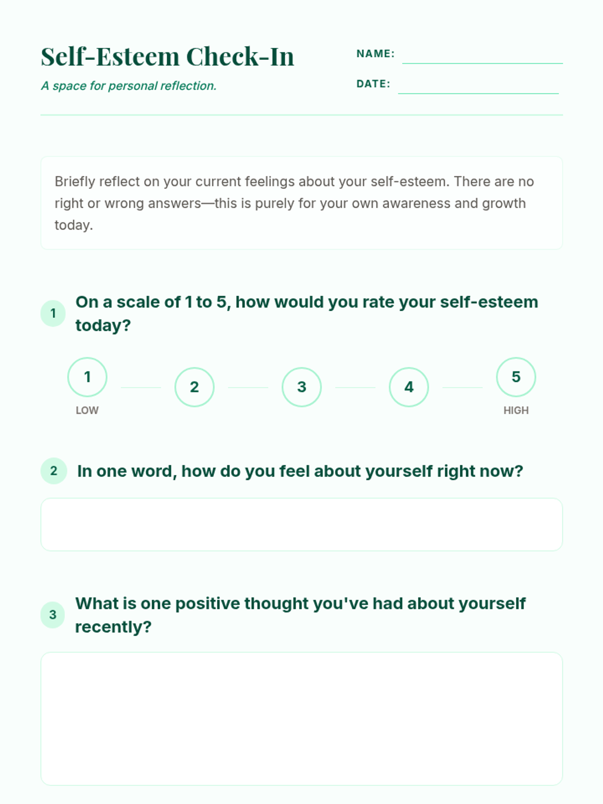 A 30-minute lesson for undergraduate students focused on defining self-esteem, identifying internal and external influences, and developing practical strategies to cultivate a positive self-image and inherent worth.