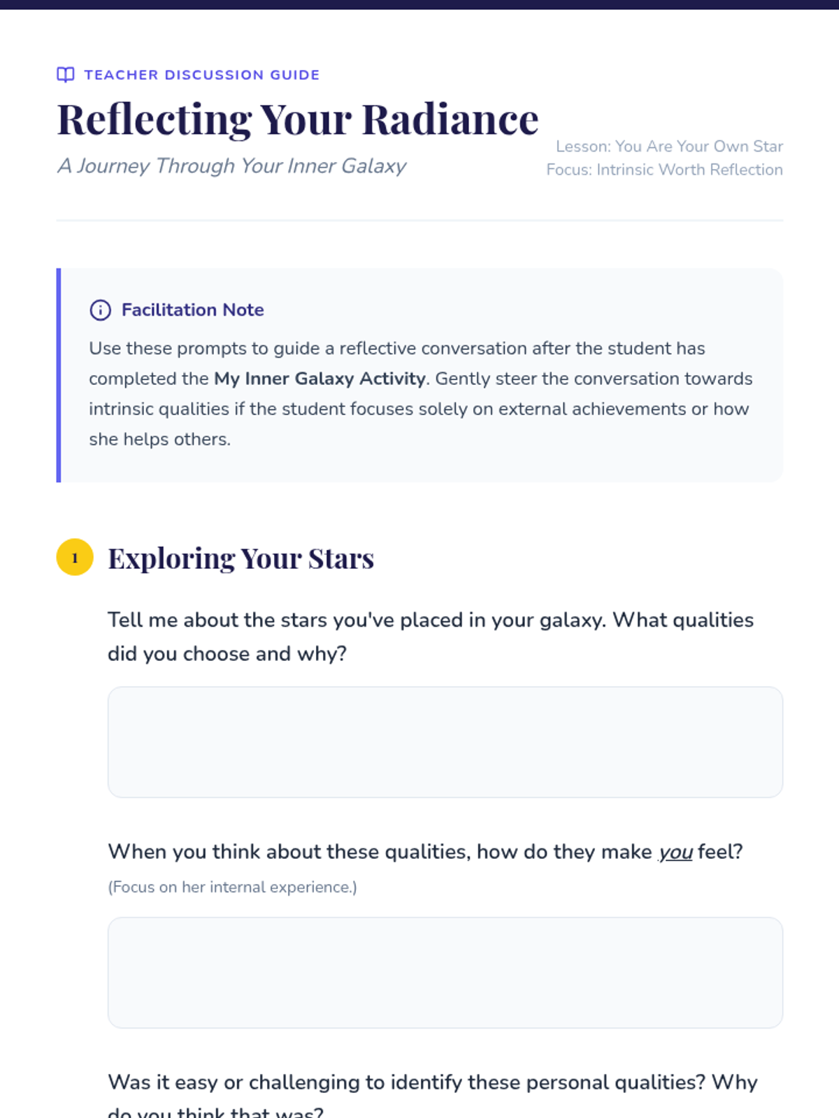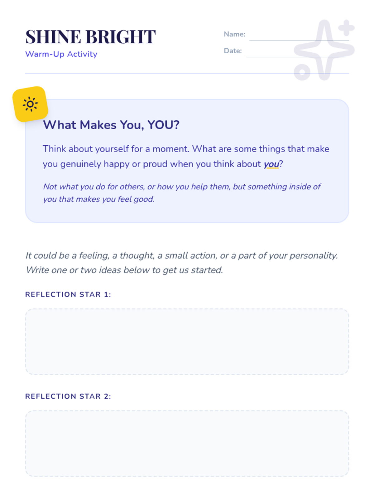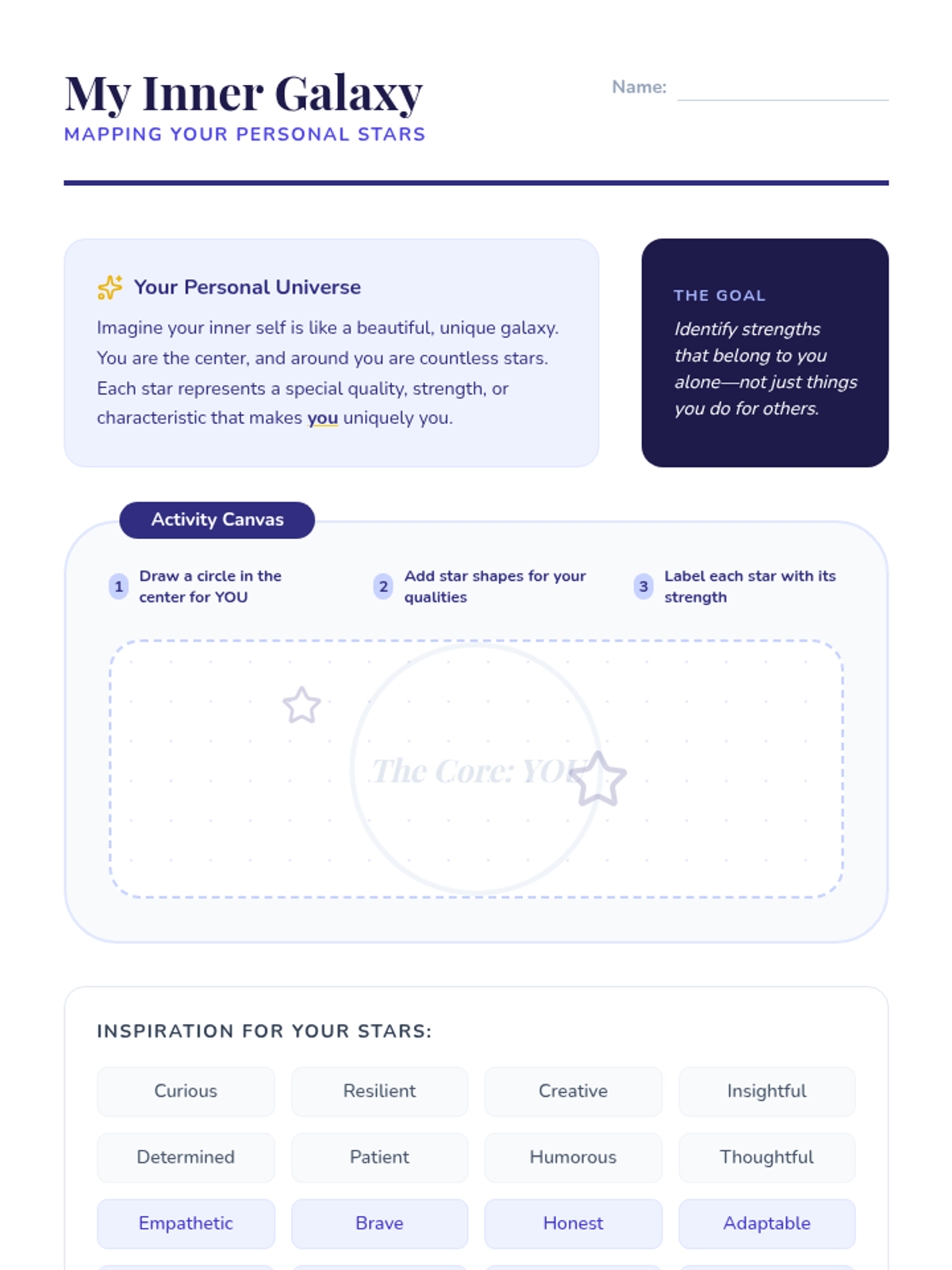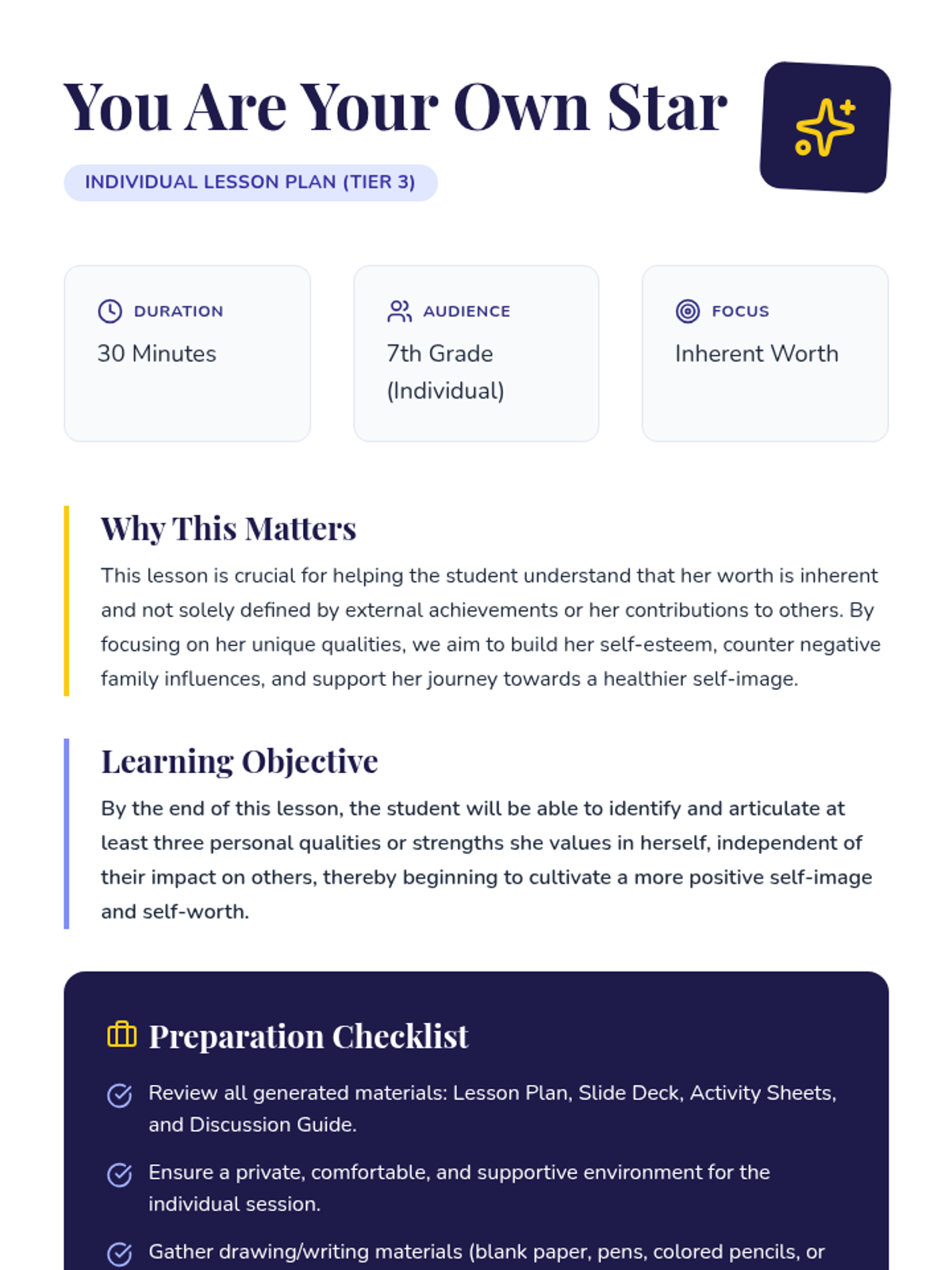 A Tier 3 individual counseling lesson for 7th-grade students to foster self-worth and recognize inherent personal strengths independent of external pressures.