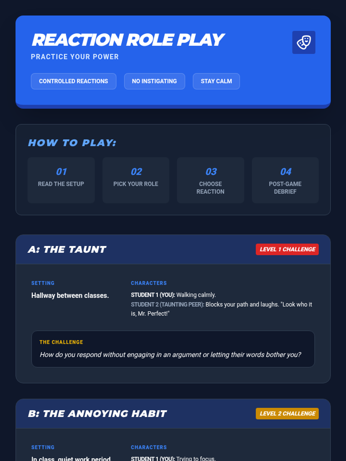 A deep dive into fairness and power dynamics. Campers learn the difference between 'Leader-Leader' and 'Leader-Follower' dynamics in healthy relationships.