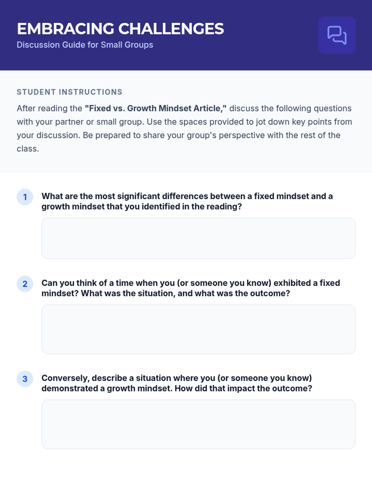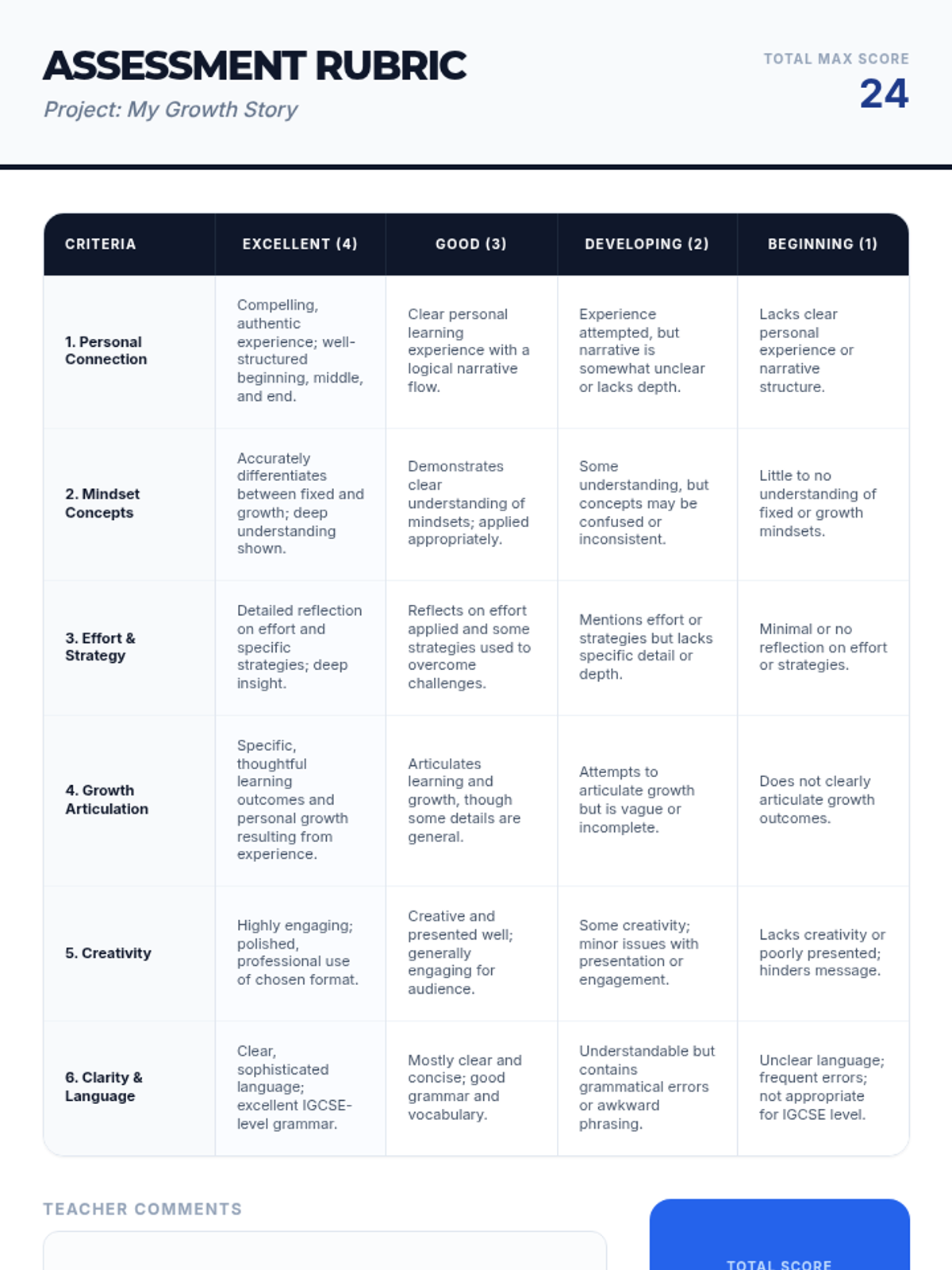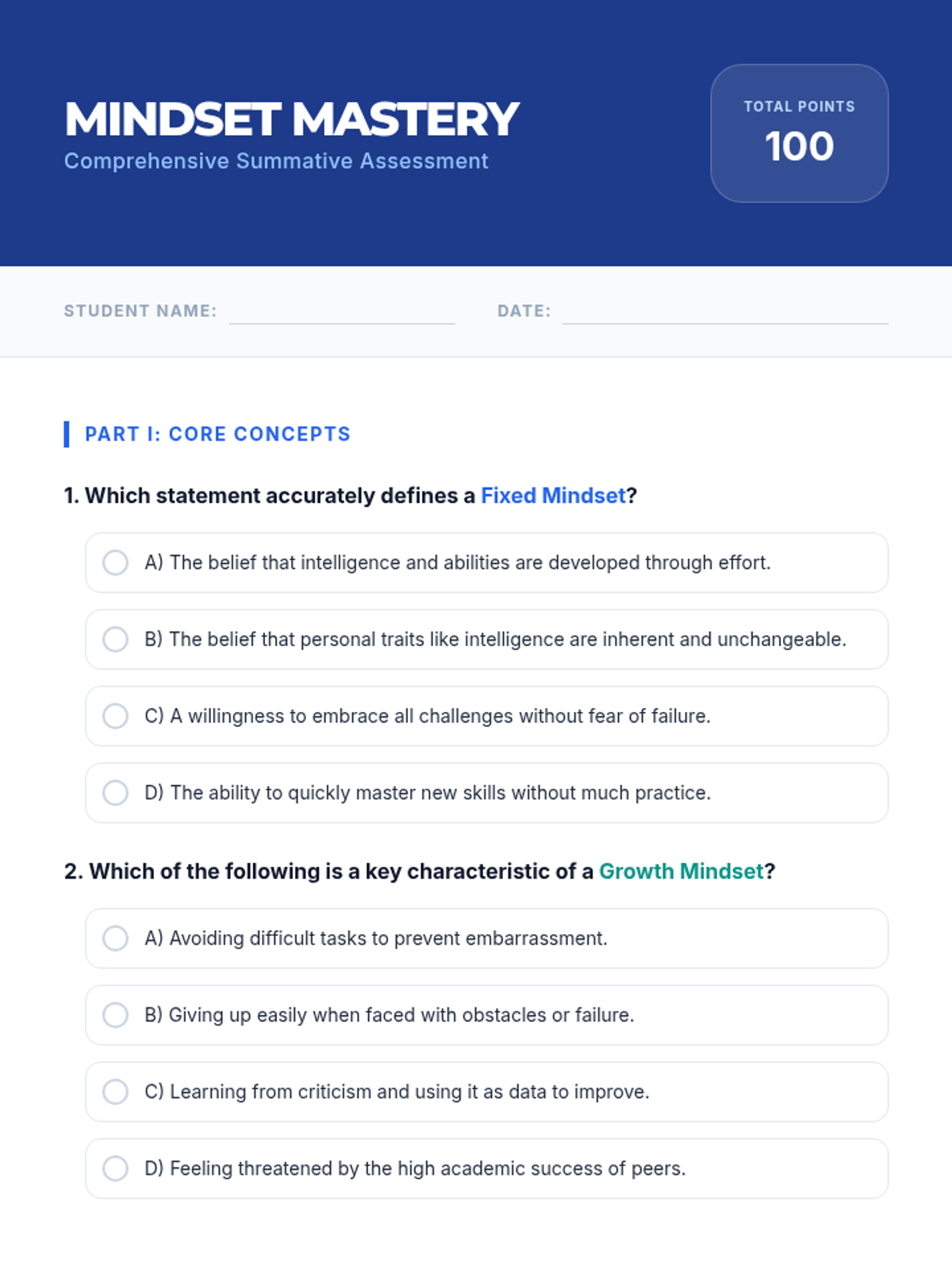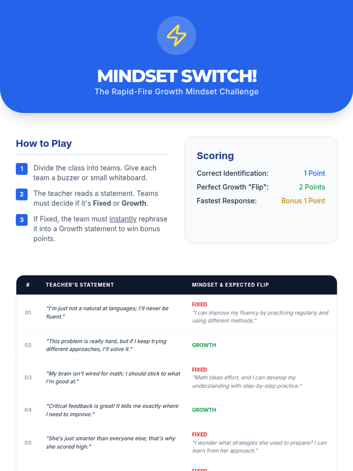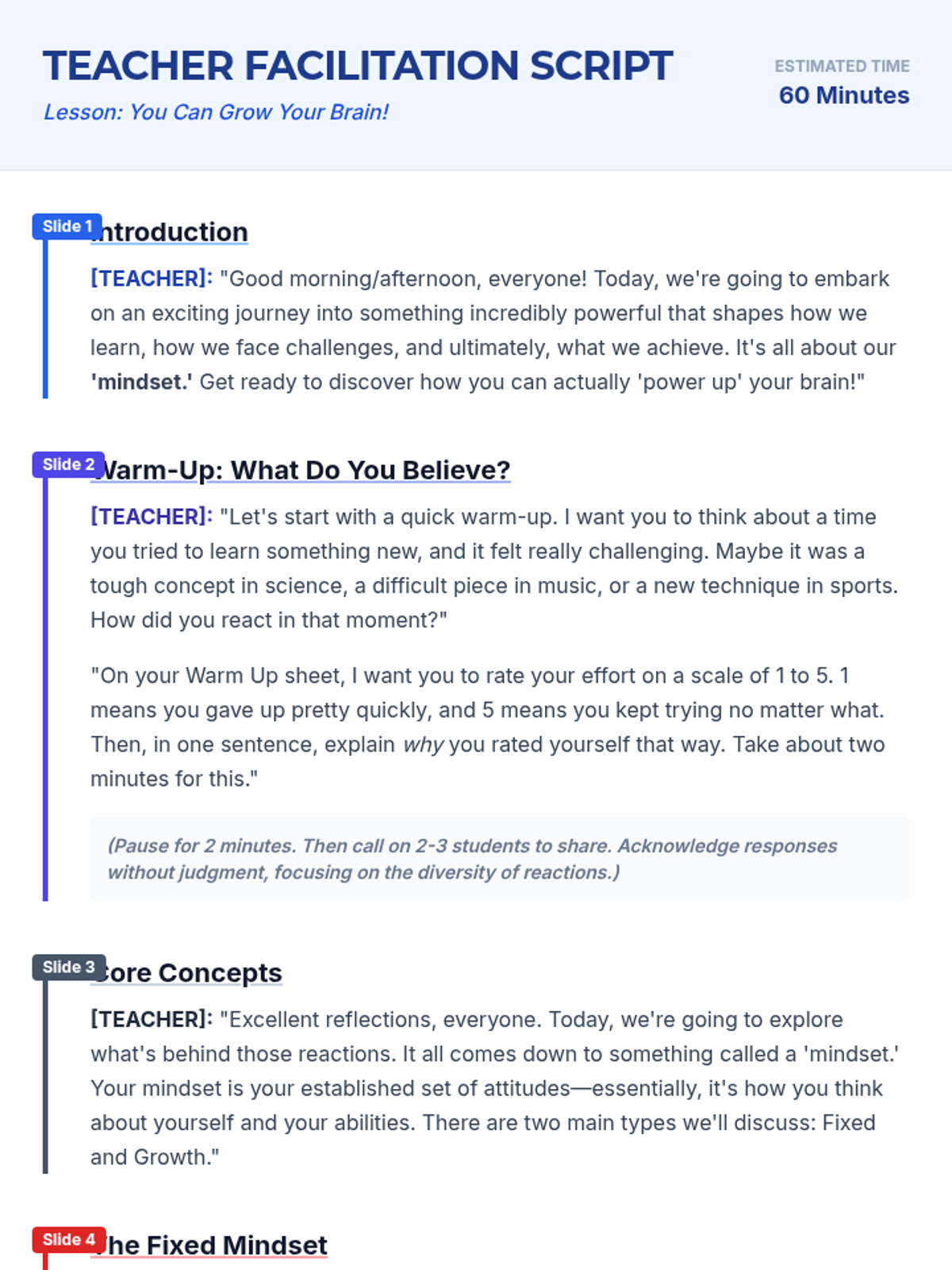 A 60-minute introductory lesson for IGCSE students on growth mindset, covering fixed vs. growth mindsets, the power of 'yet', and practical strategies for resilience.