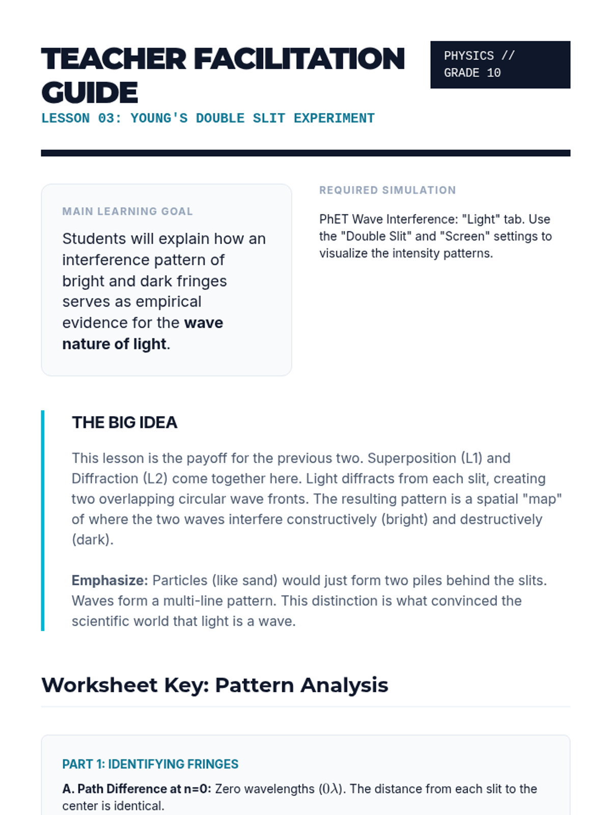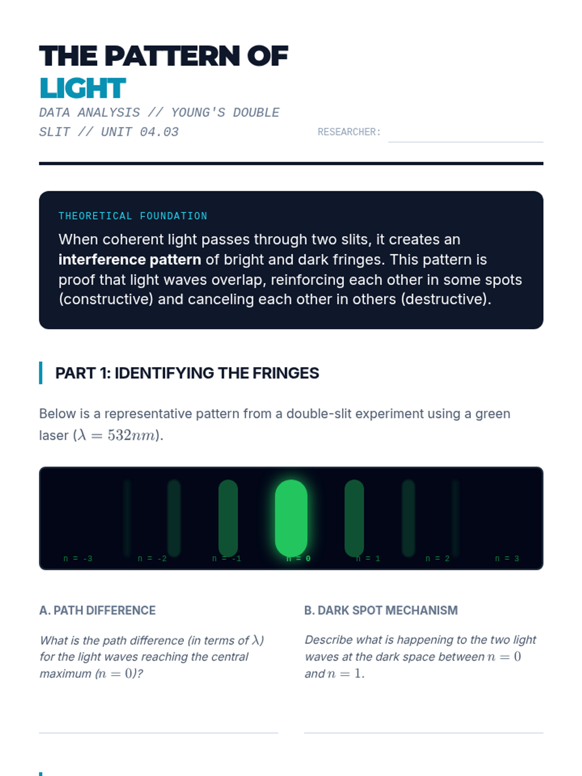 Students analyze the historic experiment that proved light acts as a wave by examining interference patterns created by light passing through two narrow slits.